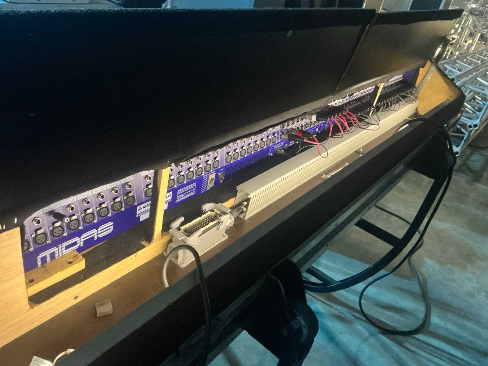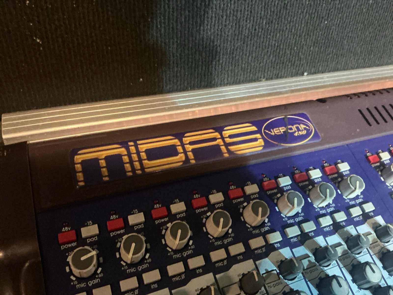 Mengtafel met effectenrek: CD-Speler MP3 Denon DN-D4500. 3x Lexicon effecten, 8x compressor DBX 266XS, equalizer DBX 1231, 2x equalizer Alto EQU231. Inclusief stagekabel op rol 24 in 8 uit (circa 30 meter op haspel. Nee Merk: Midas Type: Verona 480 Aantal kanalen: 48 Aantal kanalen inkomend: 48 Aantal kanalen uitgaand: 10 Aantal mic/line ingangen: 40 Voeding: true Met flightcase: true Totale afmeting L: 1080mm Totale afmeting Breedte: 2010mm