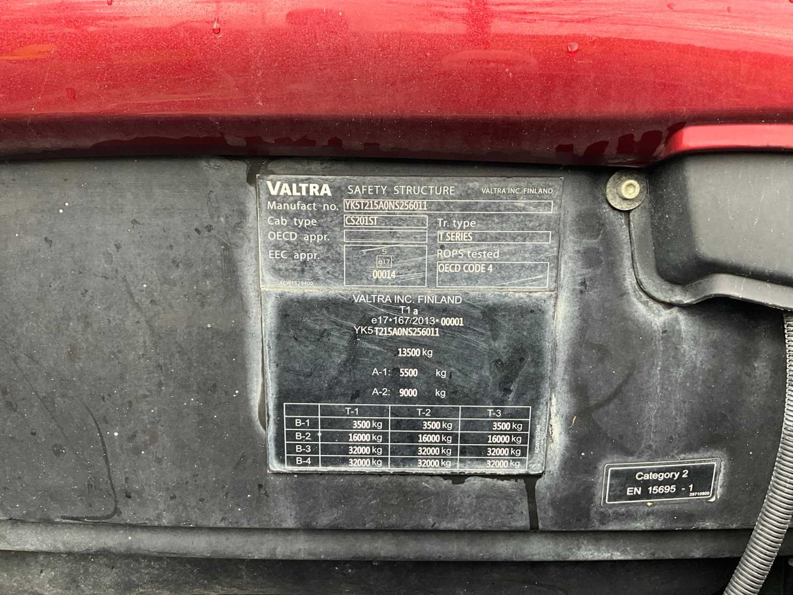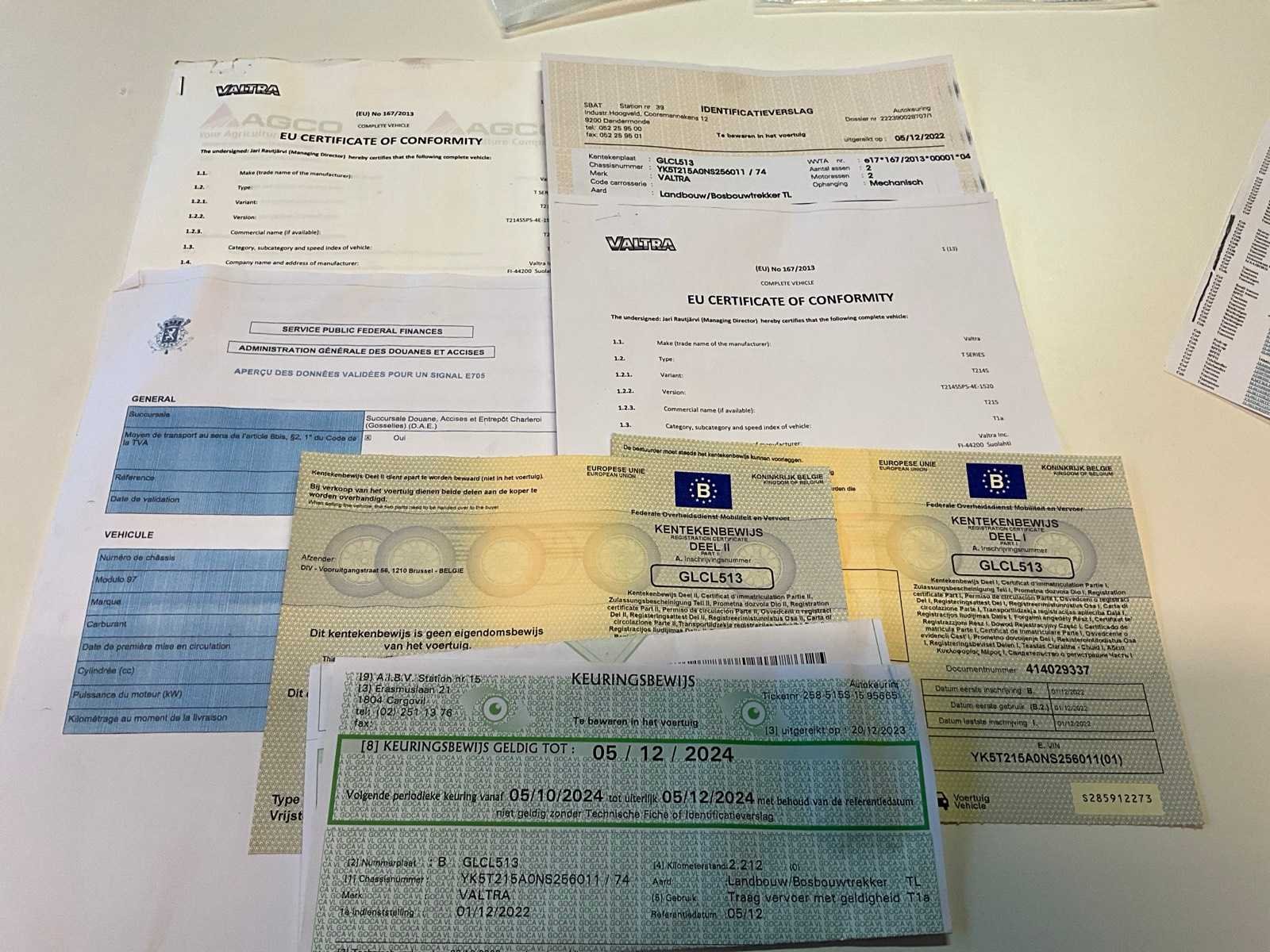 Voorzien van boltrekhaak, luchtdruk en hydraulische remmen, LS, topstang voor en achter, Belgische boorddocumenten compleet, sleutel aanwezig No Merk: Valtra Type: T214S Bouwjaar: 2022 Serienummer: YK5T215AONS256011 Motorvermogen (kW): 100kW Afgelezen urenstand: 3982 Versnellingsbaktype: Vario Aantal hydraulische ventielen voor: 1 Aantal hydraulische ventielen achter: 4 Bandenmaat voor: 540/65R30 Bandenmaat achter: 650/65R42 Fronthefinrichting: true Cabine: true Luchtgeveerde stoel: true Totale afmeting L: 5500mm Totale afmeting Breedte: 2500mm Totale afmeting Hoogte: 3250mm