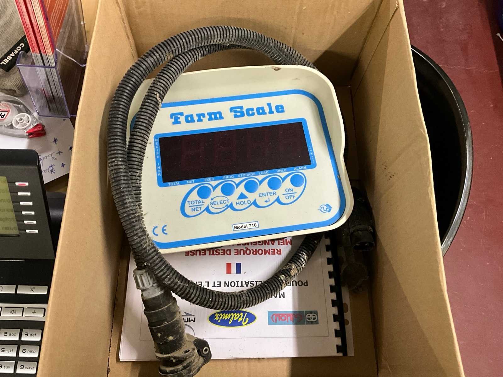 Voorzien van 3x mengvijzel, uitvoer linksvoor dmv hydraulische losband, enkele as, cardanas compleet, reductiekast aandrijving, bedieningskast Farm Scale model 710 No Merk: Matrix Type: Néon 15MC Bouwjaar: 2015 Serienummer: 150312206 Totale afmeting L: 5500mm Totale afmeting Breedte: 2000mm Totale afmeting Hoogte: 2950mm