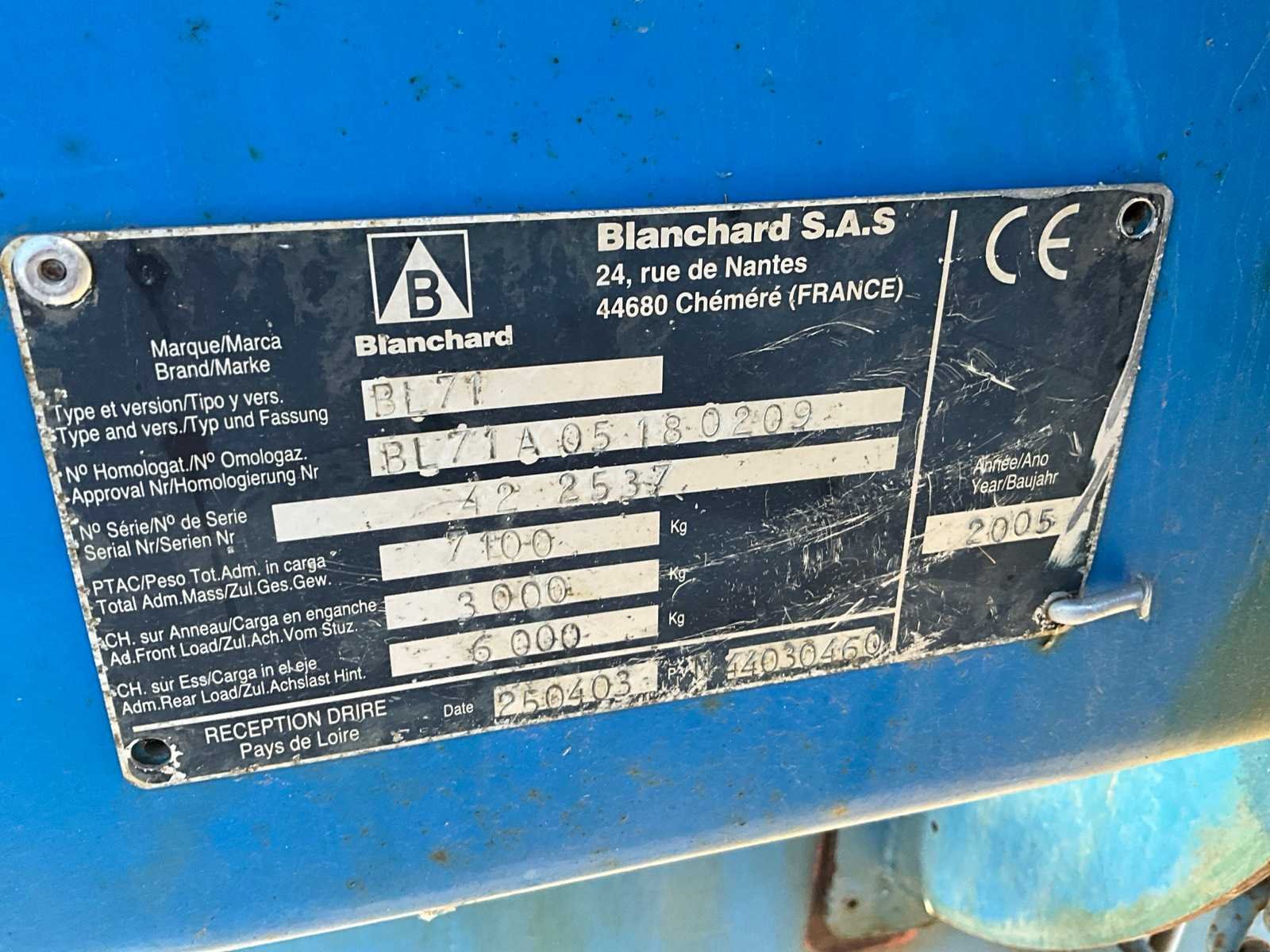 Voorzien van aluminium spuitboom, gedwongen stuuras, cardanas compleet, bedieningskast, zonder BOORDDOCUMENTEN No Merk: Blanchard Type: BL71 / 7700 L 36 m Bouwjaar: 2005 Serienummer: 422537 Capaciteit.: 20l/min Spuitboombreedte: 36m Tankinhoud: 7700l Bandenmaat: 480/80R46 Voorzien van verlichting: true Boordcomputer: true Schoonwatertank: true Sectie afsluiting: true Totale afmeting L: 9000mm Totale afmeting Breedte: 2550mm Totale afmeting Hoogte: 3950mm
