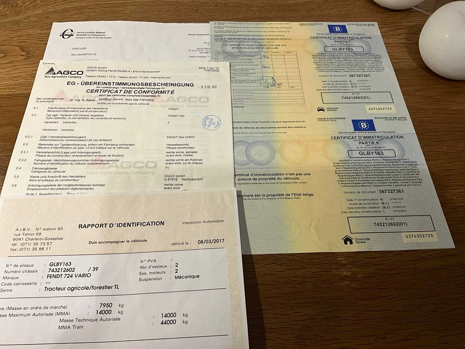 Voorzien van GPS RTK Trimbel, LS, piton fix trekhaak, topstang voor en achter, trekhaak in slede, luchtdruk en hydraulische rem, Belgische boorddocumenten compleet, sleutel ok No Merk: Fendt Type: 724 vario Bouwjaar: 2016 Serienummer: 743212602 Motorvermogen (kW): 174kW Afgelezen urenstand: 8120 Versnellingsbaktype: Vario Aantal hydraulische ventielen voor: 1 Aantal hydraulische ventielen achter: 3 Bandenmaat voor: 600/65R28 Bandenmaat achter: 650/65R42 Fronthefinrichting: true Cabine: true Luchtgeveerde stoel: true Eigen gewicht: 7950kg Totale afmeting L: 5000mm Totale afmeting Breedte: 2600mm Totale afmeting Hoogte: 3200mm Datum eerste toelating: 01-04-2016 Nationaliteit documenten: Belgische