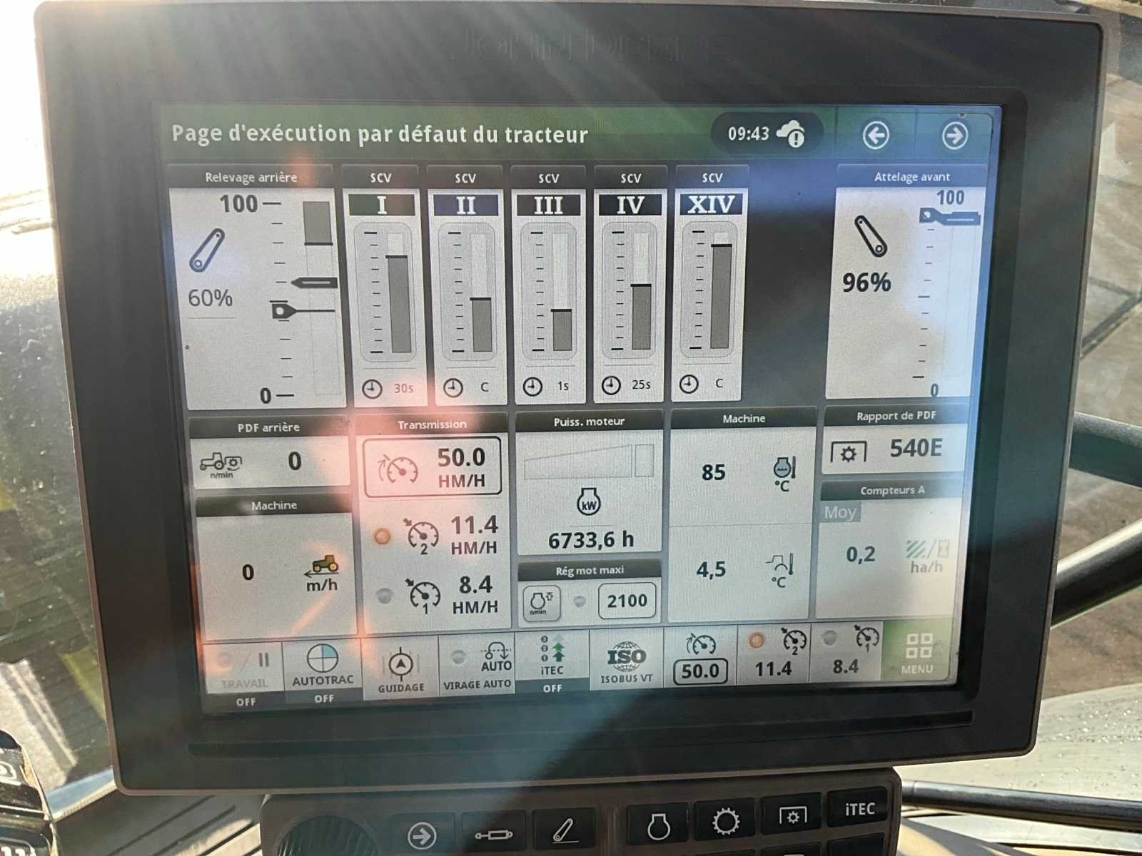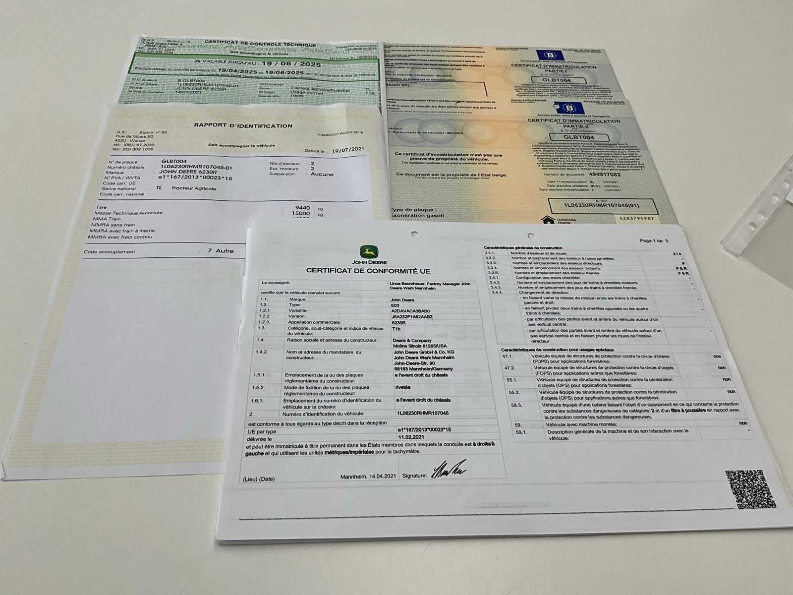 Voorzien van hydraulisch cabine en voorasvering, lead sensing, AD bleu, variabele spoorbreedte op achteras, hydraulische topstang, topstang vooraan, piton fix trekhaak, isobus, automatische vanghaken, luchtdruk en hydraulische remmen, Belgische boorddocumenten compleet, sleutel aanwezig No Merk: John Deere Type: 6R230 Bouwjaar: 2021 Serienummer: 1L06230RHMR107045 Motorvermogen (kW): 169kW Afgelezen urenstand: 6733 Versnellingsbaktype: Vario command pro Aantal hydraulische ventielen voor: 1 Aantal hydraulische ventielen achter: 3 Bandenmaat voor: 600/70R30 Bandenmaat achter: 650/85R38 Fronthefinrichting: true Cabine: true Luchtgeveerde stoel: true Eigen gewicht: 9440kg Totale afmeting L: 5000mm Totale afmeting Breedte: 2750mm Totale afmeting Hoogte: 3450mm Datum eerste toelating: 14-07-2021 Nationaliteit documenten: Belgische