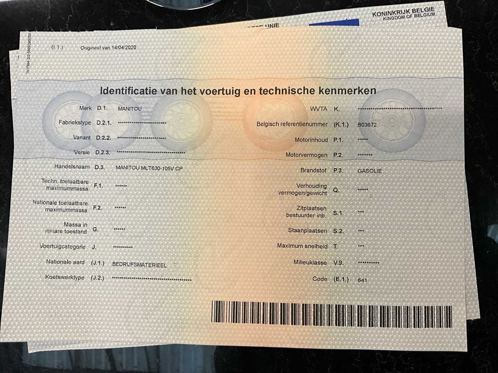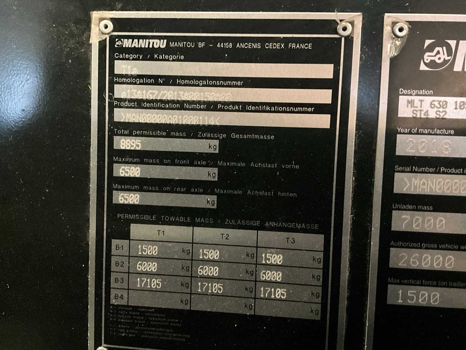 Datum eerste inschrijving: 14/4/2020 No Merk: Manitou Type: MLT 630 Bouwjaar: 2018 Serienummer: MAN00000A01000114 Cabine: true Afgelezen urenstand: 7105