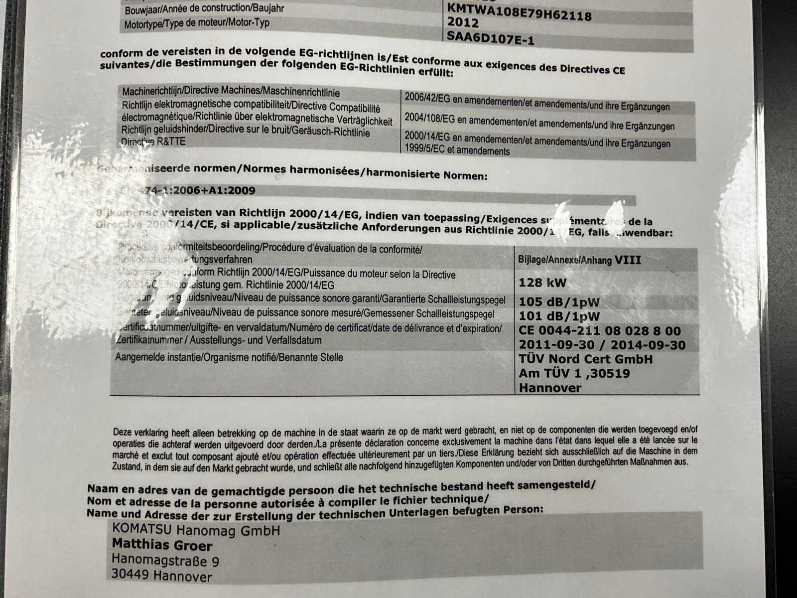 Nee Merk: Komatsu Type: WA320-6 Bouwjaar: 2012 Serienummer: KMTWA108E79H62118 Motorvermogen (kW): 127kW Bandenmaat: 29,5R25 Cabine: true Afgelezen urenstand: 8284.5