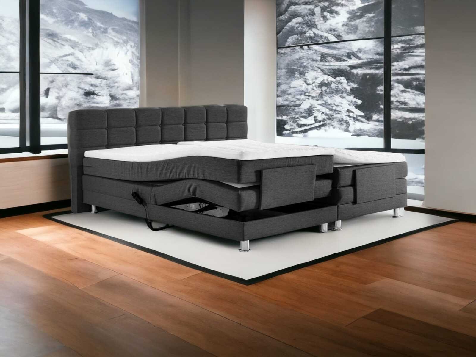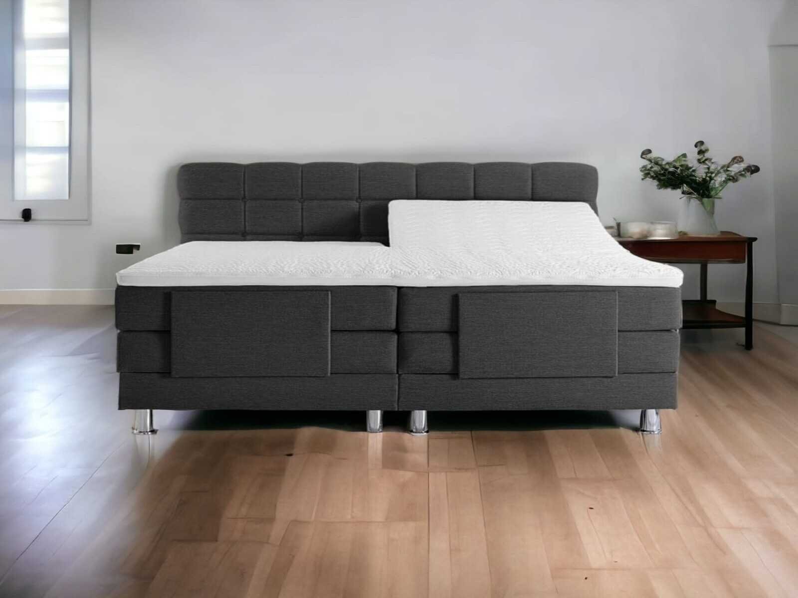 Combinatie biedt ondersteuning op de juiste plekken door de pocketveer matras met 7 comfortzones. Daarop komt een topper met split in hoofdgedeelte te liggen. De motor is opgehangen in een metalen frame en zit in de gestoffeerde plint. Het verschuiven van de matrassen wordt tot een minimum beperkt door de ant-slip lagen op de matrassen en de geveerde bakken in combinatie met de matrasstopper. Om de levensduur van uw matrassen en topper te verlengen en contourvorming te voorkomen word regelmatig draaien en keren aanbevolen! De omvang van de pakketten zijn: 2x 90/200/33 cm (plint + box) 2x 90/200/18 cm (matrassen) 1x 90/200/10 cm (splittopper dubbel gevouwen) 1x 190/115/10 cm (hoofdbord) Dit betreft een nieuw product! No Merk: M-Ray Model: Dubai Afmeting: 180/200 Elektrisch verstelbaar: true Met hoofdbord: true Poten: 8stuks per set Matras inbegrepen: true Type matras: Pocketveer koudschuim Matras materiaal: Meegestoffeerd in kleur pocketveer koudschuim Aantal veren: 300 Anti-allergeen: true Ligcomfort: Medium Topper: true Materiaal topper : Hoogwaardig comfortschuim Dikte topper: 6cm Kleur: Antraciet Afmeting hoofdbord tekst: 180/115 Instaphoogte: 70cm
