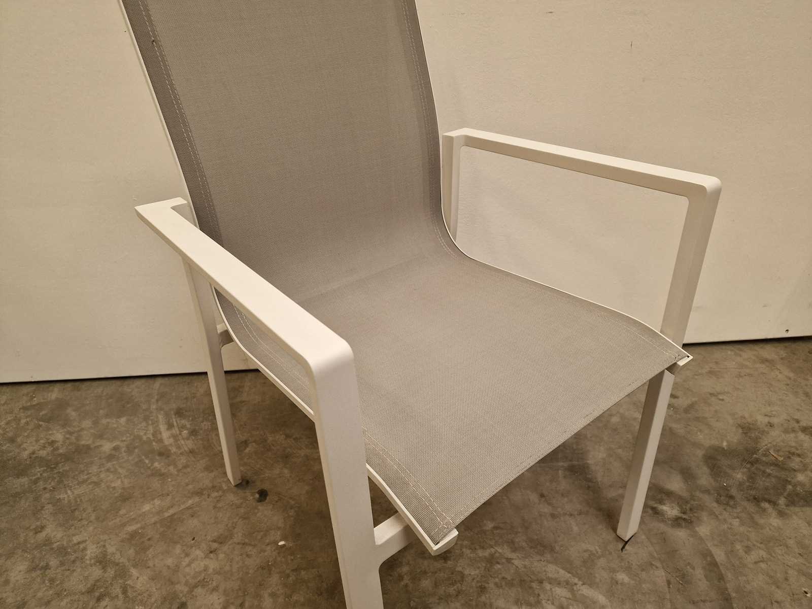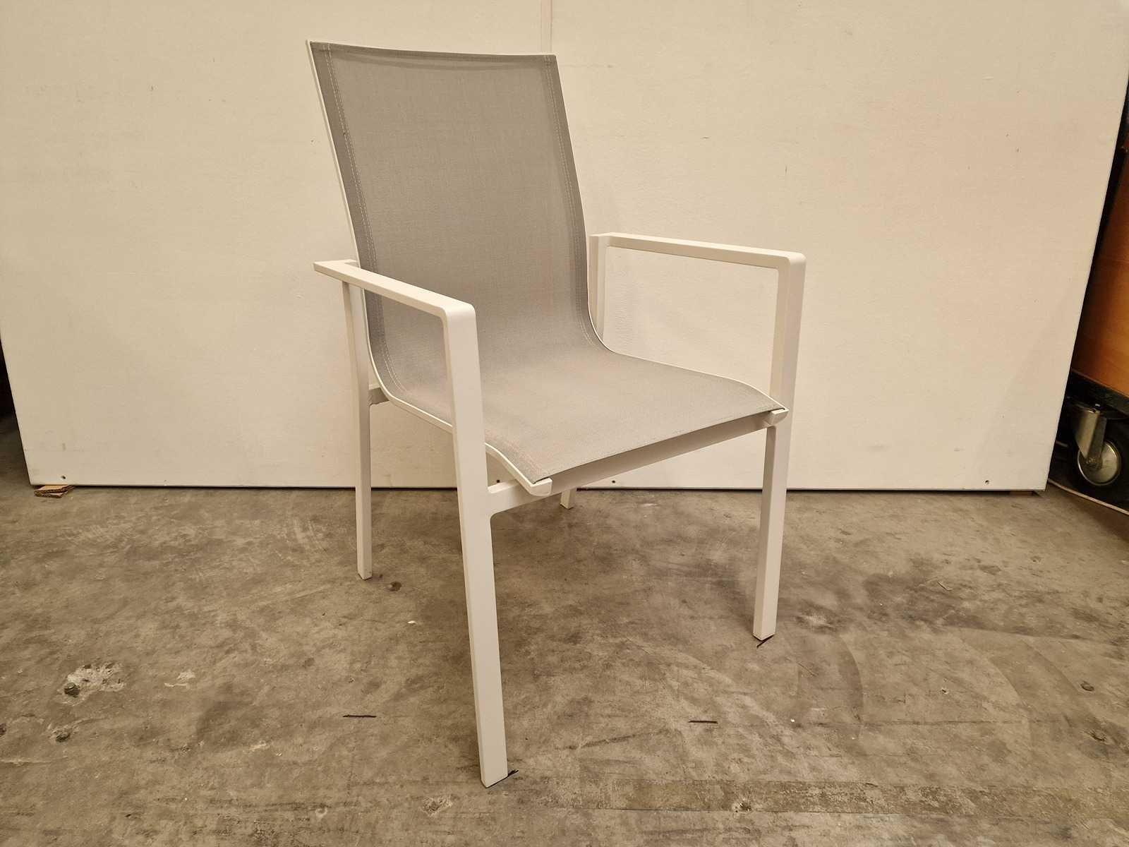 2 x Garden Prestige - Alu Stapelstoel Napoli met Armleuning Wit - Textilene Lichtgrijs - Stapelbaar No Merk: Garden Prestige Model: Napoli Kleur: Wit