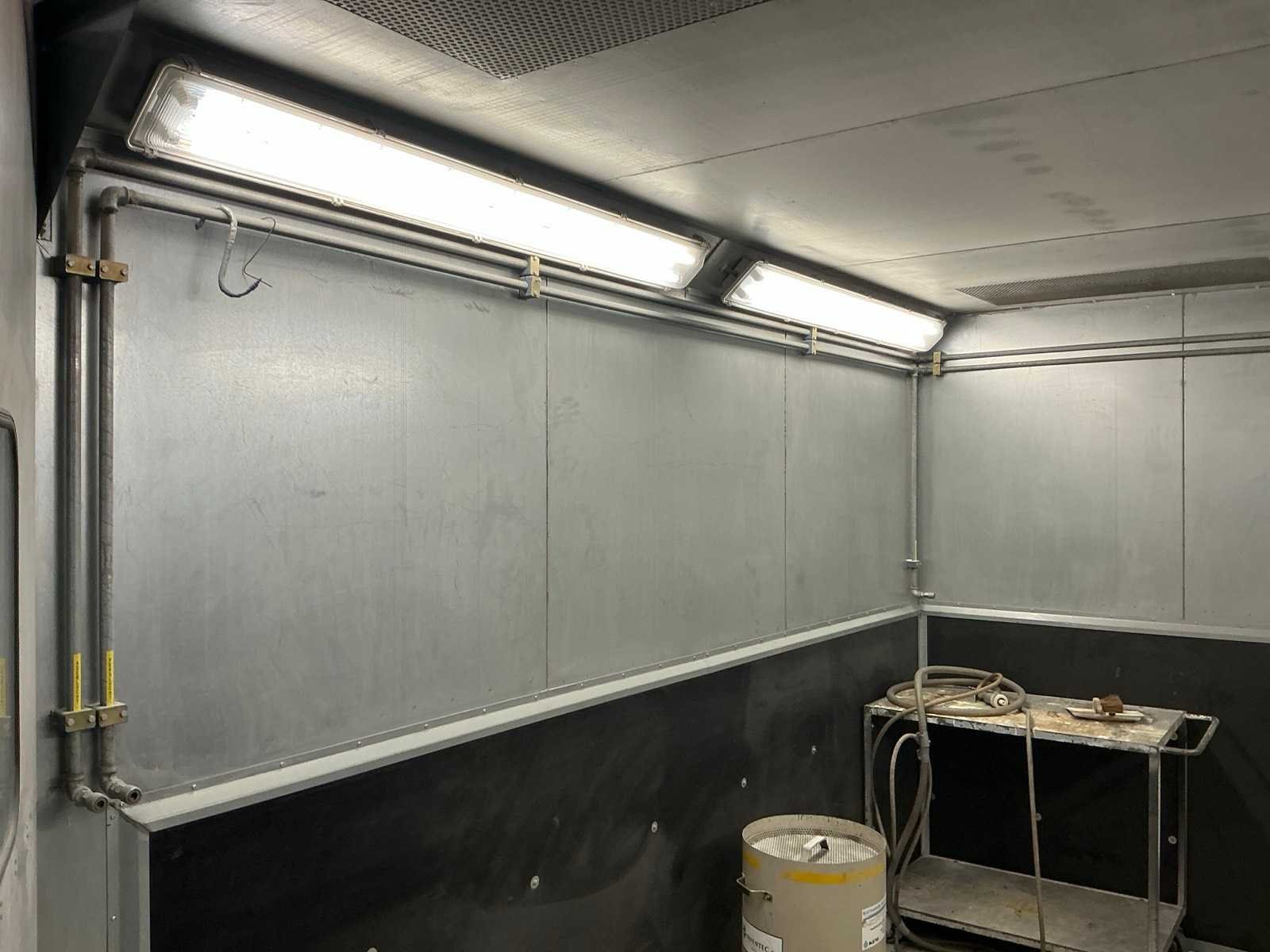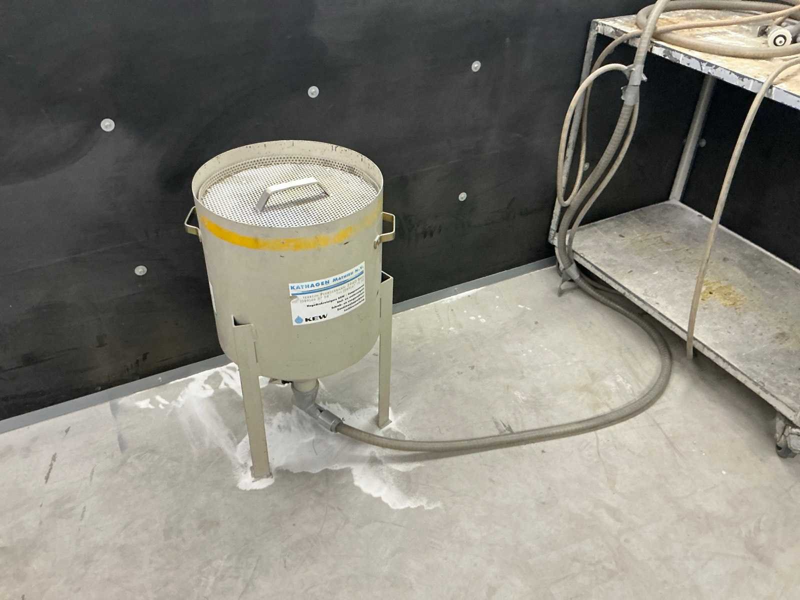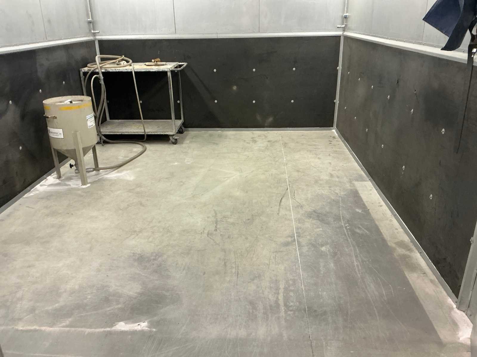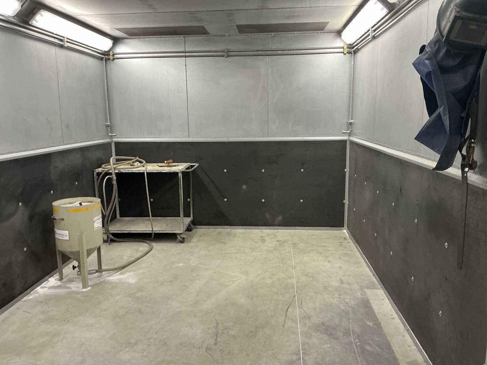 <Br> - Kew straalvat, straalpistool, zandstraalhelm met beschermschort. - Zonder vloer, zonder afzuigmotor. - te demonteren door de koper. Nee Afmeting l: 3820mm Afmeting b: 3290mm Afmeting h: 2530mm