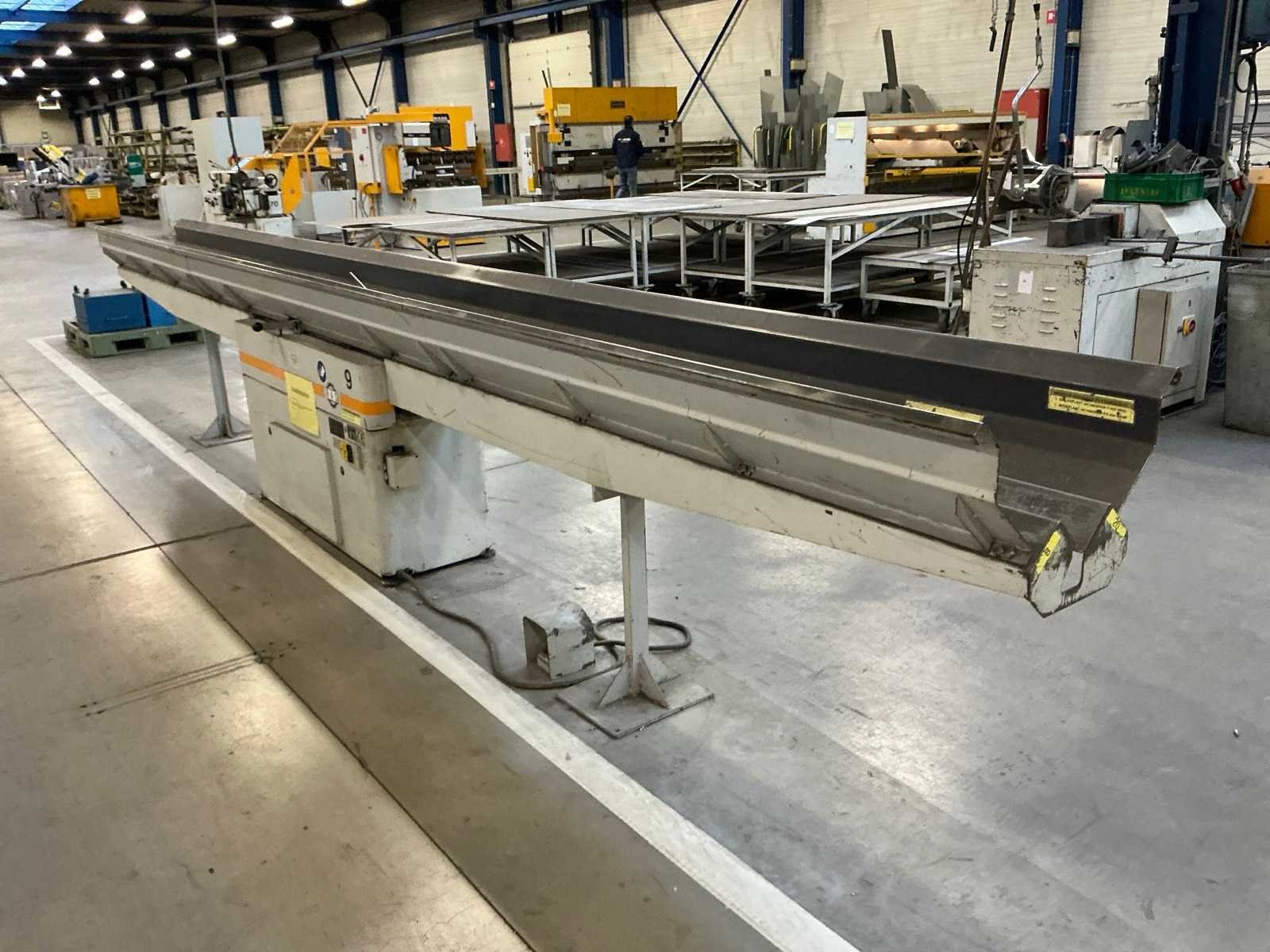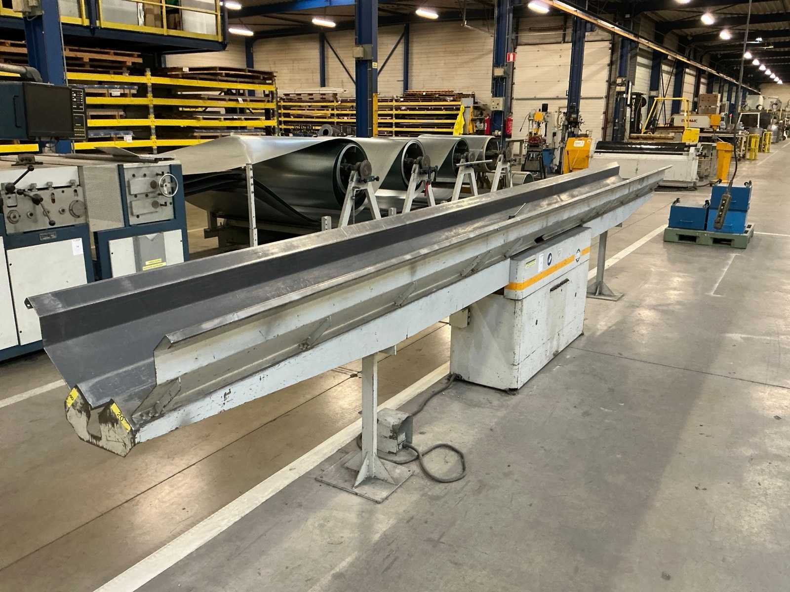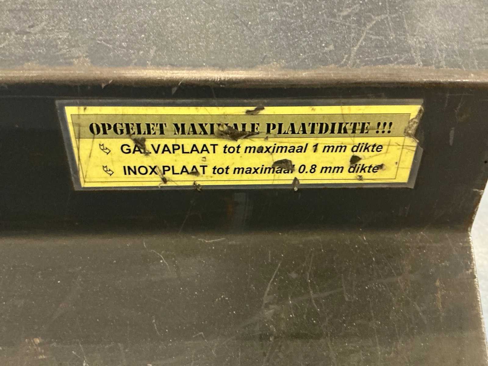 Plaatdikte maximaal 1’m Nee Merk: RAS Type: 22.81 Serienummer: 374/4 Motorvermogen (kW): 3kW Aansluiting: 400V Machinegewicht: 500kg Afmeting l: 6300mm Afmeting b: 600mm Afmeting h: 1130mm