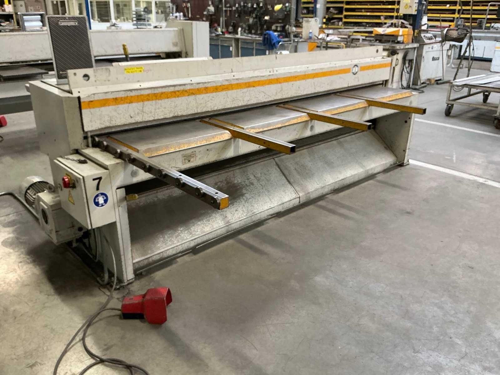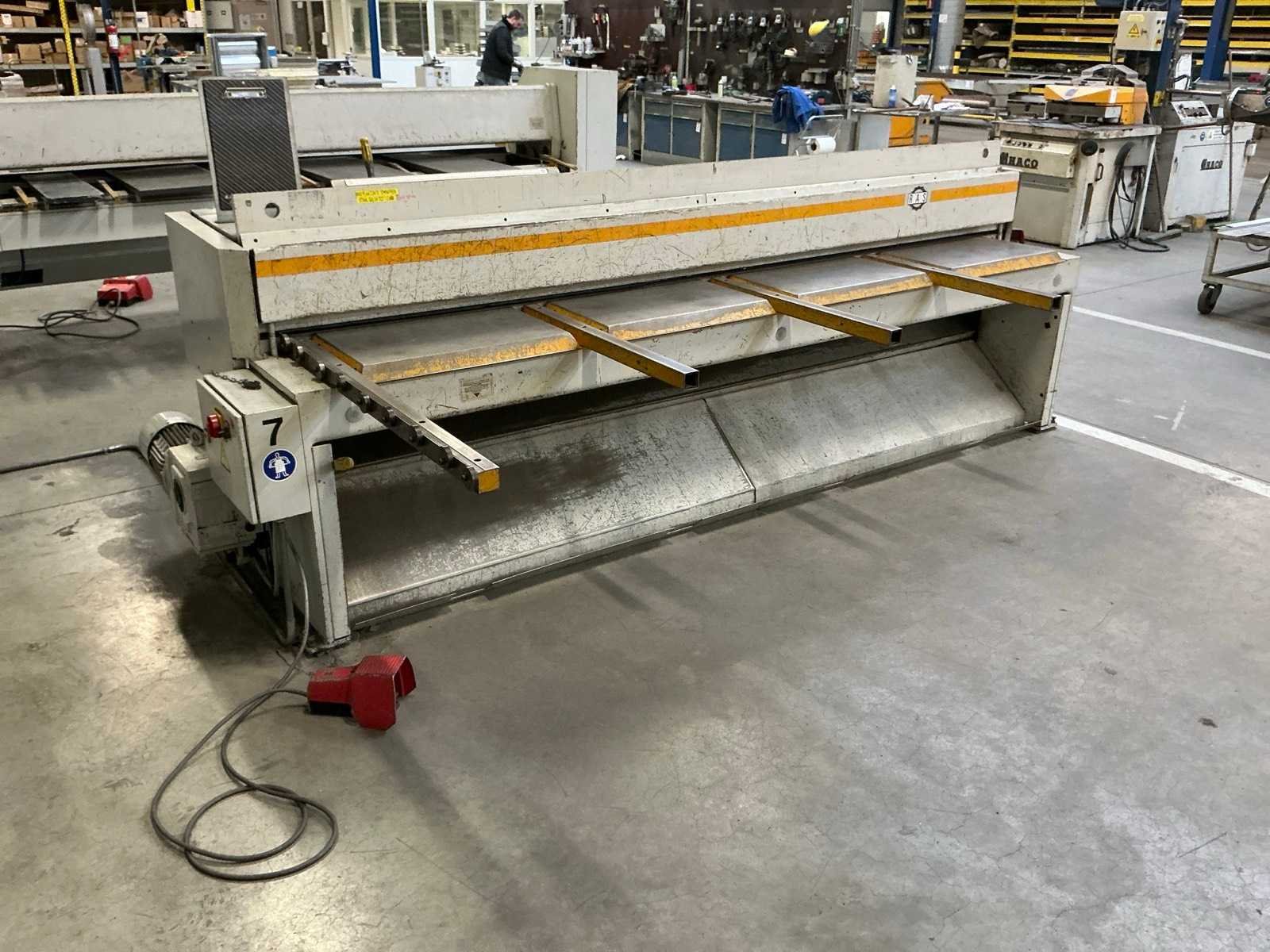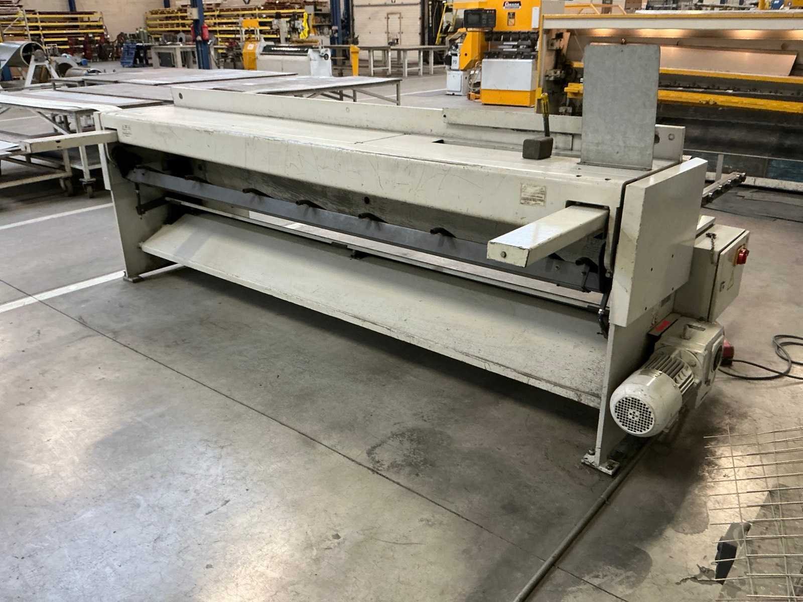 Maximum werkbreedte 3100mm Nee Merk: RAS Type: 52.31 Serienummer: 15/1 Max. plaatdikte: 2mm Motorvermogen (kW): 3kW Aansluiting: 400V Machinegewicht: 1950kg Afmeting l: 2300mm Afmeting b: 3600mm Afmeting h: 1200mm