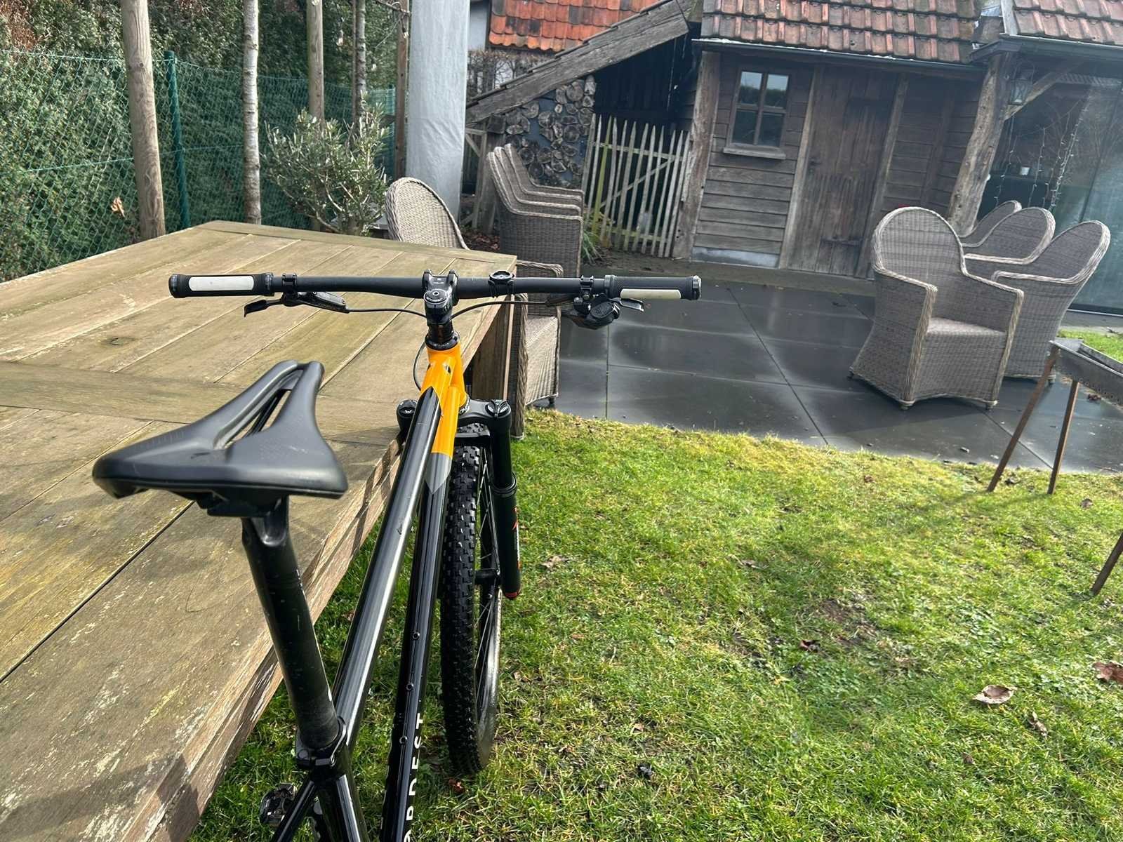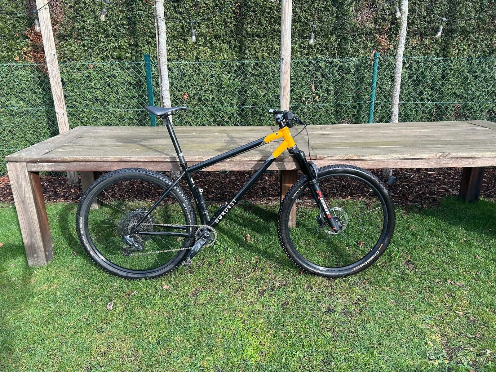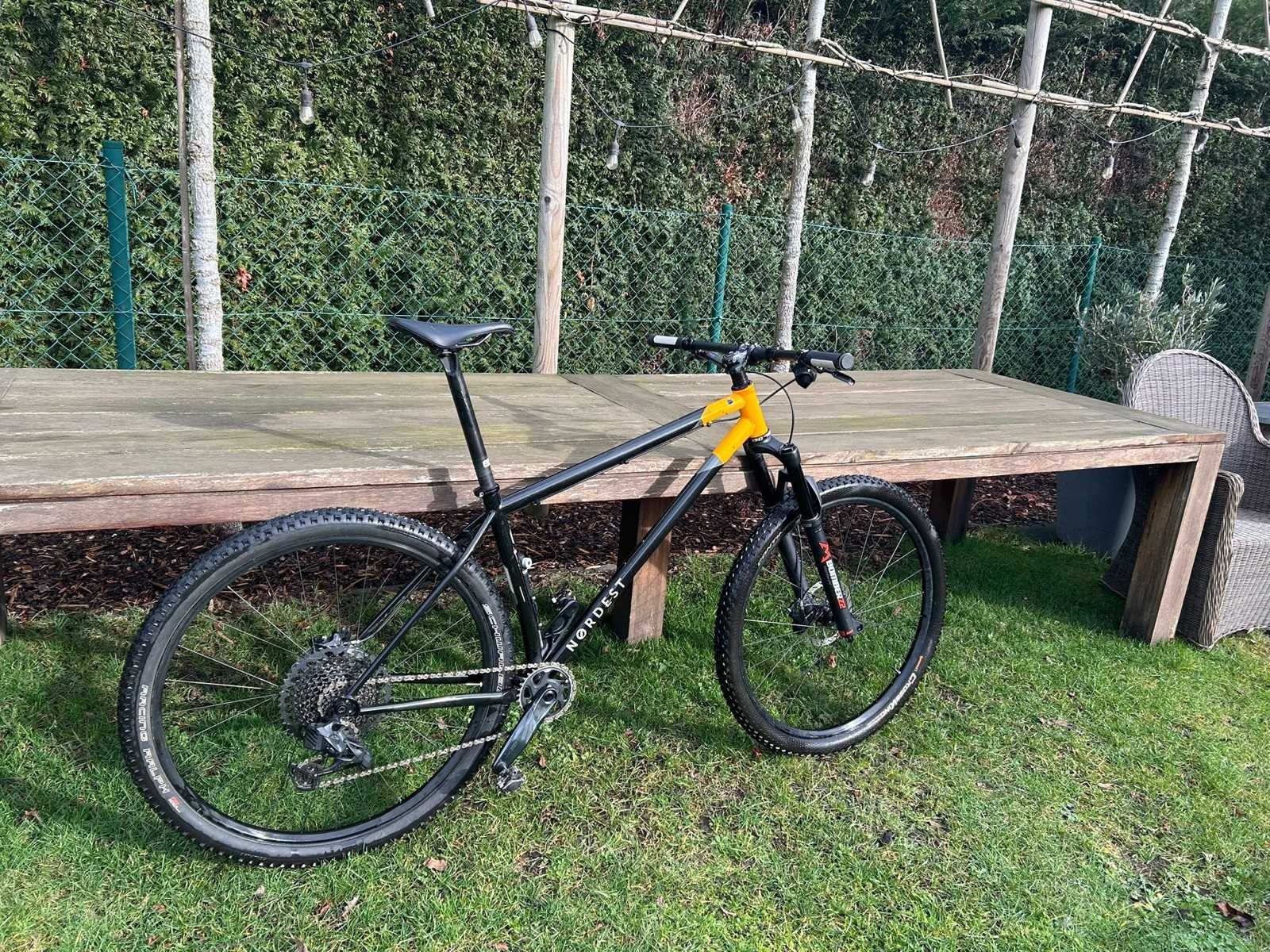 Te koop: hoogwaardige zelfbouw mountainbike opgebouwd met kwaliteitscomponenten. Frame: Nordest L-kader Voorvork: Marzocchi Bomber Headset: Chris King Groepset: SRAM GX Eagle 12-speed (elektrisch) Deze fiets is zorgvuldig opgebouwd met duurzame en performante onderdelen. Ideaal voor wie op zoek is naar een unieke en betrouwbare MTB met sterke specificaties. Nee Merk: Nordest Voorvering: true Framemaat: L