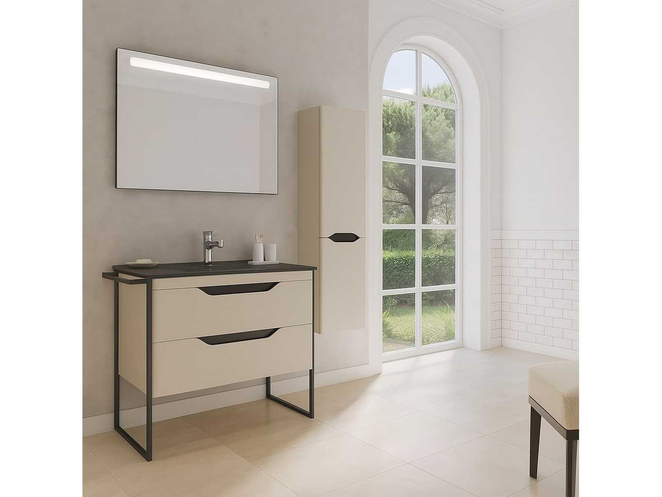 85cm Design Badkamermeubel - METAWOOD85- MDF en Melamine - Kleur: Cappuchino - Afm. B85H74xD45CM - LED Spiegel 80x70cm - Met mat zwart keramik wastafel- de onderbouwkast van het badkamermeubel is uitgevoerd met een soft close systeem - kraan, krepin, sifon en kolomkast niet inbegrepen Nee Merk: Lavinno Model: Metawood 85 Hoogte: 74cm Lengte: 85cm Breedte: 45cm Materiaal: Melamine en MDF Kleur: Cappuchino Wastafel: Zwart Keramik Spiegel: 80x70 Softclose: true