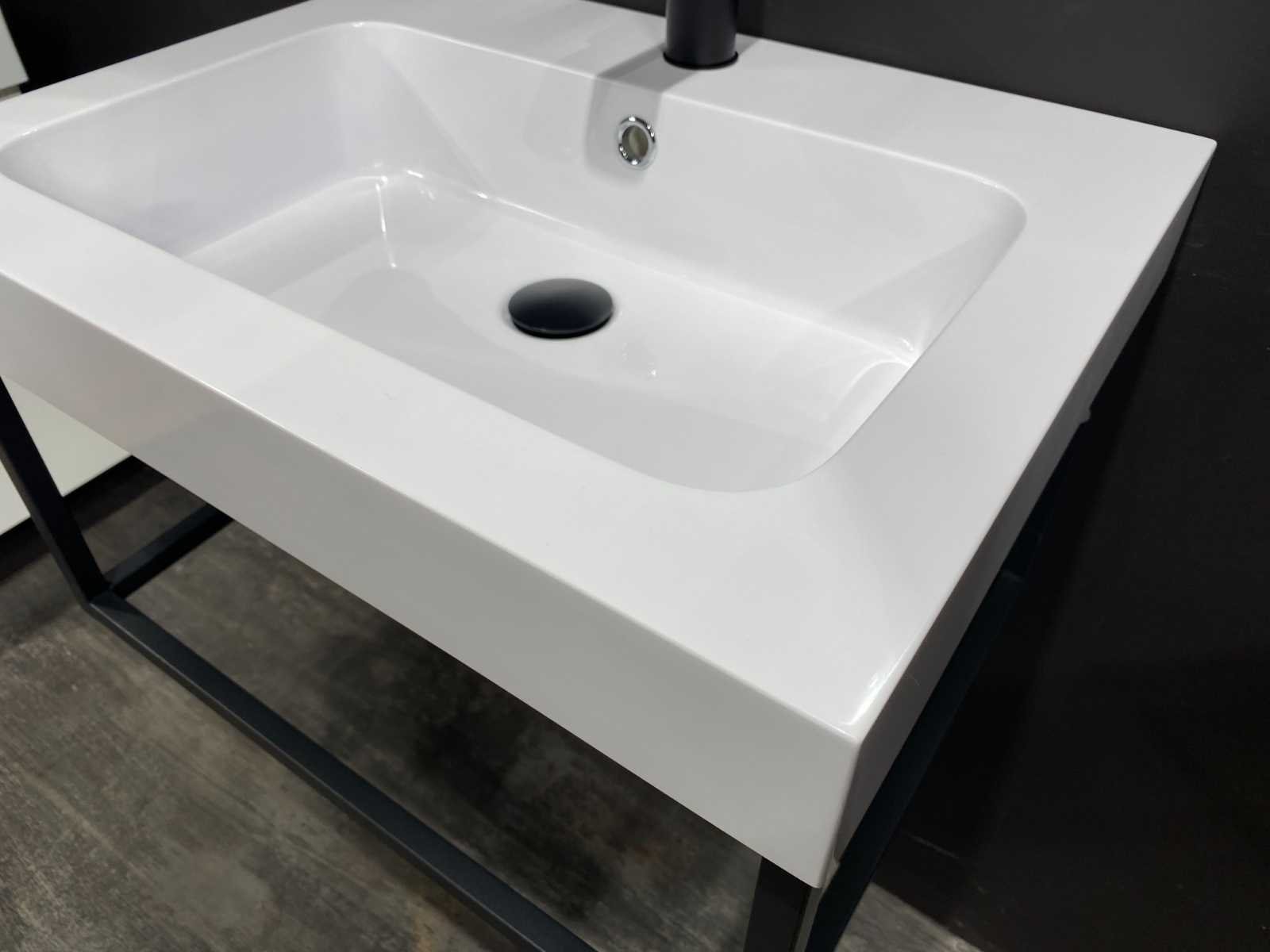 Porto 60cm Wit wastafel - Wit smc wasbak - rechthoekige steun in mat zwart - voor montage aan de muur - LED spiegel 60x60cm (Verschillende kleurtemperaturen 3000K Warm-wit, 4000K Neutraal-wit, 6500K Koud-wit) + Anti Condens + Alle 3 de kleuren zijn dimbaar, zo kunt u het licht eenvoudig dimmen of feller maken tot het gewenste effect - Bevestigingsmateriaal inbegrepen - kraan, krepin en sifon niet inbegrepen - Frame afmeting: 59x45x28.5cm - Lavabo afmeting: 60x46x8cm - Totale hoogte36.5cm Nee Merk: Lavinno Model: Porto 60 Kleur: Wit Eik Wastafel: Ceramic Softclose: true