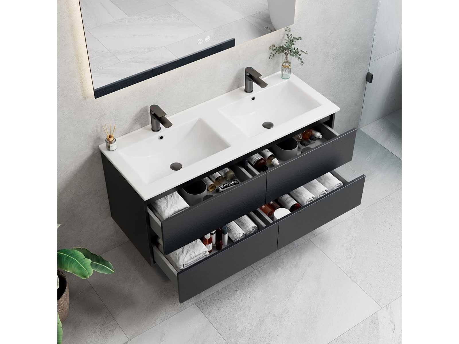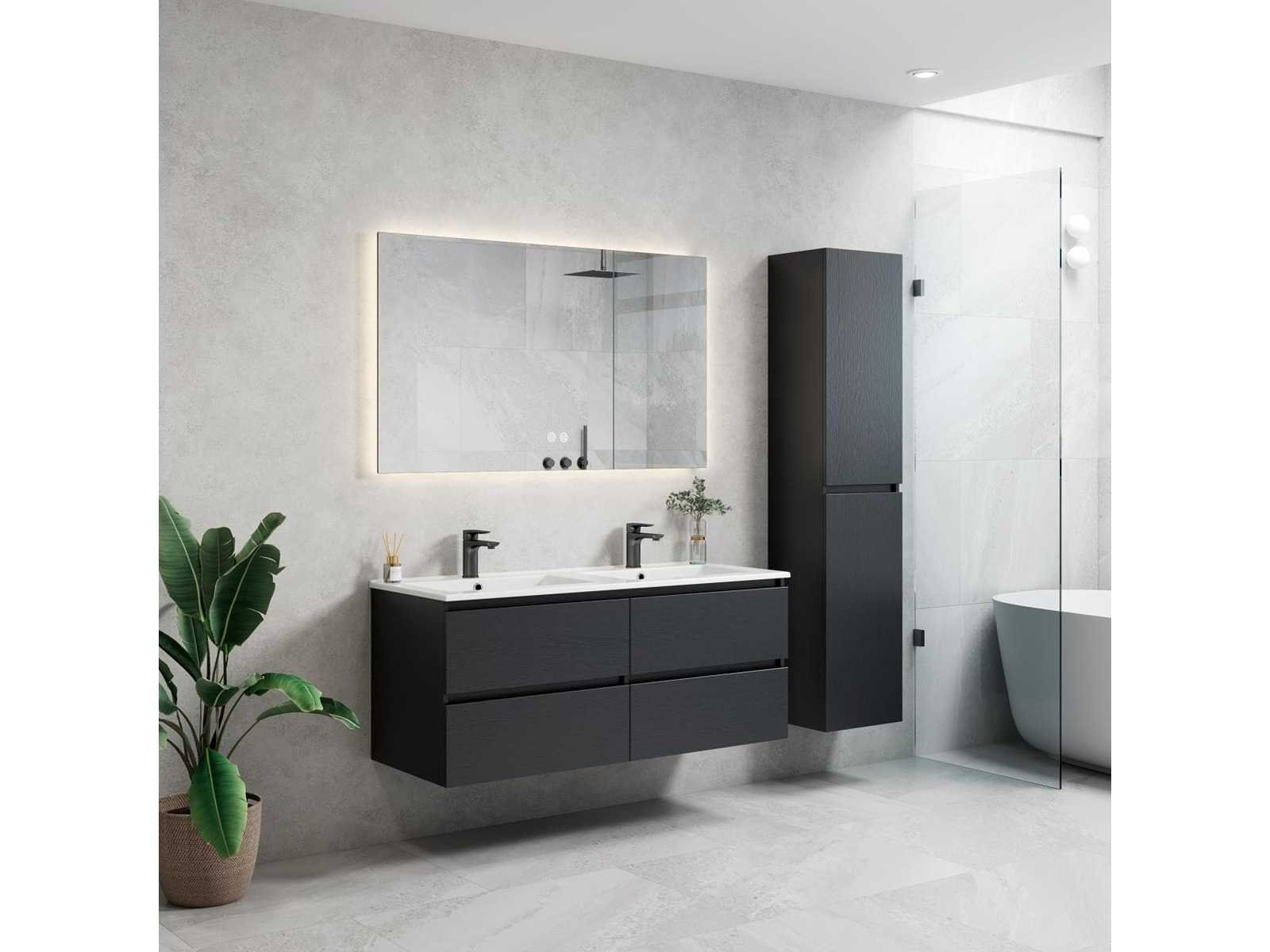 De onderbouwkast van het badkamermeubel bevat 4 laden en is uitgevoerd met een soft close systeem - Kraan, krepin, sifon en kolomkast niet inbegrepen Nee Merk: Lavinno Model: Roma 120-06 Hoogte: 50cm Lengte: 120cm Breedte: 46cm Materiaal: Melamine Kleur: Zwart Eik Wastafel: Mineraalmarmer Spiegel met verlichting: 120x70cm Softclose: true