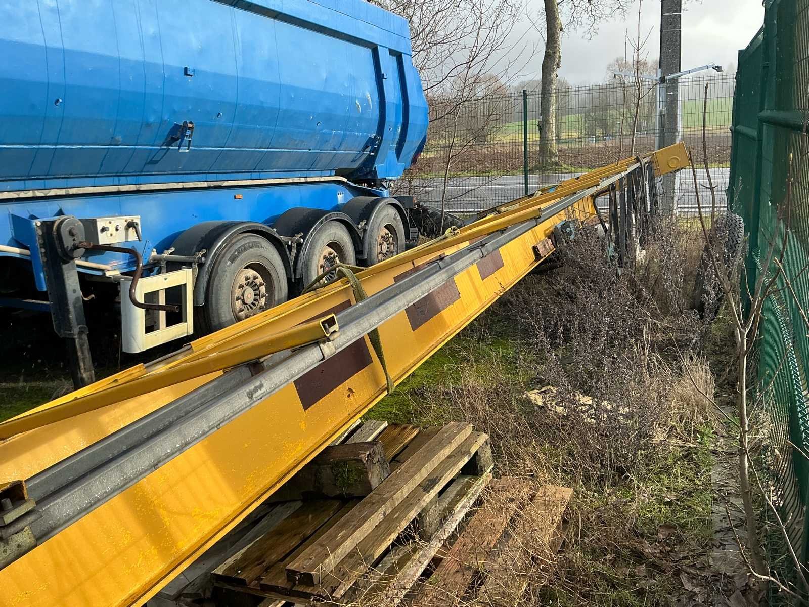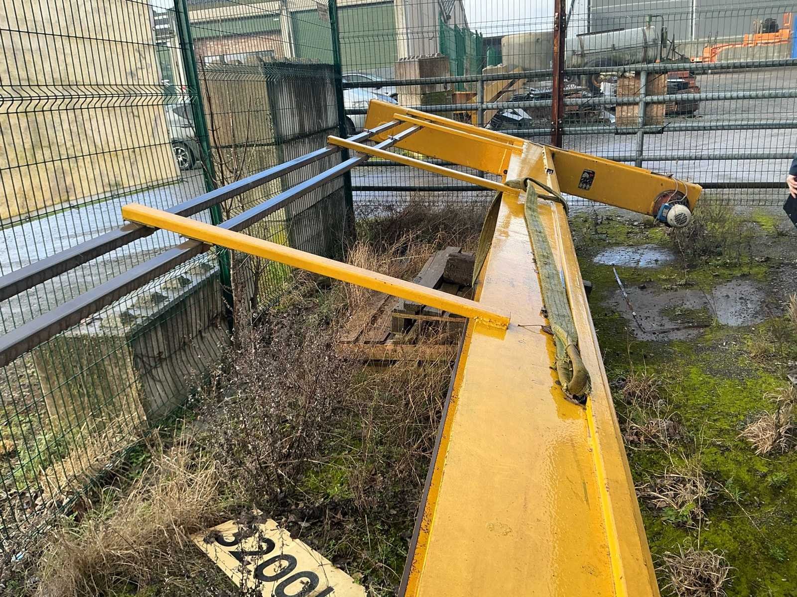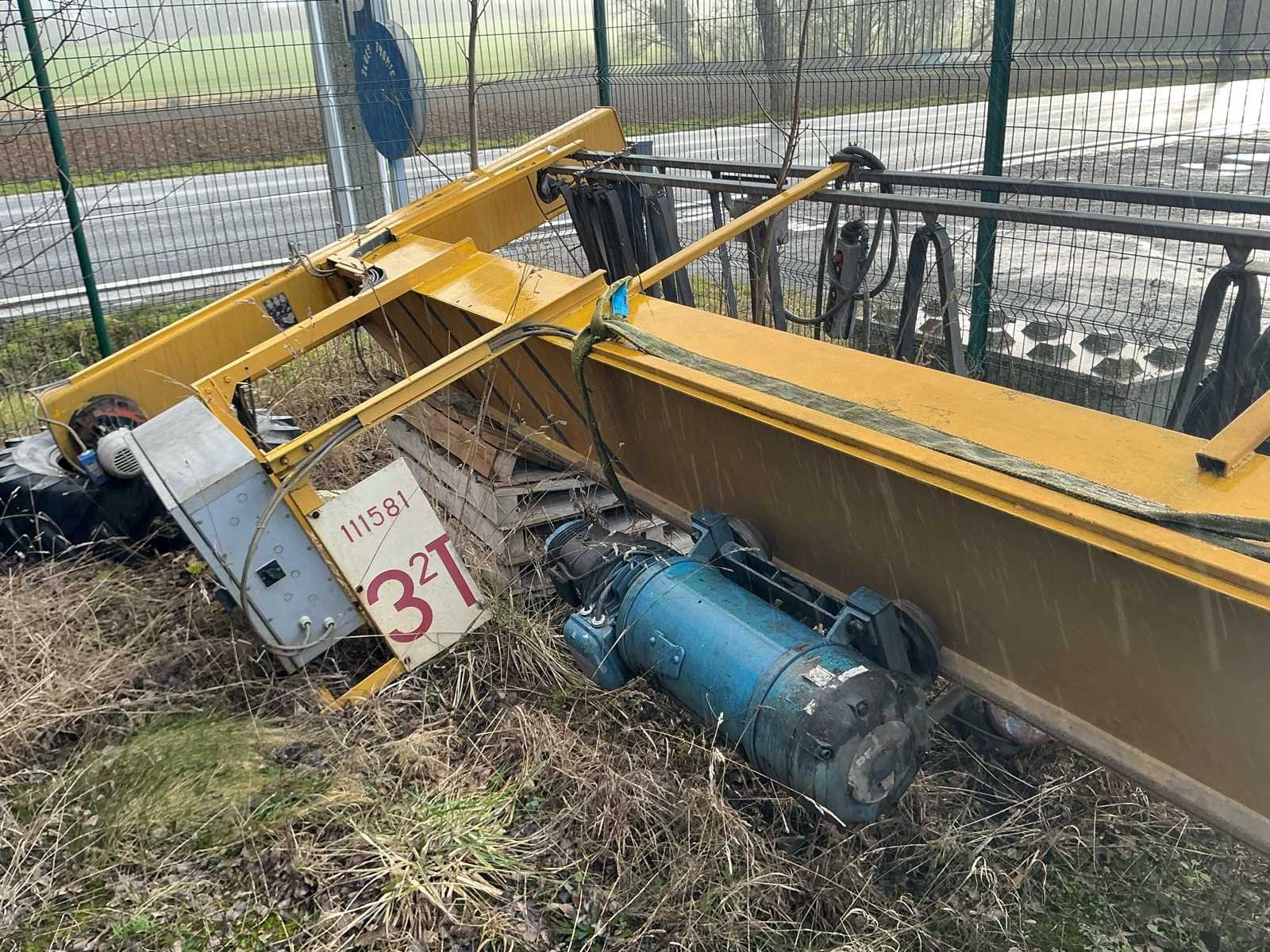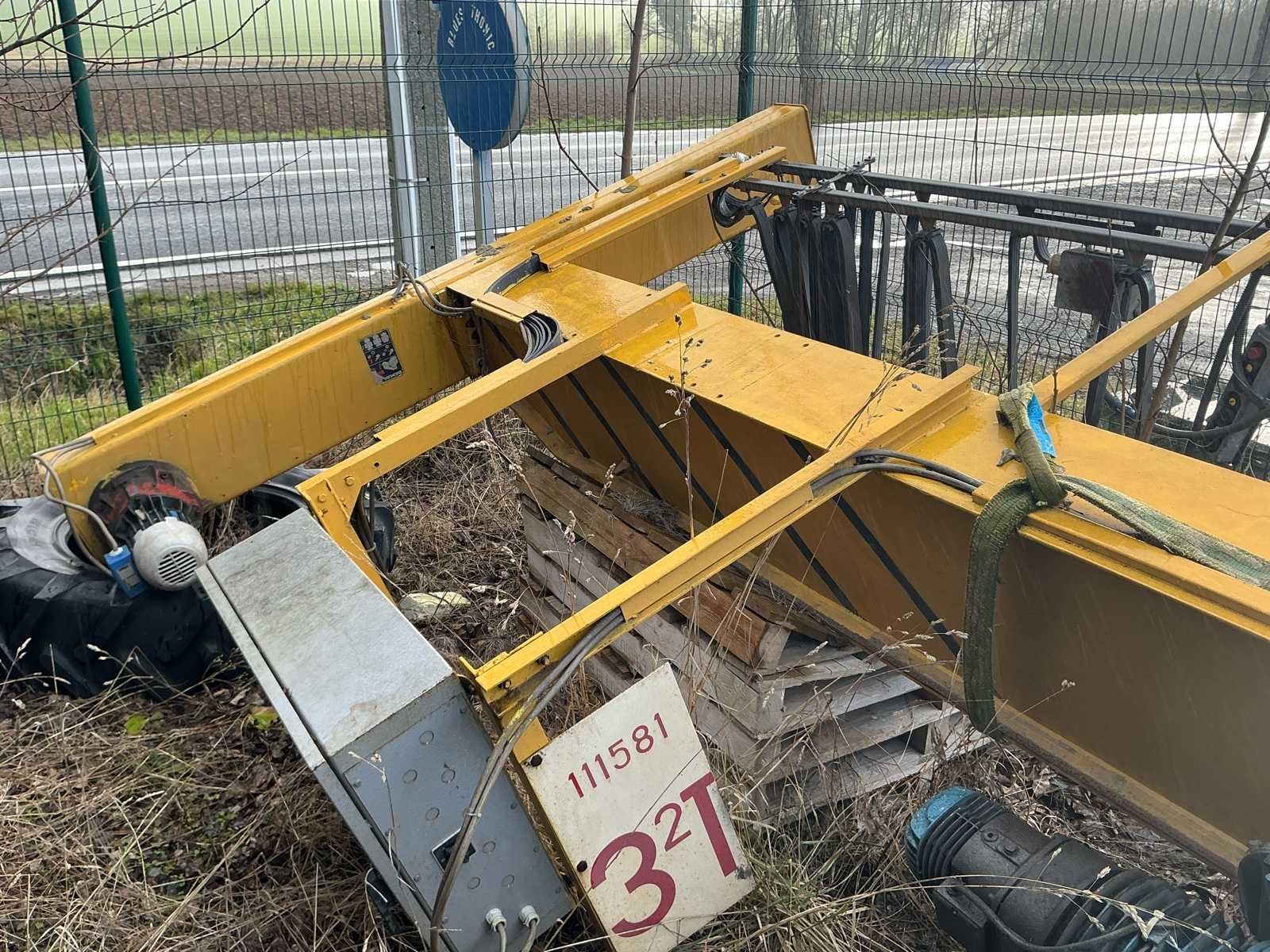 In gebruikte stand, Werkend gedemonteerd. Werking te controleren. Non Merk: Demac Type: Rolhefbrug Hijsvermogen: 3200kg Met kraanbalk: true