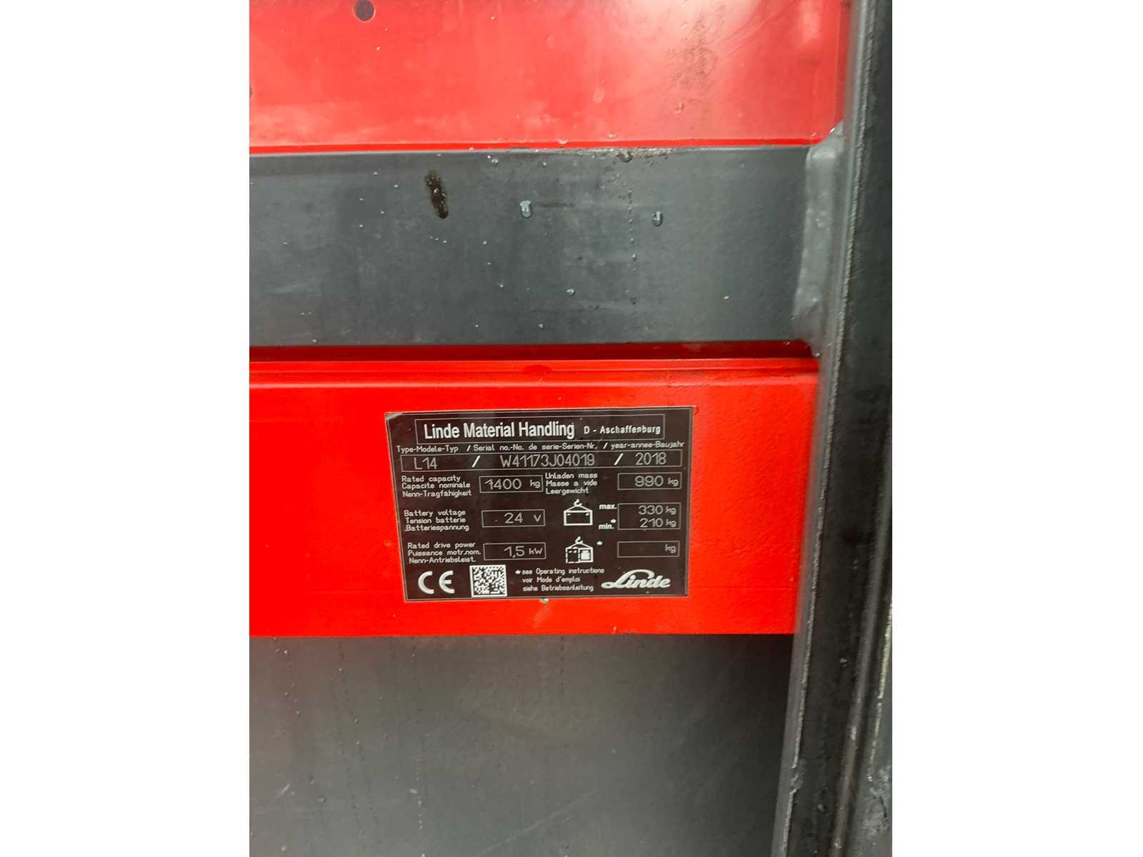 2018 linde l14 stapelaar met weegsysteem