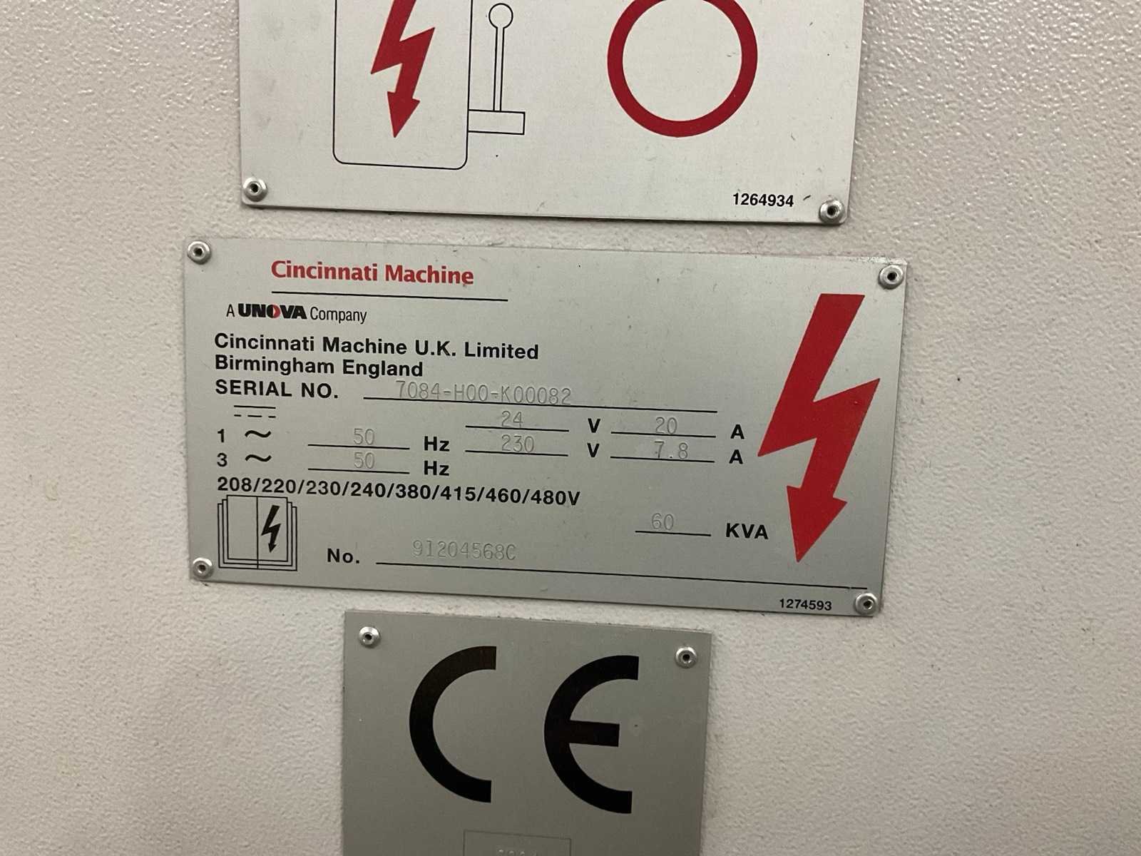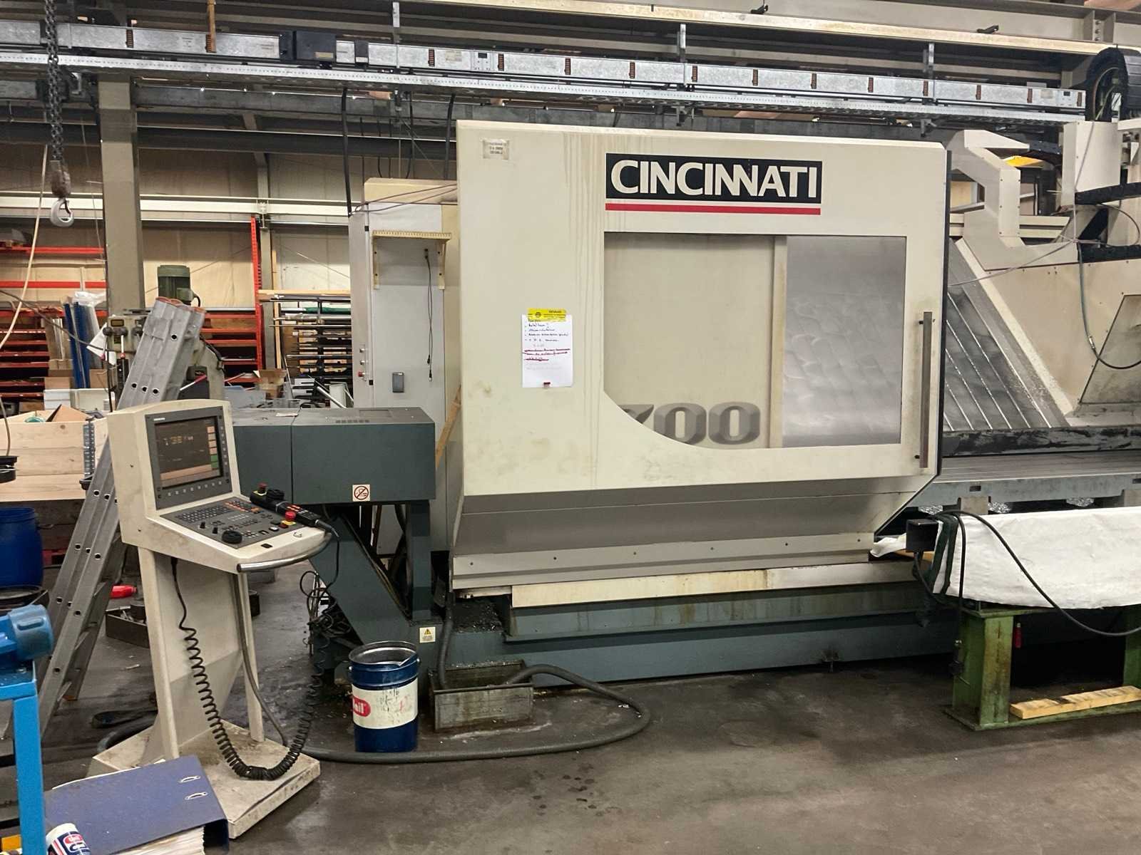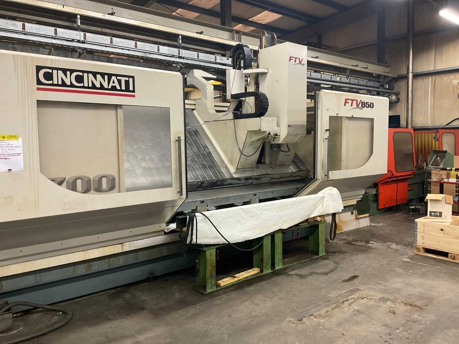 Machine voert alle functies uit . 2 kabels van de rups moeten vervangen worden (nu zichtbaar als losse kabels) Partij gereedschappen inclusief. Nee Merk: Cincinnati Type: FTV850 Bouwjaar: 2004 Serienummer: 7084-H00-KO0082 Verplaatsing x-as: 3700mm Verplaatsing y-as: 815mm Verplaatsing z-as: 800mm Opname iso: Iso 50 Snelheid van n =: 0rpm Snelheid tot n =: 5000rpm T-gleuf opspantafelafmeting L: 4300mm T-gleuf opspantafelafmeting B: 815mm Werkstuk gewicht max.: 5250kg Koelmiddelpomp: true Spanentransporteur: true CNC-besturing, merk, type: Heidenhain 810 Motorvermogen (kW): 42kW Aansluiting: 380V Machinegewicht: 19000kg Afmeting l: 6900mm Afmeting b: 3500mm Afmeting h: 3500mm