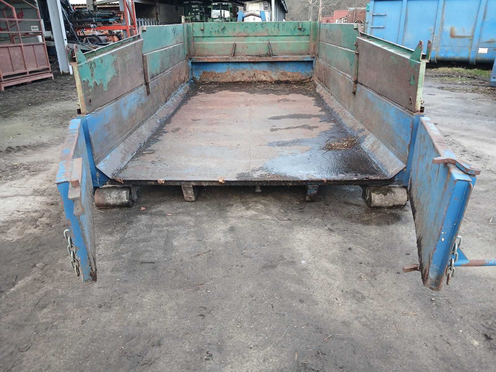 Degelijke en zwaar uitgevoerde afzetcontainer van Jaspers NV (metaalbouw), gebouwd voor professioneel en intensief gebruik. Deze container is ontworpen voor plaatsing met afzetsysteem en is voorzien van rollen en een stevige hefbeugel, wat zorgt voor vlot en efficiënt verplaatsen. De constructie is duidelijk van industriële kwaliteit: dikwandig staal, versterkte zijwanden en solide laswerk — geen lichte uitvoering maar een container uit het zwaardere segment. Ideaal voor gebruik in landbouw, aannemerij, recyclage of werfomgeving. De container vertoont gebruikssporen en roestvorming passend bij zijn inzet, maar staat structureel stevig. Nee Merk: Jaspers NV Totale afmeting L: 5000mm Totale afmeting Breedte: 2400mm