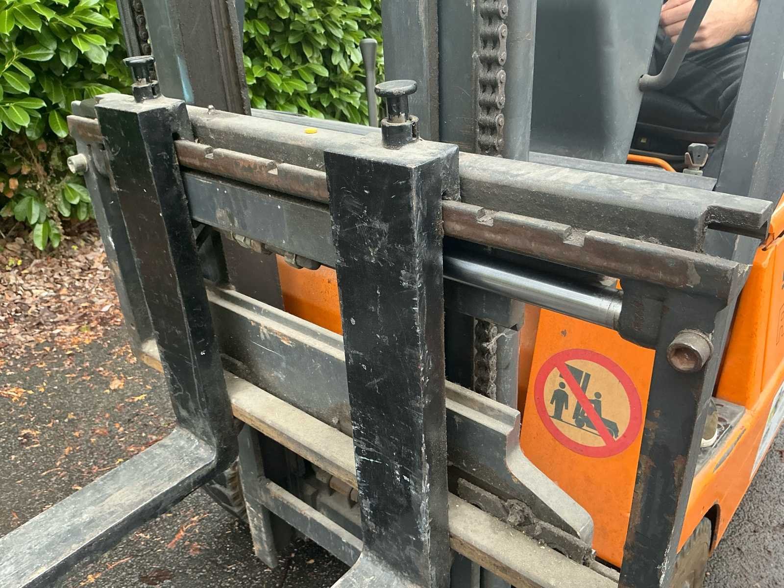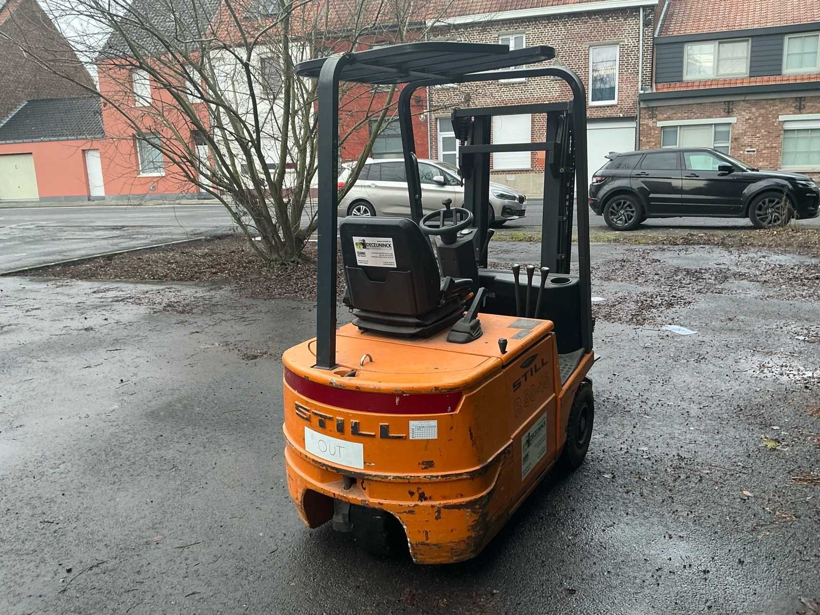 No Merk: Still Type: R50-15 Bouwjaar: 2000 Brandstof: Elektrisch Mast: Duplex Soort band: Volrubber Aantal wielen: 3 Afgelezen urenstand: 1066 Accu lader: true Side-shift: true Duplex mast: true Hefvermogen: 1500kg Lepellengte: 900mm Max. hefhoogte: 4300mm Vol rubber banden: true Minimale doorrijhoogte: 2000mm Totale afmeting Breedte: 900mm Totale afmeting Hoogte: 2000mm