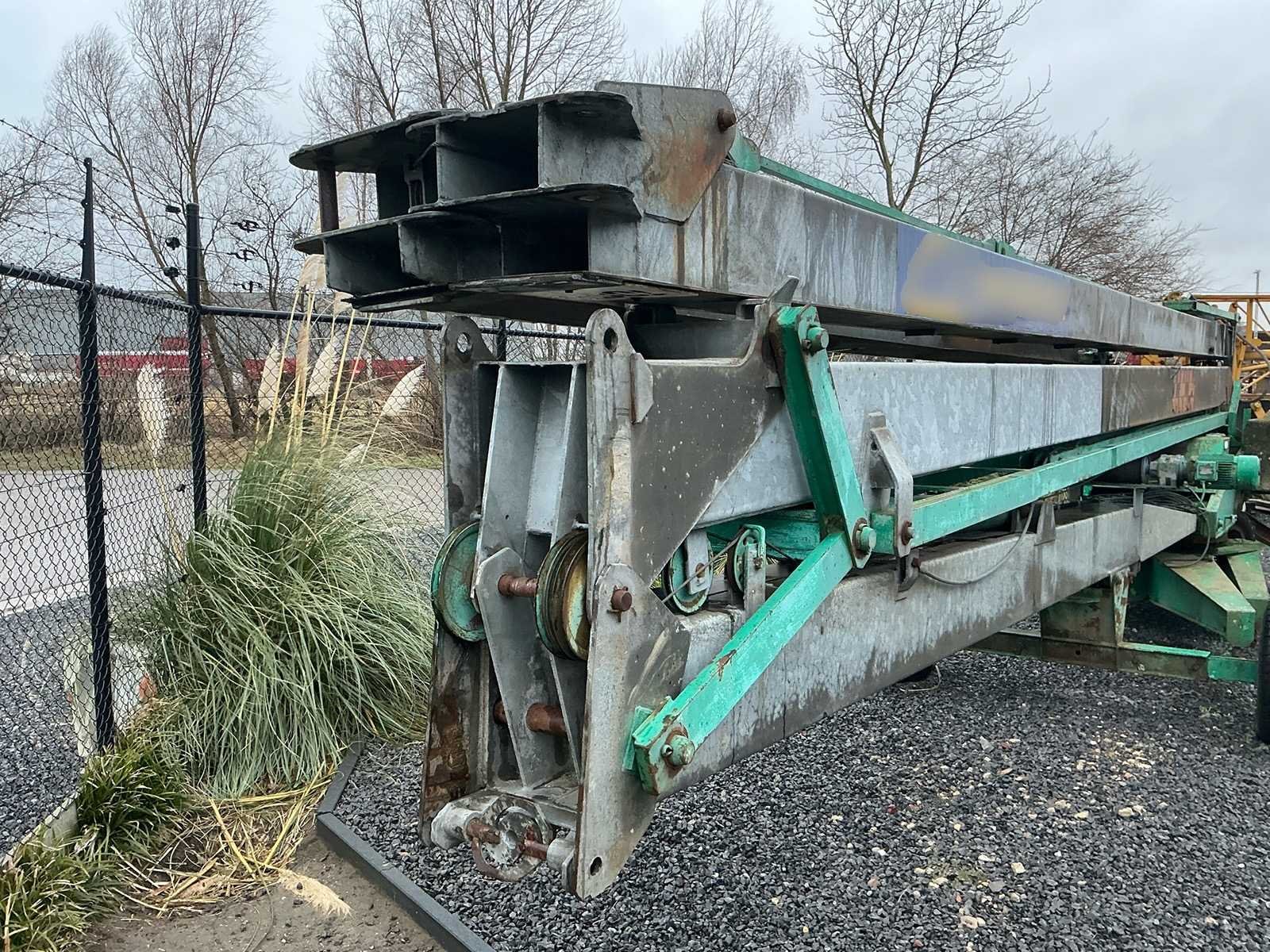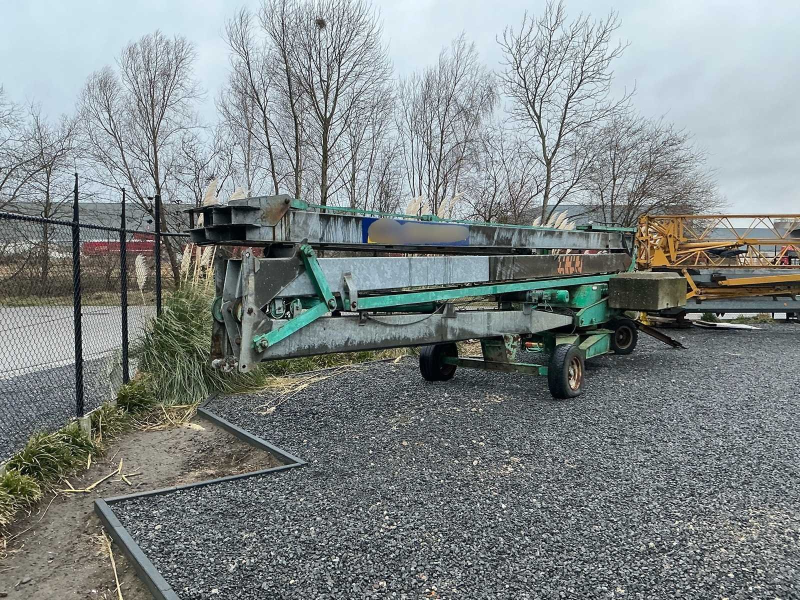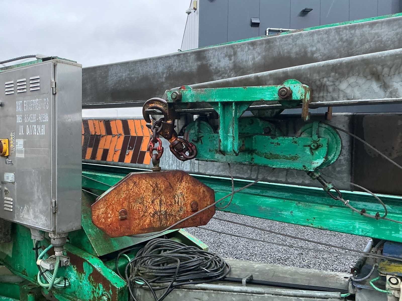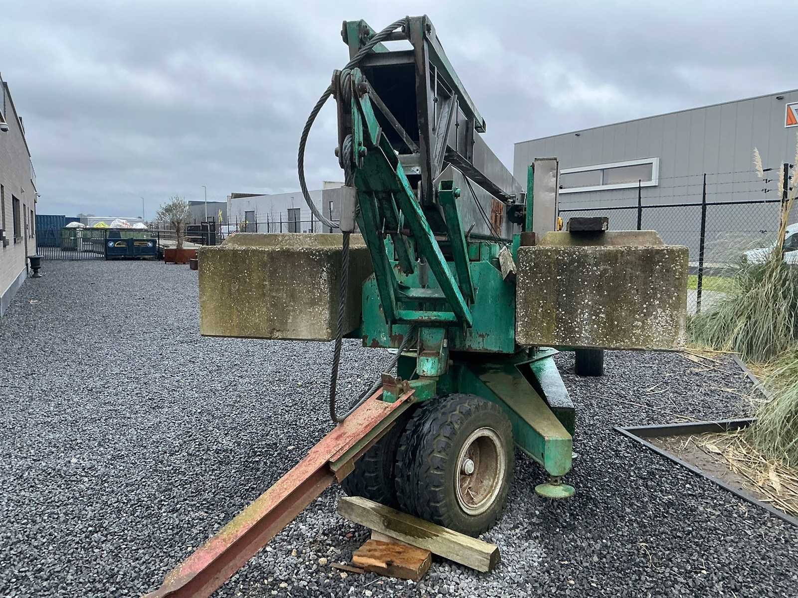 Mobiele Cattaneo giek-kraan van de maker C.M. Costruttrice Meccanica S.p.A. (Italië), type CM 61, bouwjaar 1989. De kraan is uitgevoerd met een horizontale (inschuifbare) giek, loopkat met hijshaak en een maximaal hefvermogen van 1.000 kg. Voorzien van een elektrische hijsinstallatie, bedrade afstandsbediening ( moet hersteld worden) en betonnen contragewichten. De kraan staat op een verrijdbaar onderstel met wielen en steunpoten voor positionering op het terrein. Ideaal voor verbouwing / klein tot middelgrote bouwwerken. Inclusief gewichtklem om de betonblokken te plaatsen. Werkt op gewone 230v stekker. Nee Merk: Cattaneo Type: CM 61 230v Bouwjaar: 1989 Serienummer: 3467 MI 85 Max. hijscapaciteit: 1000kg Met afstandsbediening (bedraad): true
