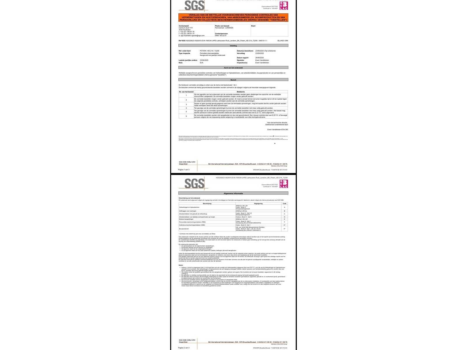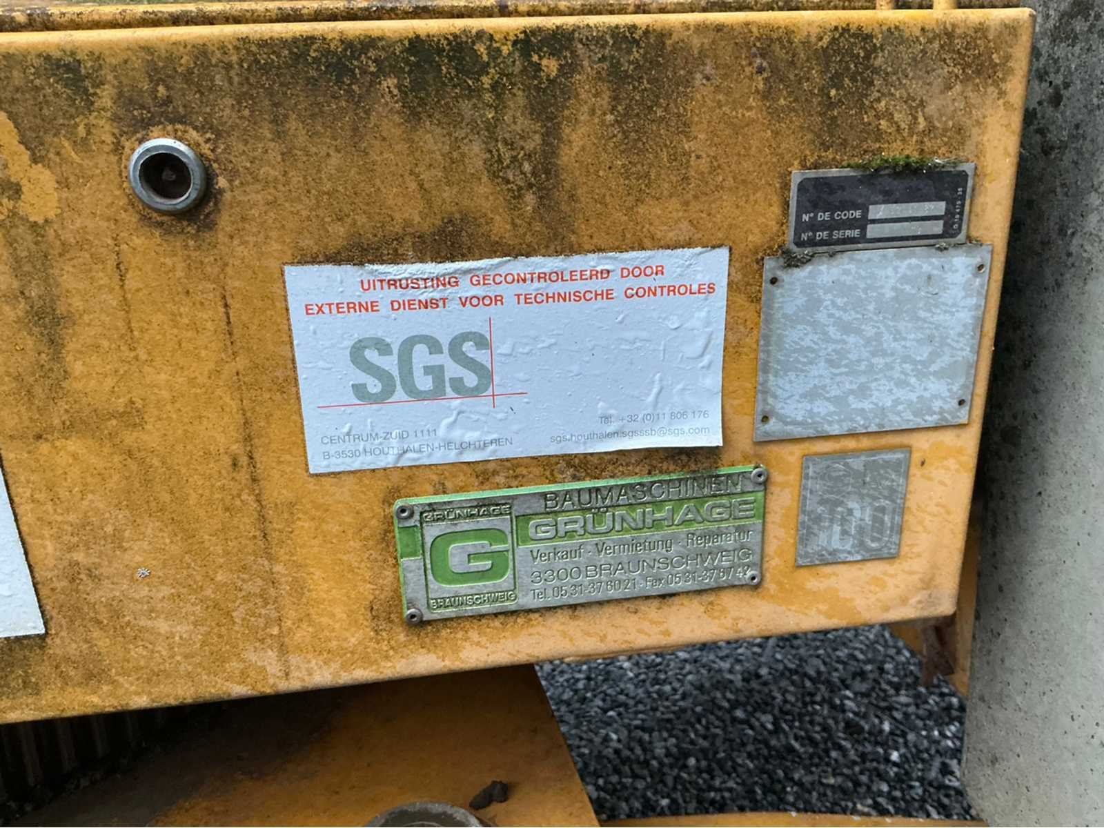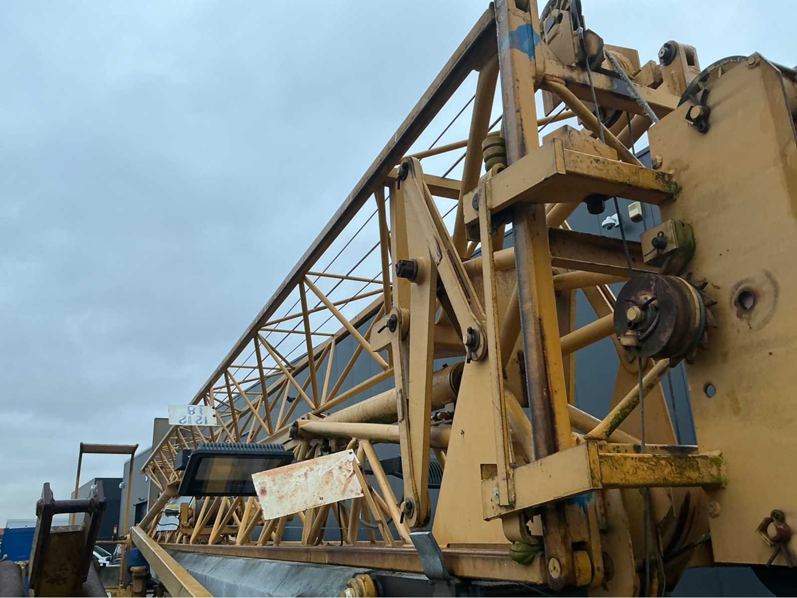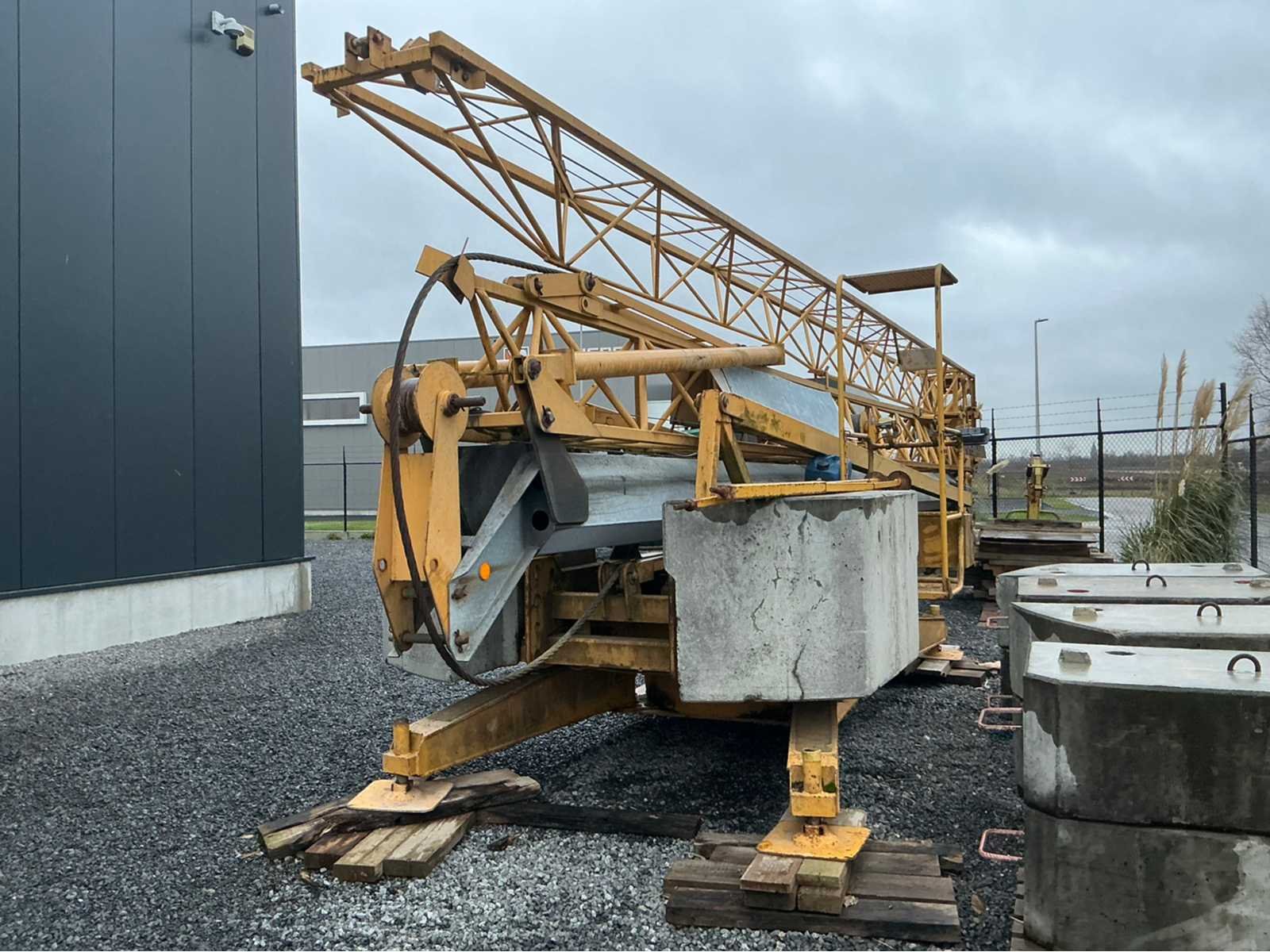 Laatste keuring einde 2025 (zie laatste foto) en in functionele staat mobiele zelfoprichtende torenkraan met horizontale vakwerkgiek, uitgevoerd zonder wegtransportwielen en bedoeld voor opstelling op terrein of fundatie. Telkens gekeurd voor nieuwe opstelling werf. Fabrikant: niet met zekerheid vast te stellen (waarschijnlijk Duits/Frans) Dealer/service: Baumaschinen Grünhage (D)Type: oudere stationaire torenkraan met horizontale giek. Max. hijslast: ca. 1000 kg ,Keuring: SGS (BE) Lastentabel: Stand Last A 500 kg (≈ 9,85 cwt), B 1000 kg (≈ 19,7 cwt), C 400 kg (≈ 7,9 cwt). Hoogte 20m, lengte: 25m, gewicht op mast 25m = 800kg, 2500kg op 10 m. Met afstandsbediening. Nee Merk: Potain Type: HD 21A Met afstandsbediening (bedraad): true