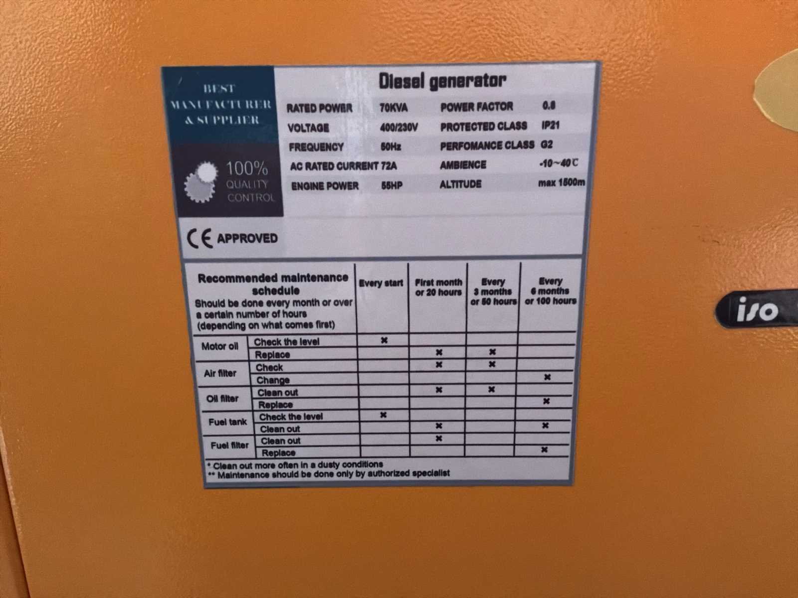 Nieuw, nooit werkte Nominale spanning 400/230 V - Nominale frequentie 50Hz - rotatiesnelheid 1500 rpm Enkelfasige - DC-uitgang: 130V Capaciteit: 80L No Merk: Stahltech Type: 4105 Bouwjaar: 2025 Capaciteit.: 70kVA Diesel: true Motorvermogen (kW): 55kW Watergekoeld: true Afgelezen urenstand: 0 Handboek aanwezig: true Machinegewicht: 950kg Totale afmeting L: 22400mm Totale afmeting Breedte: 9500mm Totale afmeting Hoogte: 12400mm