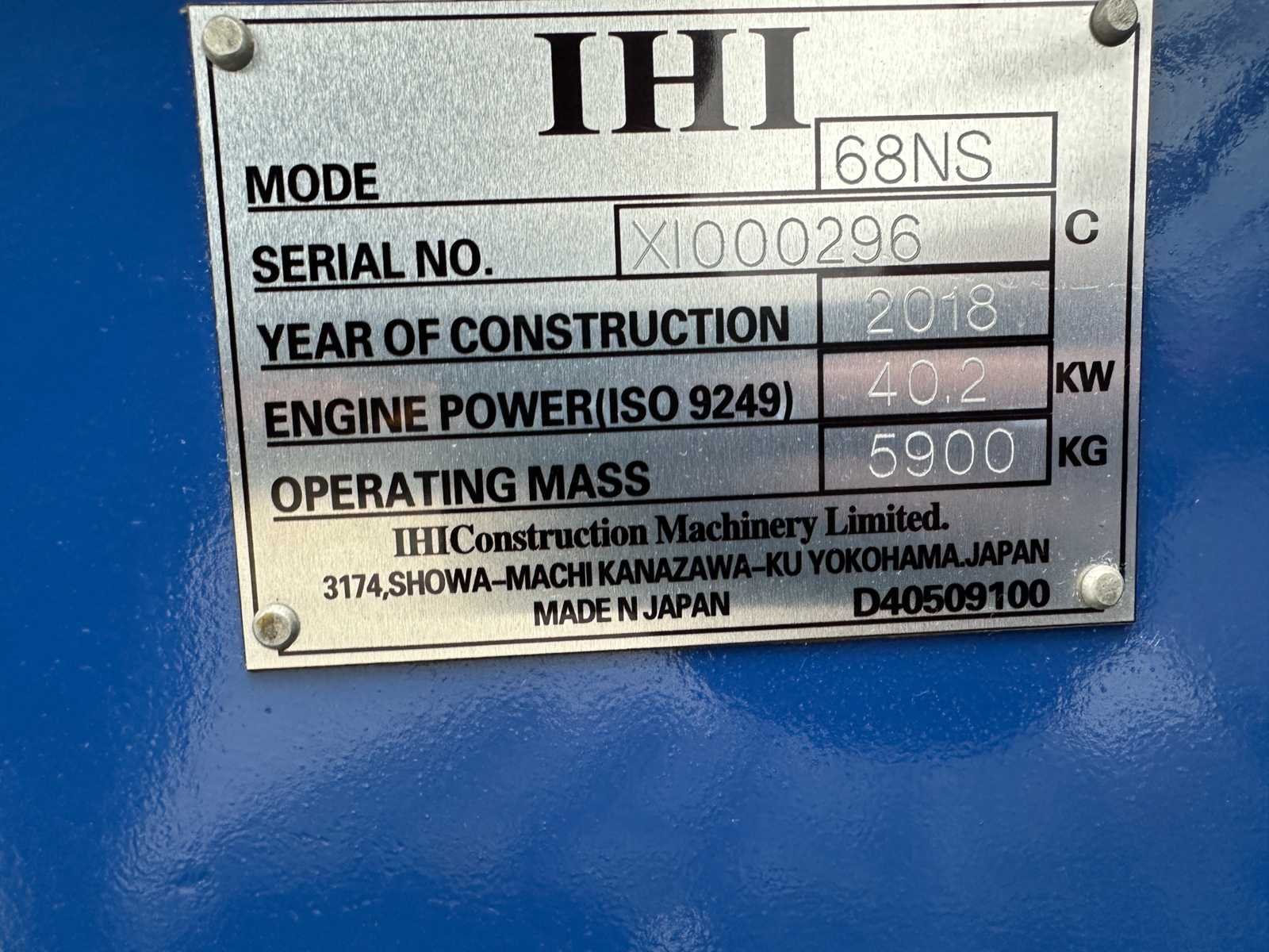-Mechanische snelwissel -Hamerleidingen -Tandenbak -Duwblad -Rupsen met rubberpads -Geen documenten Nee Merk: IHI Type: 68 NS Bouwjaar: 2018 Serienummer: XI000296 Merk motor: Yanmar Motorvermogen (kW): 40.2kW Aantal cilinders: 4 Brandstof: Diesel Graafbak afm. b: 650mm Rups breedte: 400mm Afgelezen urenstand: 4195 Eigen gewicht: 5900kg Totale afmeting L: 5800mm Totale afmeting Breedte: 2000mm Totale afmeting Hoogte: 2550mm GS Code: 8429521200
