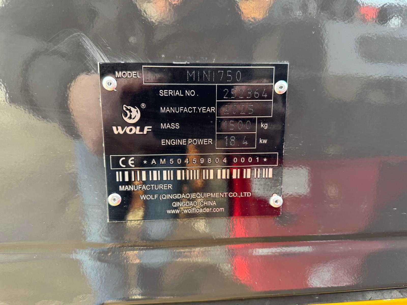 Hydraulische snelwissel Vorkenbord + bak Lepels 900mm Extra hydraulische functie Gereedschapsbox Nieuw Nee Merk: Wolf Type: MINI 750 Bouwjaar: 2025 Serienummer: 252364 Merk motor: Perkins Motorvermogen (kW): 18.4kW Aantal cilinders: 3 Brandstof: Diesel Graafbak afm. b: 1250mm Bandenmaat: 26x00-12 Afgelezen urenstand: 0 Eigen gewicht: 1500kg Totale afmeting L: 3325mm Totale afmeting Breedte: 1150mm Totale afmeting Hoogte: 2360mm