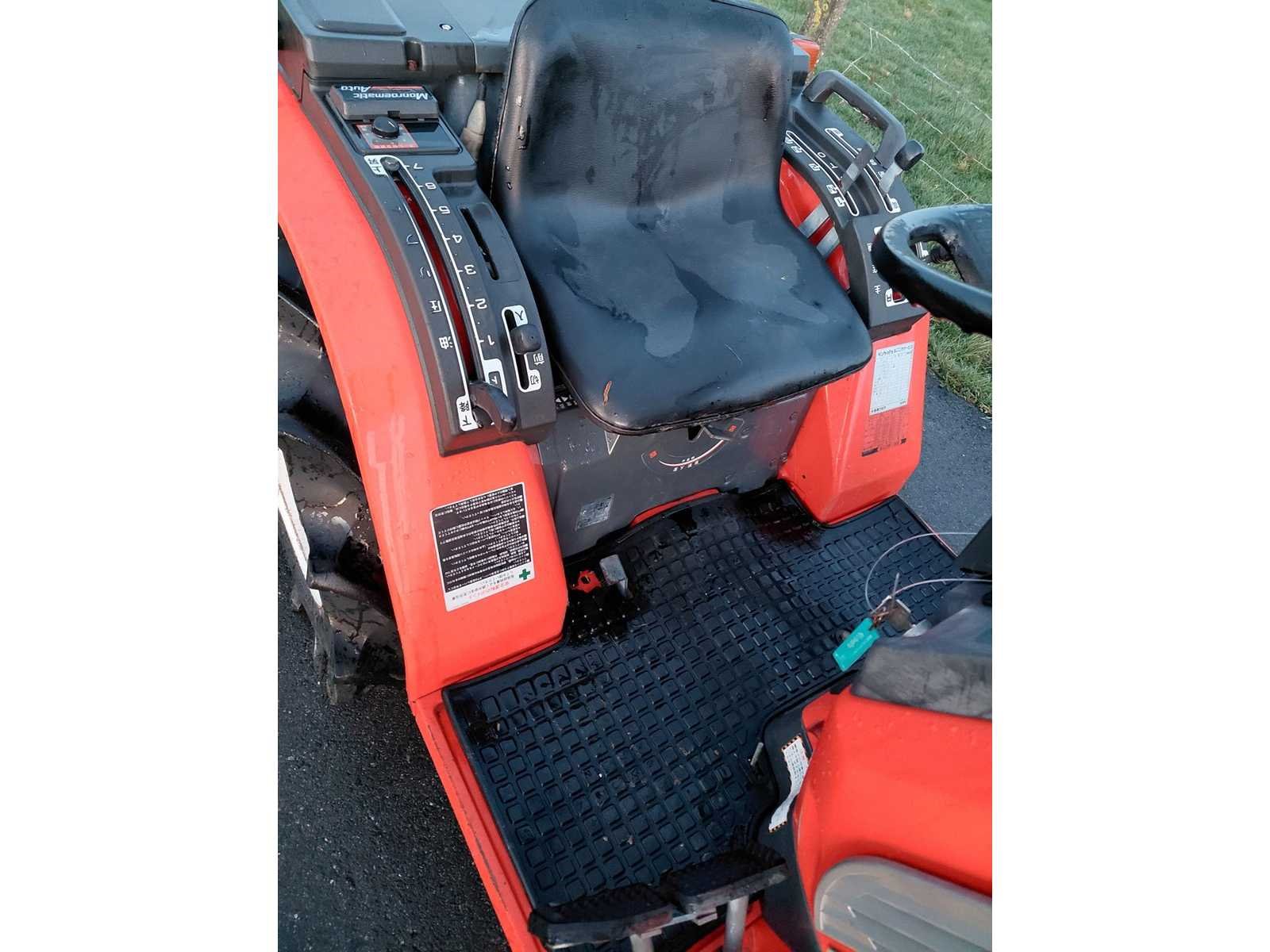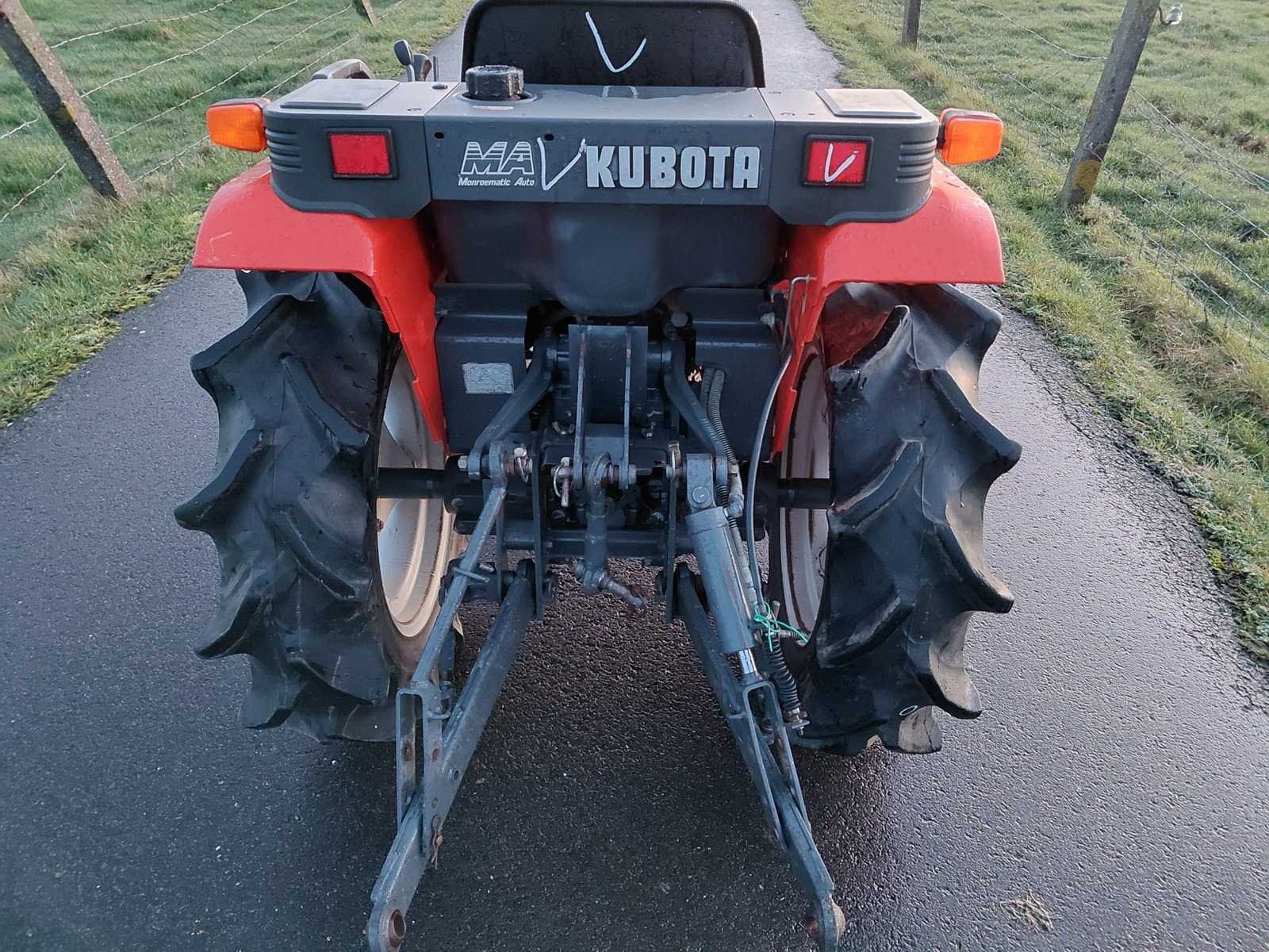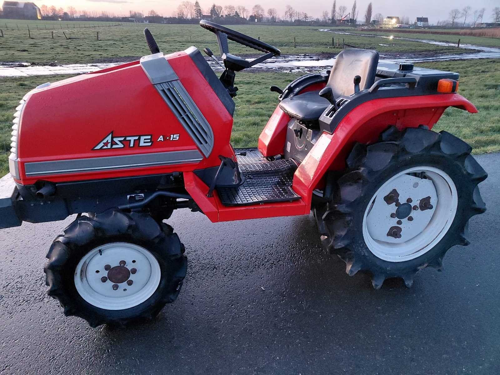 Mini tractor KUBOTA A15 4 wielaandrijving 15 pk 6 versnelling vooruit + 2 versnelling achteruit 806 uren Aftakas met 3 snelheden Goede banden No Merk: Kubota Type: A15 Motorvermogen (kW): 11kW Afgelezen urenstand: 806 Versnellingsbaktype: 8 versnellingen