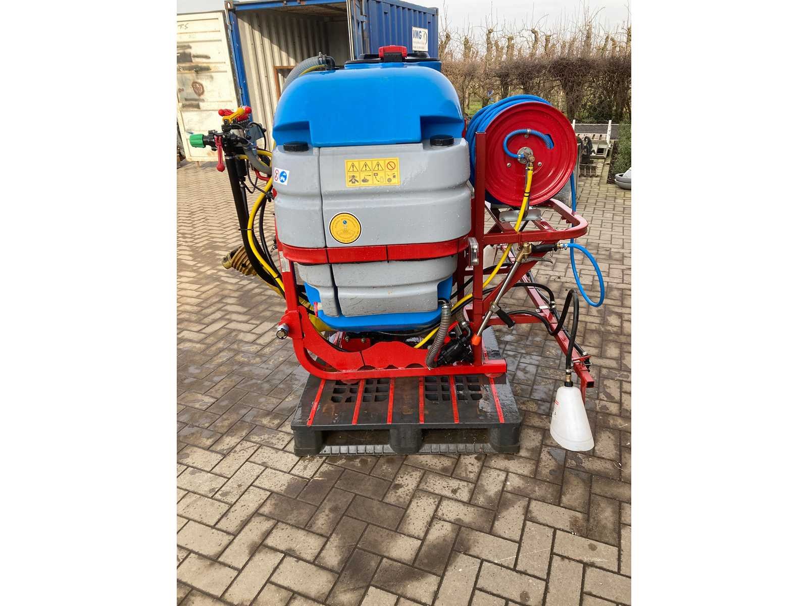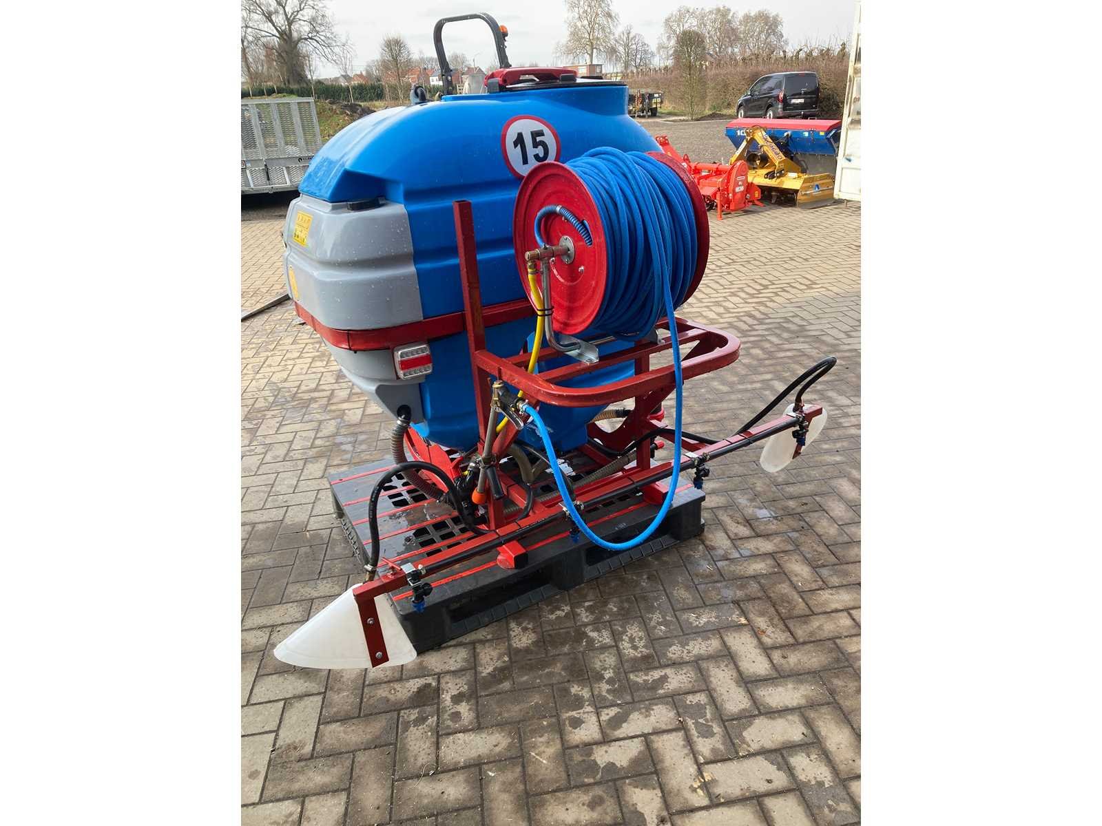 600 liter 3-voudige tank met duidelijke vloeistof niveau indicator in stalen gepoederlakte constructie Enkelvoudige anti drift doppen membraampomp 120l/m 5-voudige sectie-verdeler met manometer 4 fazen filtratie systeem ( fase 1: zeef bij vullen, fase 2:aanzuigfilter, fase 3: zelfreinigende filter naast de distributeur, fase 4: filters in de sproeikoppen) Schoonwater spoeltank van 40L Handwastank van 15L Met slanghaspel van 50m en sproeilans Spuitkappen kunnen in breedte versteld worden Op houten pallet Nee Merk: Biardski Capaciteit.: 120l/min Spuitboombreedte: 3m Tankinhoud: 600l Voorzien van verlichting: true Schoonwatertank: true Sectie afsluiting: true Totale afmeting L: 2000mm Totale afmeting Breedte: 2000mm Totale afmeting Hoogte: 1500mm