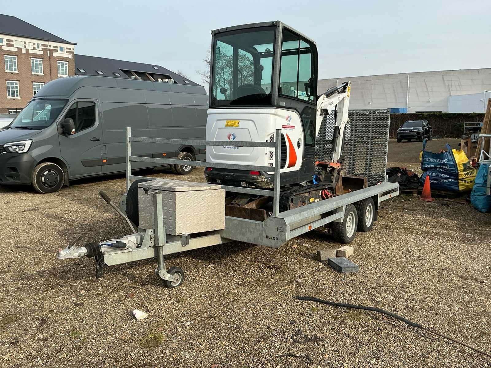 Inclusief aanhangwagen,graafbakken,stamper en pikeur. Zowel de Bobcat als de aanhangwagen hebben alle nodige documenten. VIN Bobcat : B4PK12664 VIN Hulco Machinetransporter bouwjaar 2021 : WHLT2350200031183 Nee Merk: Bobcat Type: E19 Bouwjaar: 2020 Brandstof: Diesel Met graafbak: true