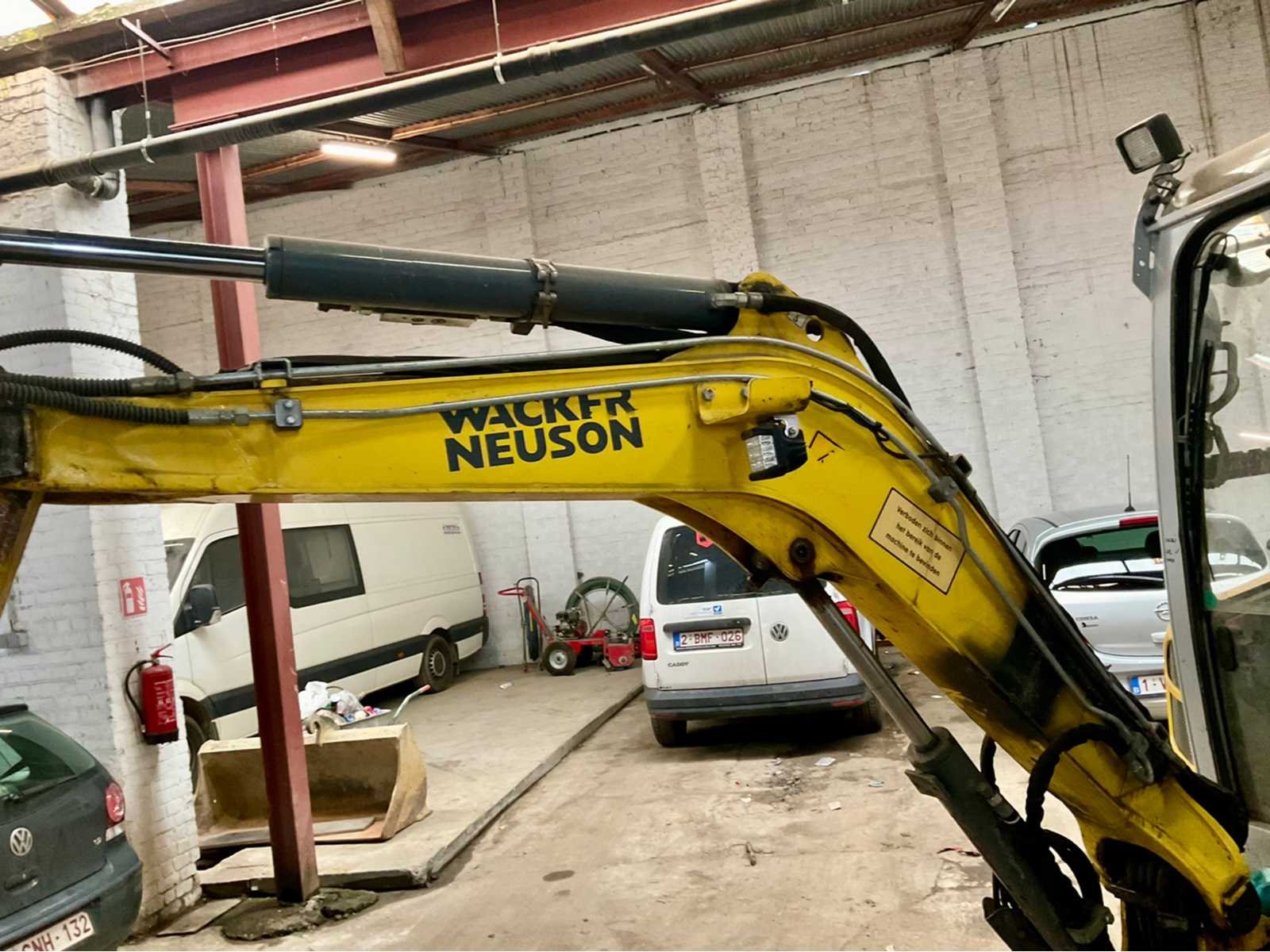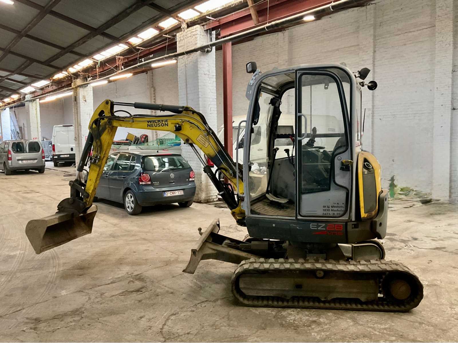 Wacker Neuson EZ28 rupsgraafmachine Compacte en krachtige 2,8-tons rupsgraafmachine met zero tail swing. Uitgerust met een betrouwbare Yanmar 3-cilinder dieselmotor (15,8 kW). Ideaal voor werkzaamheden op beperkte ruimte dankzij de compacte afmetingen en cabine-uitvoering. Machine is CE-gemarkeerd. Rupsen versleten . Nee Merk: Wacker neusson Type: EZ28 Serienummer: WNCE1002HPAL02397 Merk motor: Yanmar Motorvermogen (kW): 15.8kW Aantal cilinders: 3 Brandstof: Diesel Bedrijfsgewicht: 3278kg Gieklengte: 2150mm Max. werkbereik: 4620mm Max. graafdiepte: 2740mm Met graafbak: true Rups breedte: 300mm Cabine: true Afgelezen urenstand: 3262.9 Eigen gewicht: 3110kg Totale afmeting L: 4250mm Totale afmeting Breedte: 1570mm Totale afmeting Hoogte: 2420mm