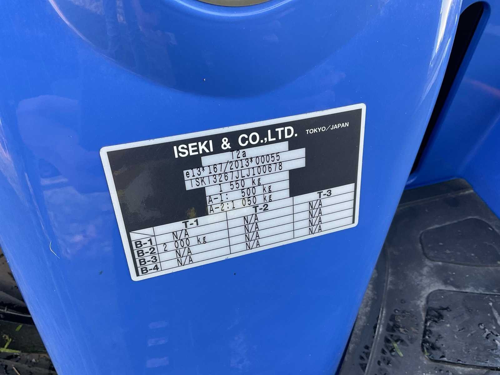 Inschrijvingsbewijs, gelijkvormigheidsattest, gebruiksaanwijzing. Met Laad/kip bakje voor aanbouw aan tuinbouwtractor breedte 1.10 m. ISEKI E3CD DIESEL motor Nee Merk: Iseki Type: TM3267H Bouwjaar: 2020 Serienummer: ISKTM3267JLJ100678 Motorvermogen (kW): 22kW Afgelezen urenstand: 88,4 Eigen gewicht: 1550kg Chassisnummer: ISKTM3267JLJ100678