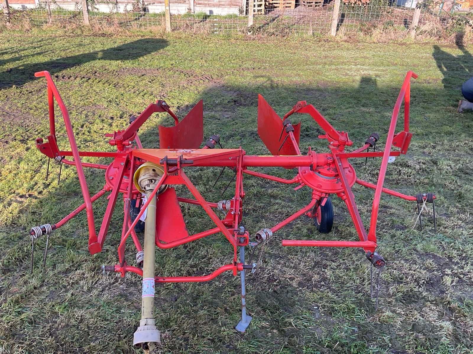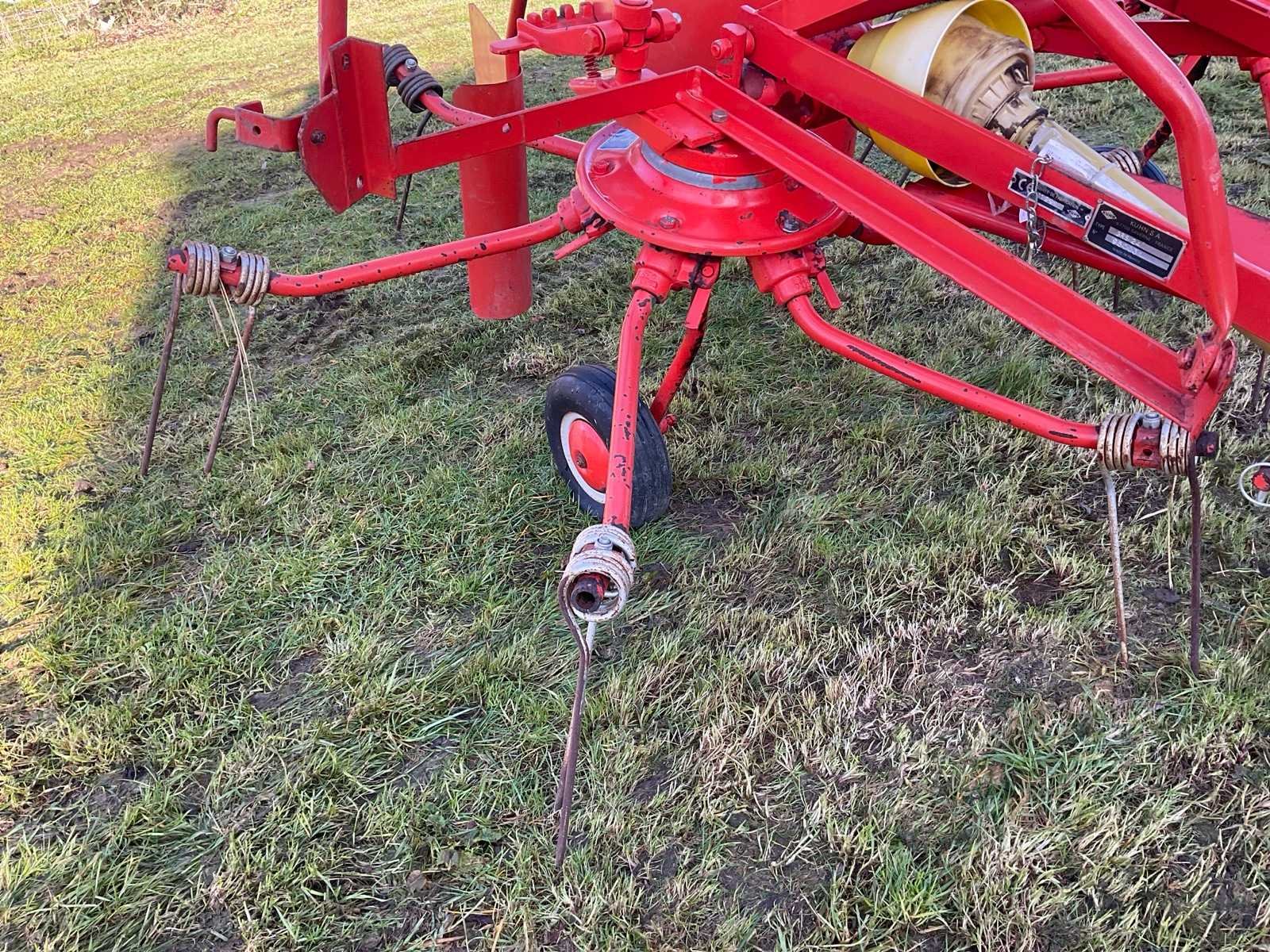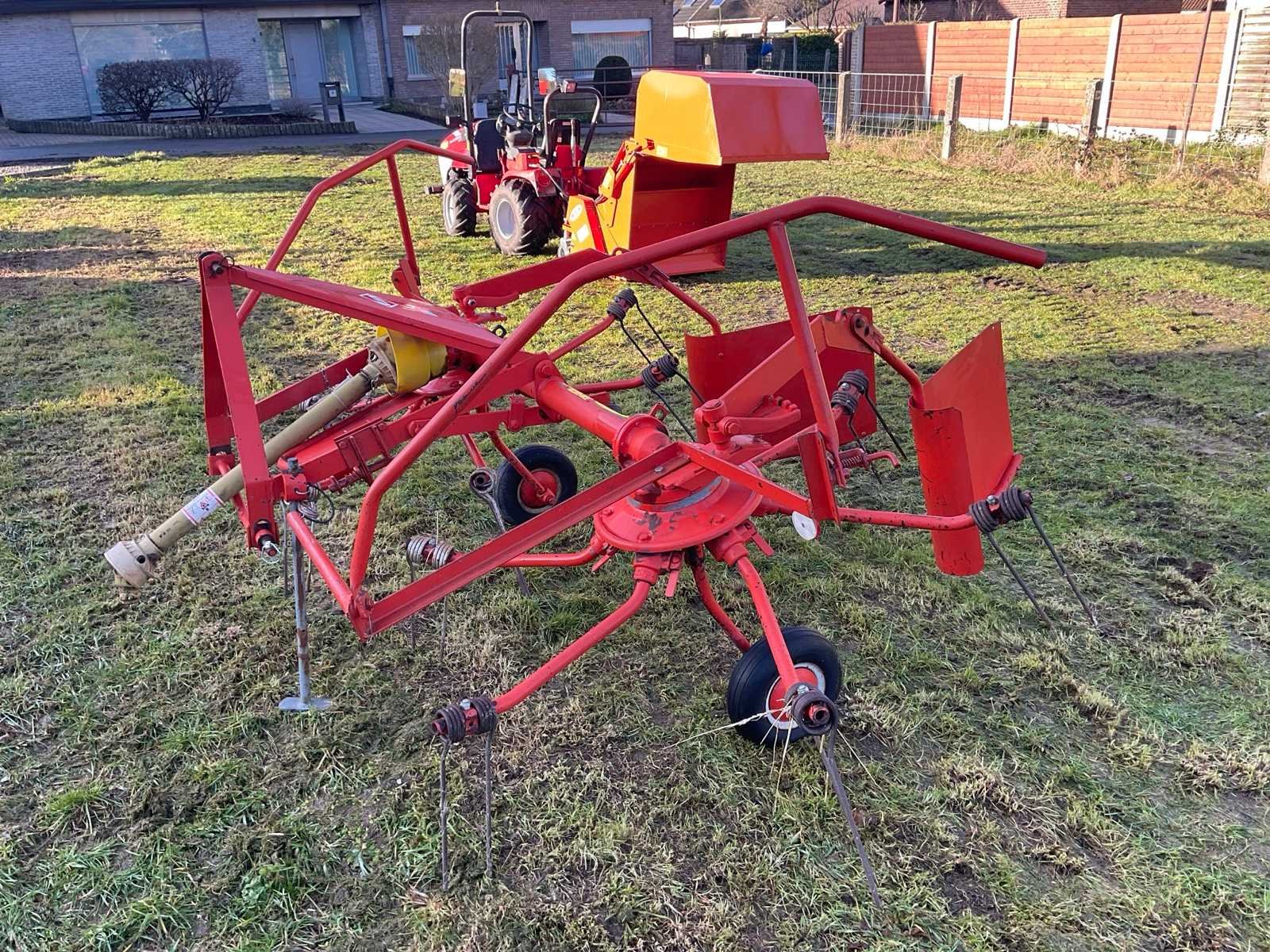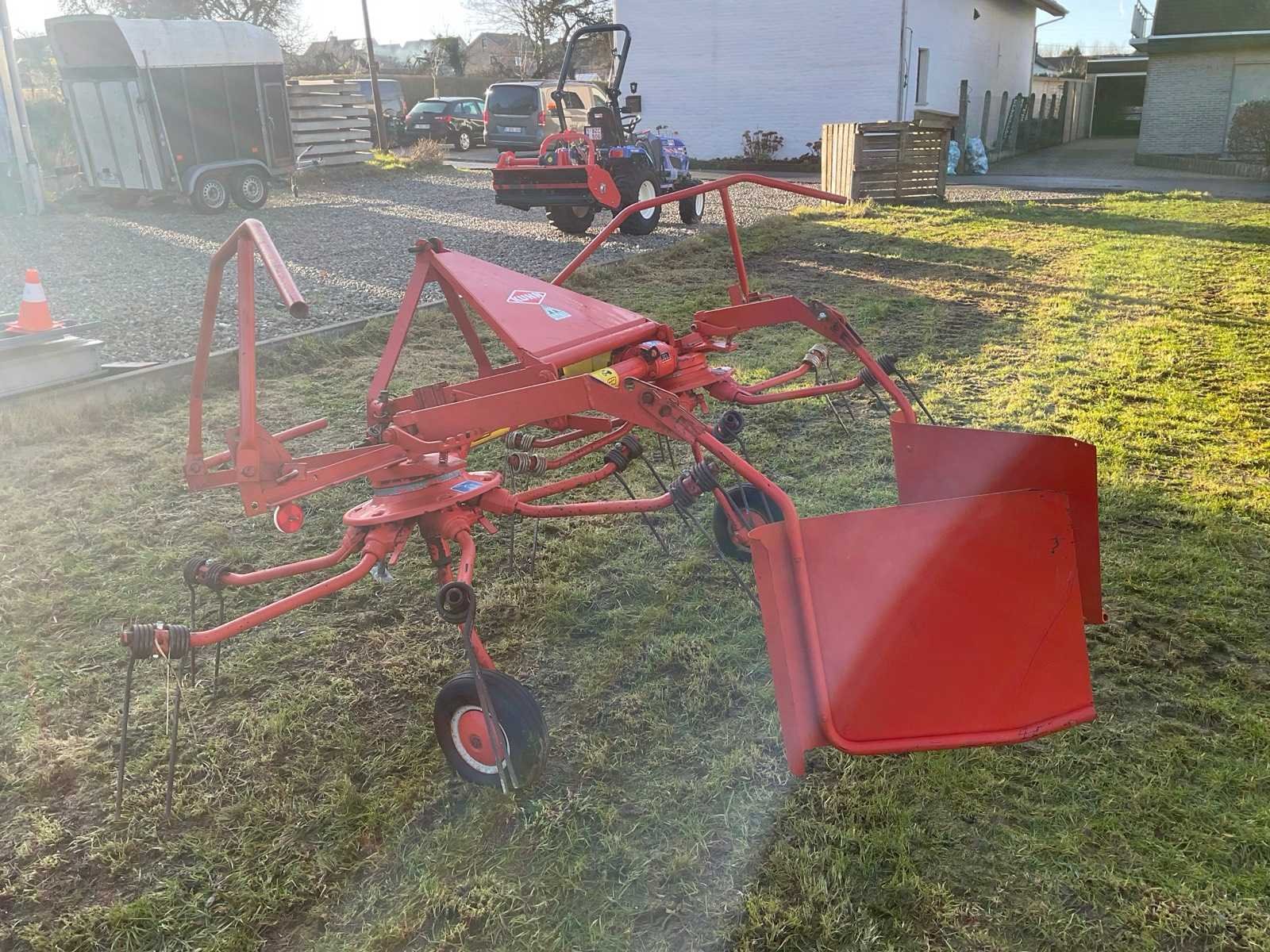 Aftakas aangedreven (540 tr./min) hooikeerder/zwadlegger voor landbouwtractor. Merk Kuhn-werkbreedte 2,85 m. Met PTO en breukbeveiliging. Toestel is oud maar spelingsvrij en heeft 25 jaar ongebruikt opgeborgen gestaan. Ideaal voor hobby boer. Gereedschapsvrije tandverstelling voor keren/zwadleggen, opklapbare zwadborden met verschillende breedtestanden. Veertanden volledig en onbeschadigd. Nee Merk: Kuhn Type: GRS 24 Bouwjaar: 1995 Serienummer: 950031 Werkbreedte: 2850mm