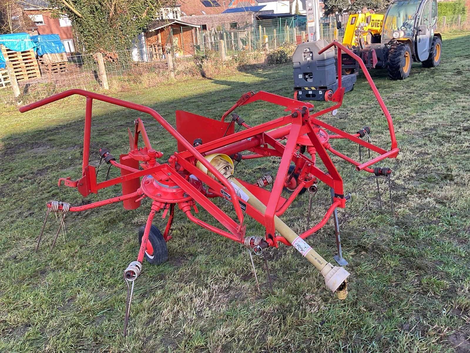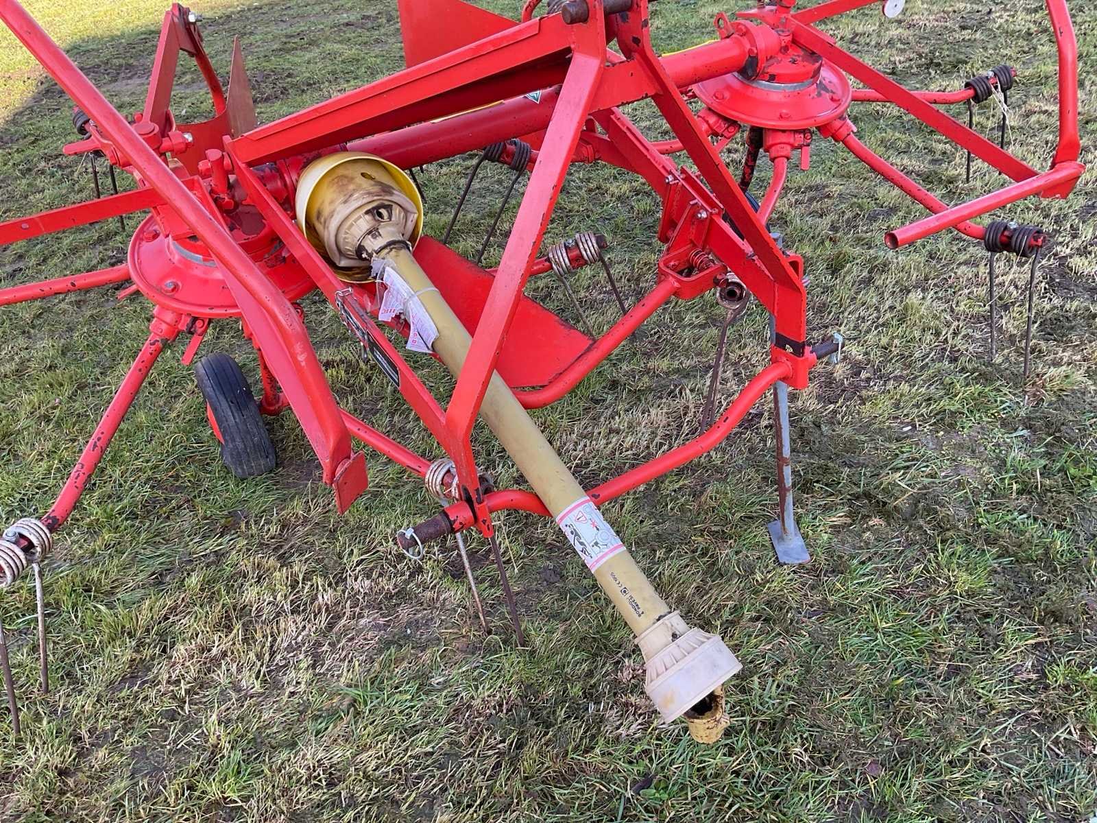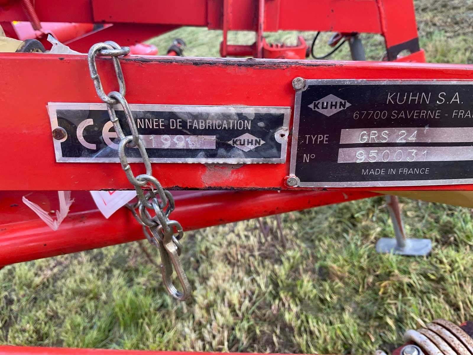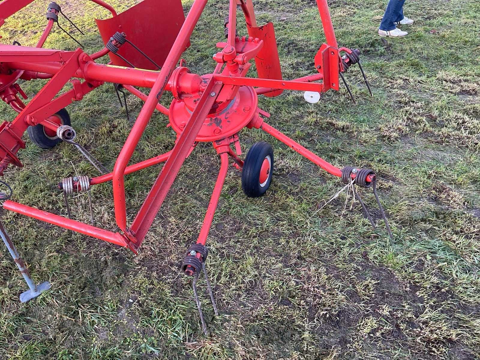 Aftakas aangedreven (540 tr./min) hooikeerder/zwadlegger voor landbouwtractor. Merk Kuhn-werkbreedte 2,85 m. Met PTO en breukbeveiliging. Toestel is oud maar spelingsvrij en heeft 25 jaar ongebruikt opgeborgen gestaan. Ideaal voor hobby boer. Gereedschapsvrije tandverstelling voor keren/zwadleggen, opklapbare zwadborden met verschillende breedtestanden. Veertanden volledig en onbeschadigd. Nee Merk: Kuhn Type: GRS 24 Bouwjaar: 1995 Serienummer: 950031 Werkbreedte: 2850mm