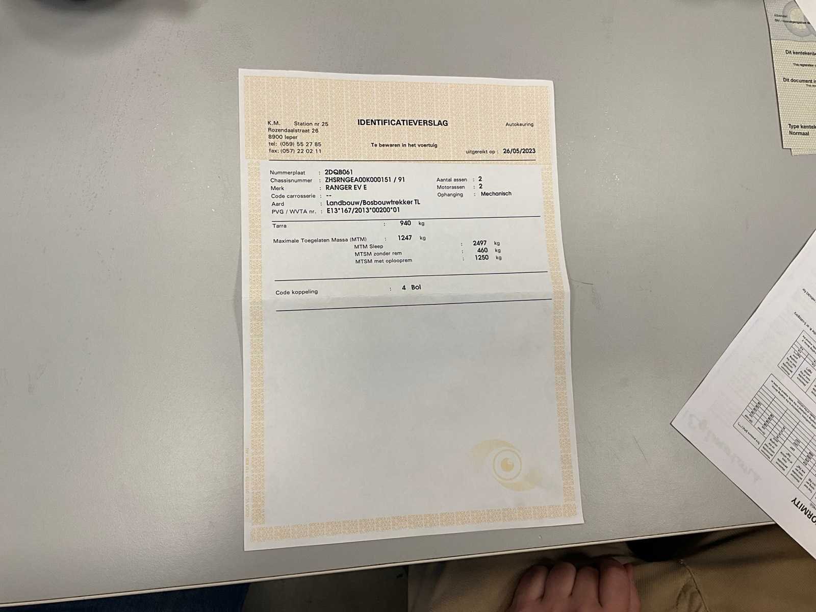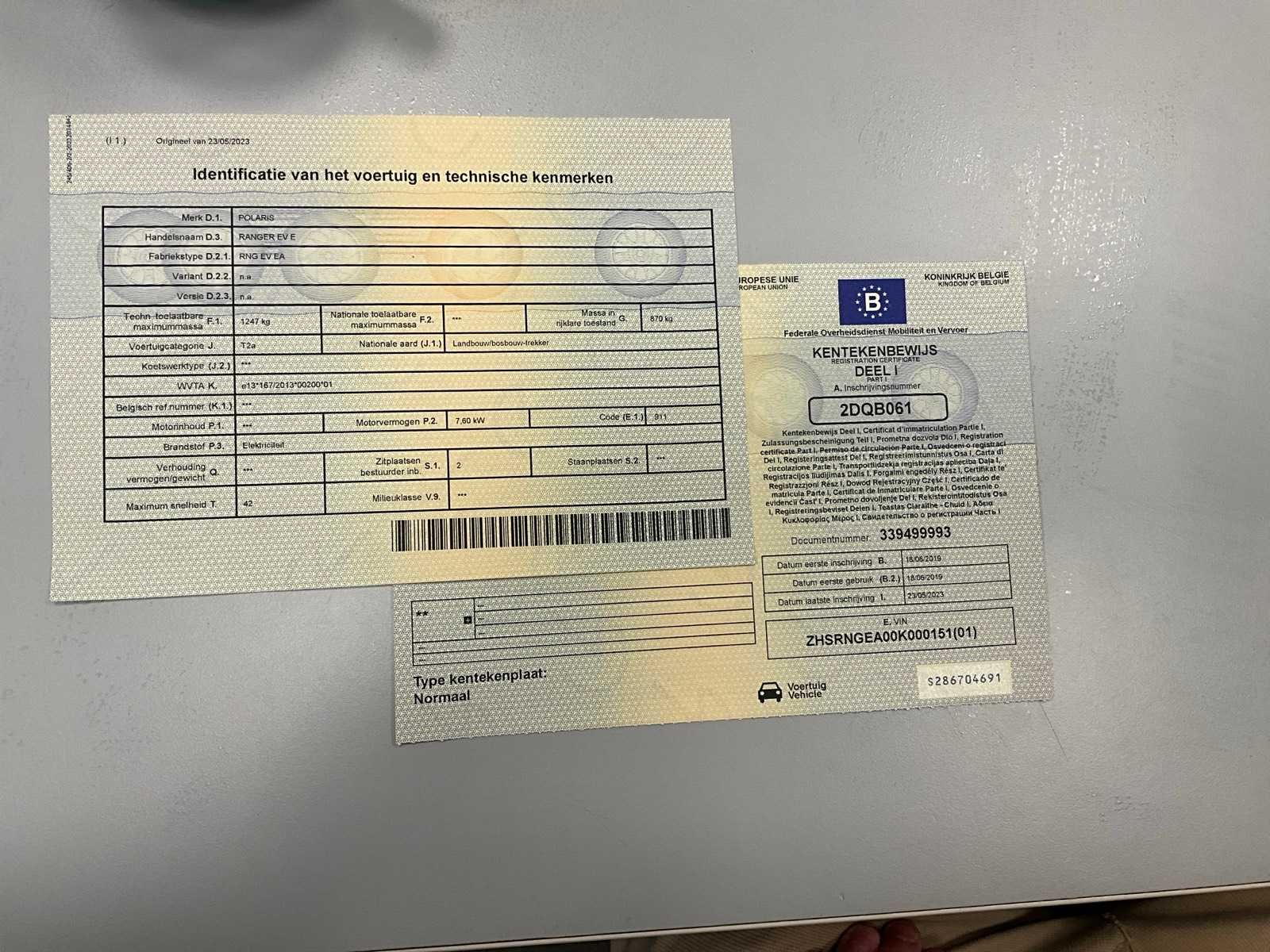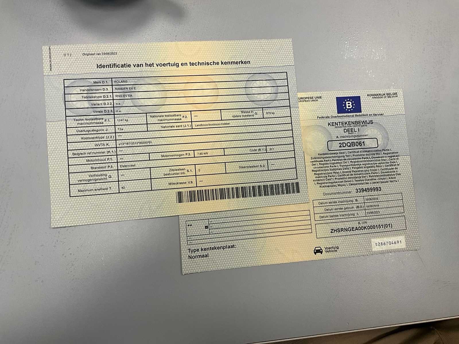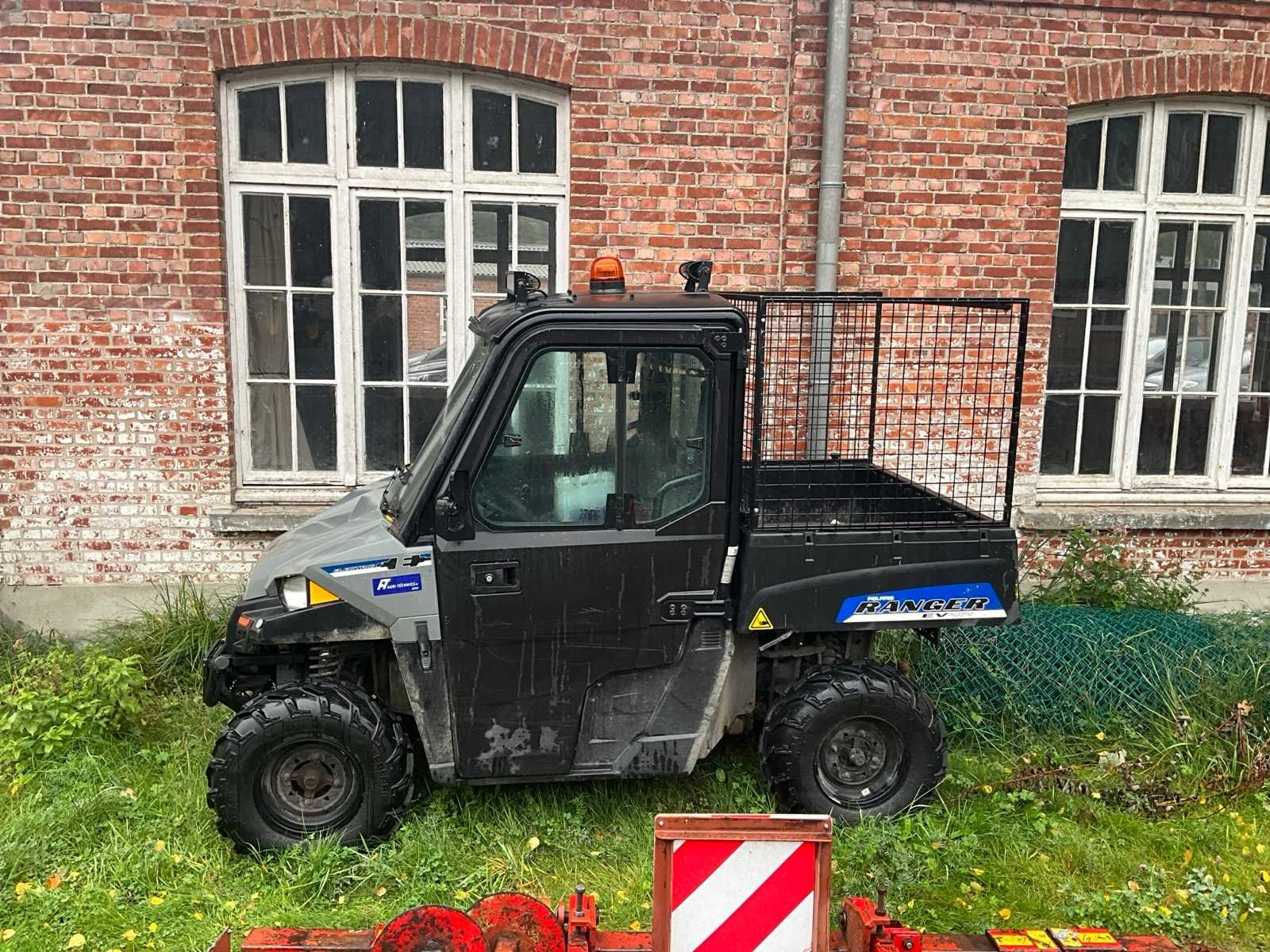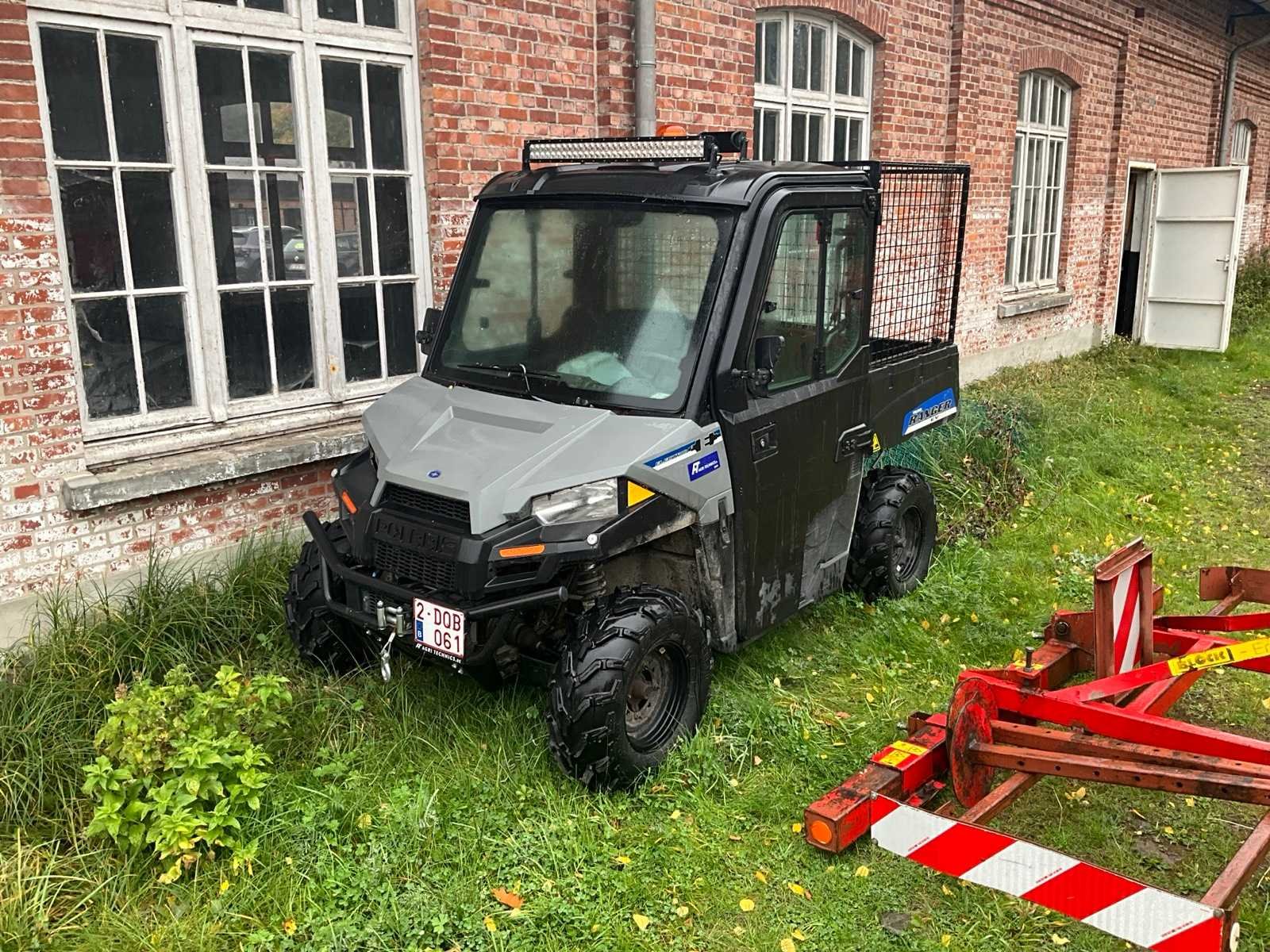 Utillity voertuig Polaris Ranger EV: tarra 870 kg, MTM: 1247 kg. Voorzien van rekken boven de laadbak, LED verlichting voor- en achteraan op het dak, zwaailicht, elektrische lier vooraan. Verder zijn de toebehoren voor de vloeistof van de batterij aan te vullen aanwezig. De kabel voor het laden is eveneens aanwezig. Alle documenten aanwezig Batterij defect. Start momenteel niet. No Merk: Polaris Type: Ranger EV Bouwjaar: 2019 Chassisnummer: ZHSRNGEA00K000151 Elektrisch: true Laadvermogen: 377kg Vermogen (kW): 7.6kW Gewicht: 870kg