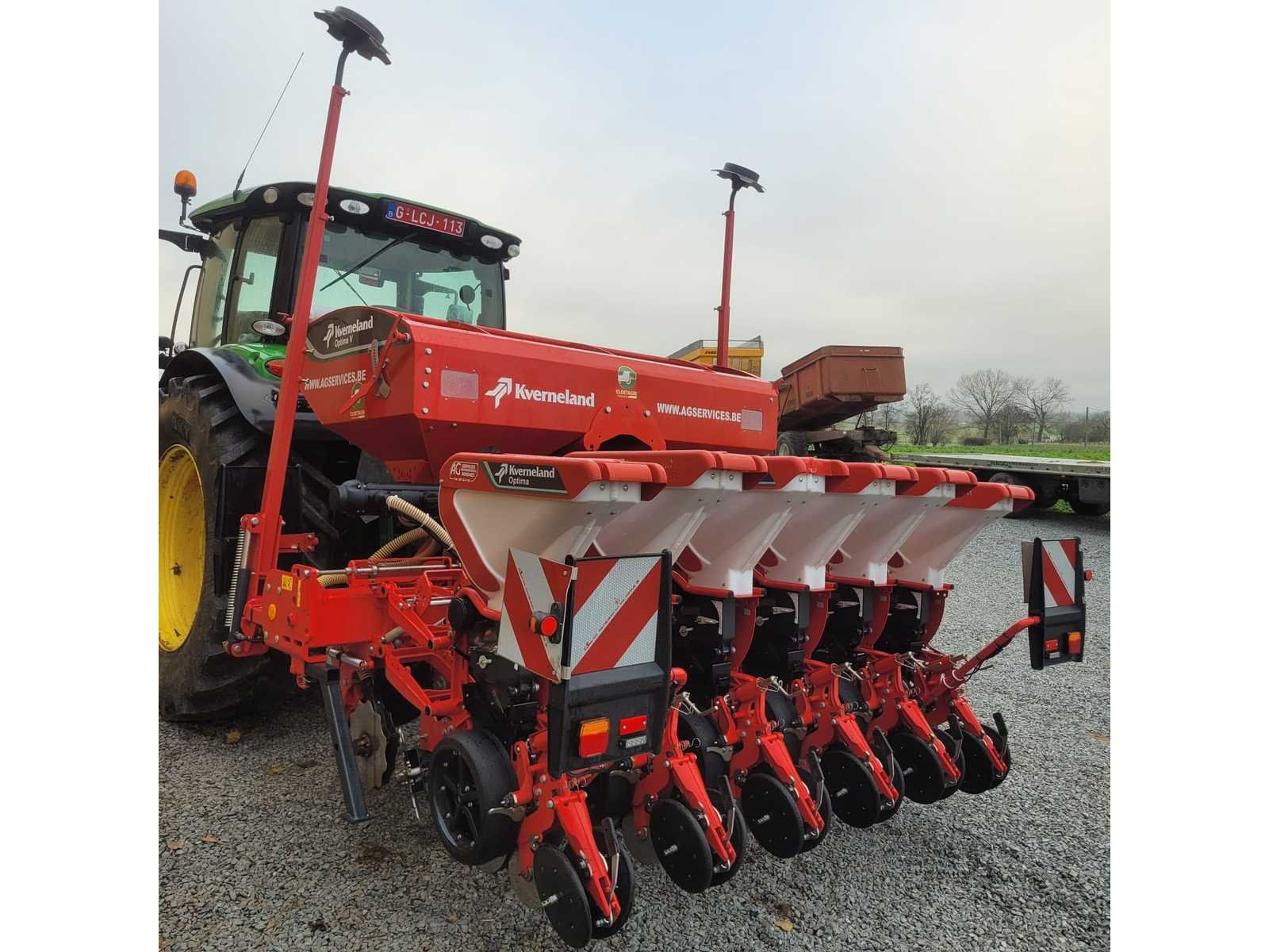 Kverneland Optima V Pneumatische Zaaimachine – 6 rijen – 2022 – 737 ha – ISOBUS De pneumatische enkelzaaimachine Kverneland Optima V uit 2022 verkeert in zeer goede algemene staat en heeft ongeveer 737 hectare gewerkt. Machine, uitgerust met een verstelbaar telescopisch frame, waardoor de rij tussen de rijen aangepast kan worden aan de crop. ISOBUS-model (verkocht zonder terminal). Technische kenmerken: Merk: Kverneland Model: Optima V Jaar: 2022 Aantal rijen: 6 Bebouwd gebied: ±.737 ha Systeem: Precisiepneumatic Standaard: ISOBUS (zonder terminal) Hitch: 3 punten Verstelbaar telescopisch frame Uitrusting: Sectie gesneden op zaai-units Gecentraliseerde pneumatische dosering Lokale meststoftoepassing op de zaailijn Vuilverwijderaar aan de voorkant van de elementen Hydraulische plotters Hydraulische stuwkracht op het frame (geschikt voor niet-tillen) Openingsschijven Dieptemeterwielen Achterste sluitende wielen/sterren Wegborden Status: Zeer goede algehele conditie Lage aantal hectare Werkapparaten in goede staat Schone en kant-en-klare machine Non Merk: Kverneland Type: Optima V Bouwjaar: 2022 Serienummer: ACNPx16516