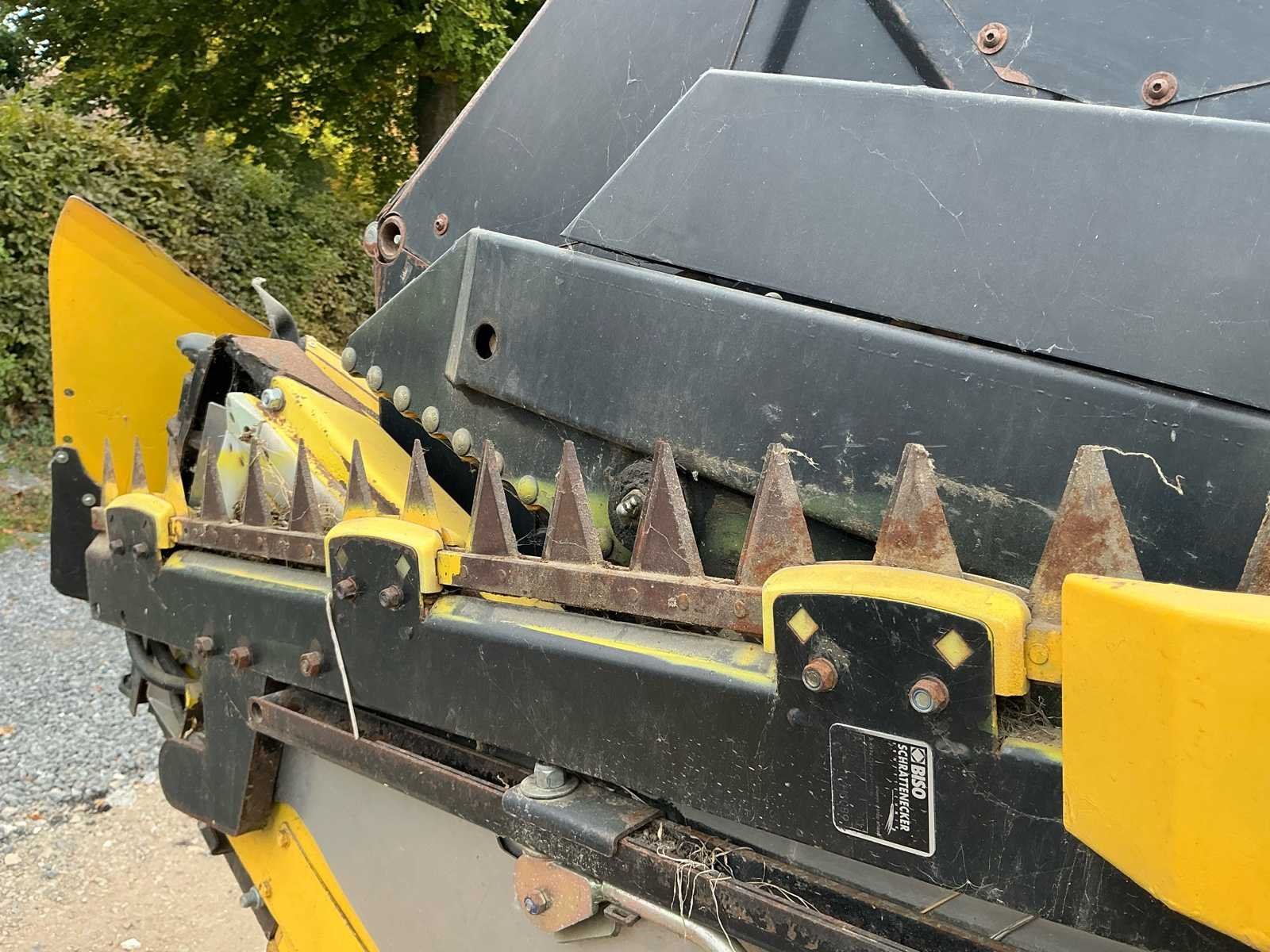De Biso Crop Ranger VX 750 is een maaibord van 7,5 meter breed, gebouwd voor graanoogst. De uitrusting is compatibel met een maaidorser van het merk New Holland, model CX en CR. Het bord heeft een variabele snijbalk die tot 70 cm naar voren of achteren kan worden verplaatst, wat efficiënt werkt bij verschillende gewassen. Het kan snel worden omgebouwd voor koolzaad door zijkniven en verdelers. De maaidorser komt met een transportwagen. Robuust gebouwd, geschikt voor gebruik met diverse maaidorsers. De messen zijn onlangs gereviseerd. Non Merk: Biso Type: VX 750 Bouwjaar: 2011 Serienummer: 211BH1573 Spoorbreedte: 7500mm