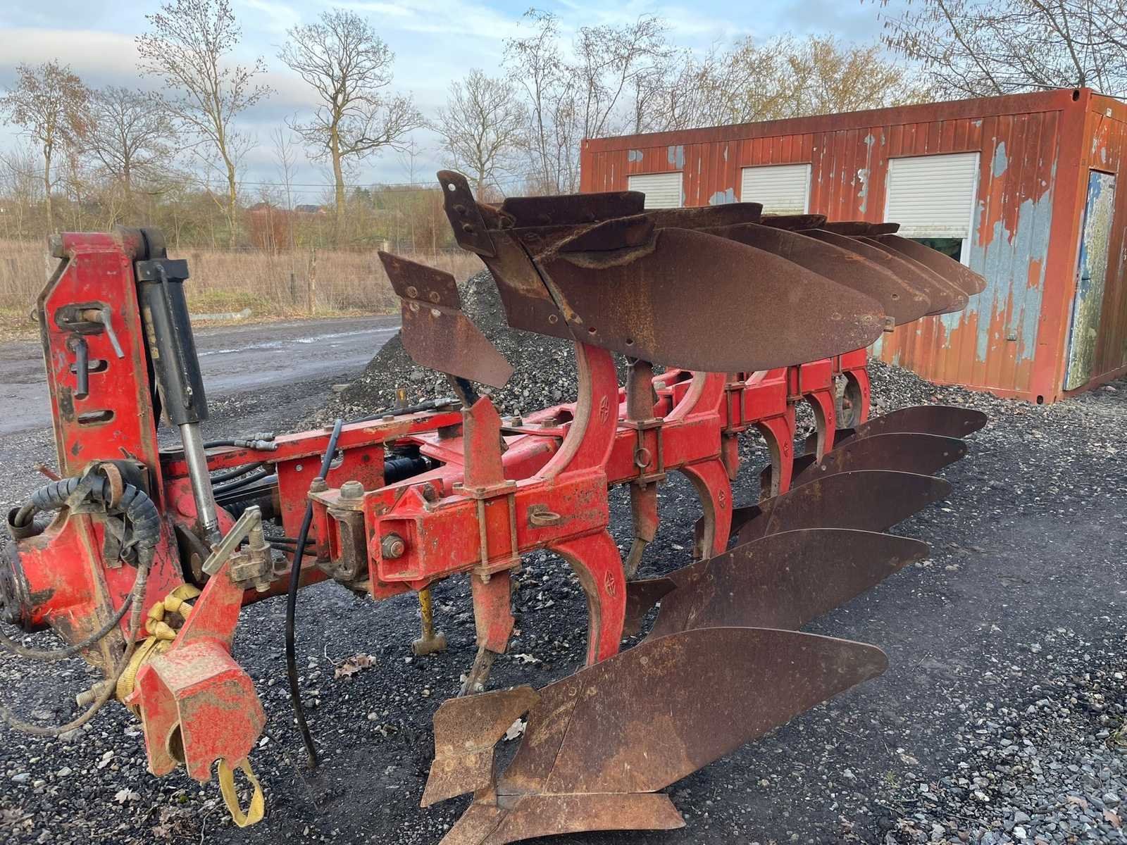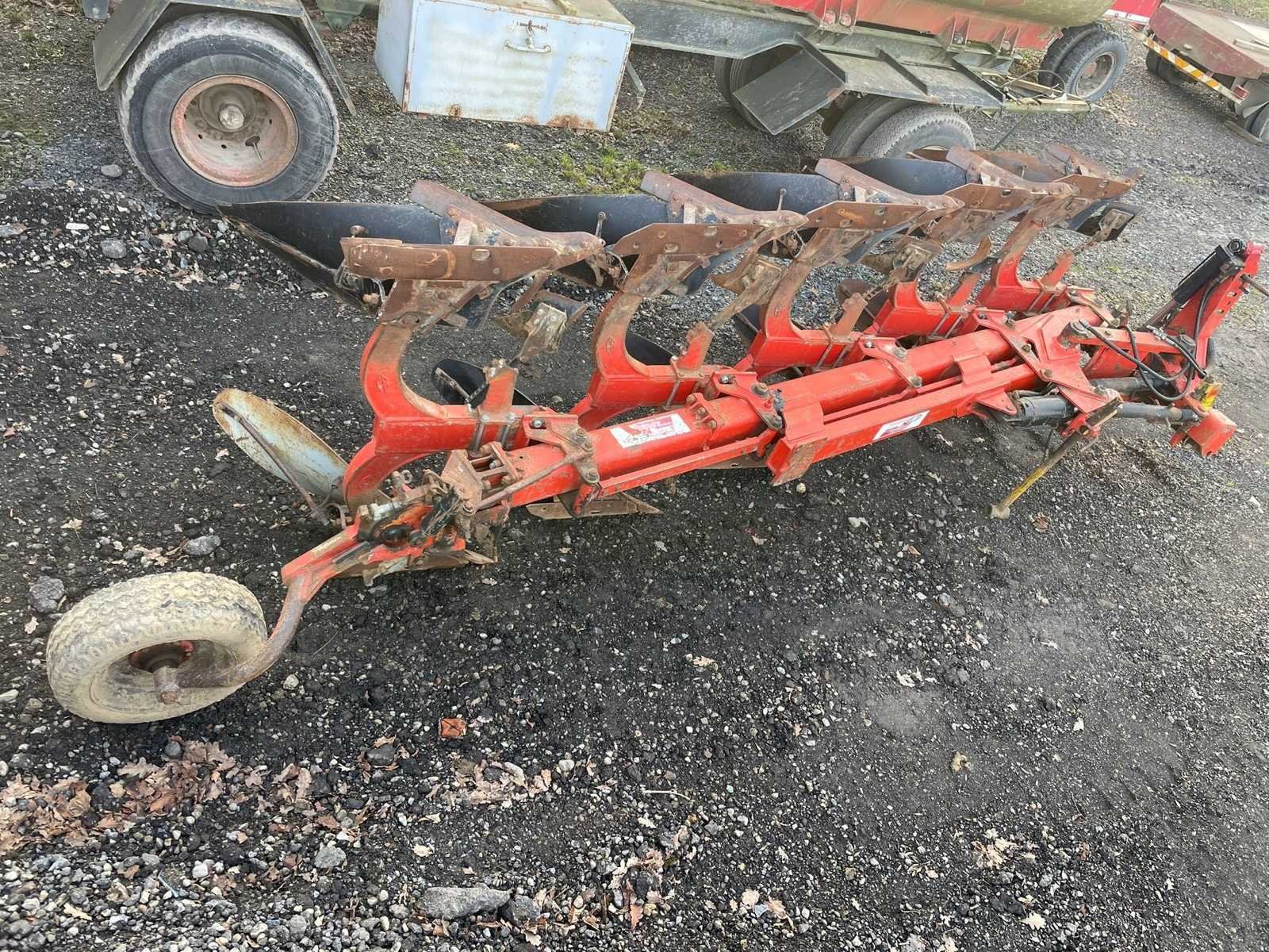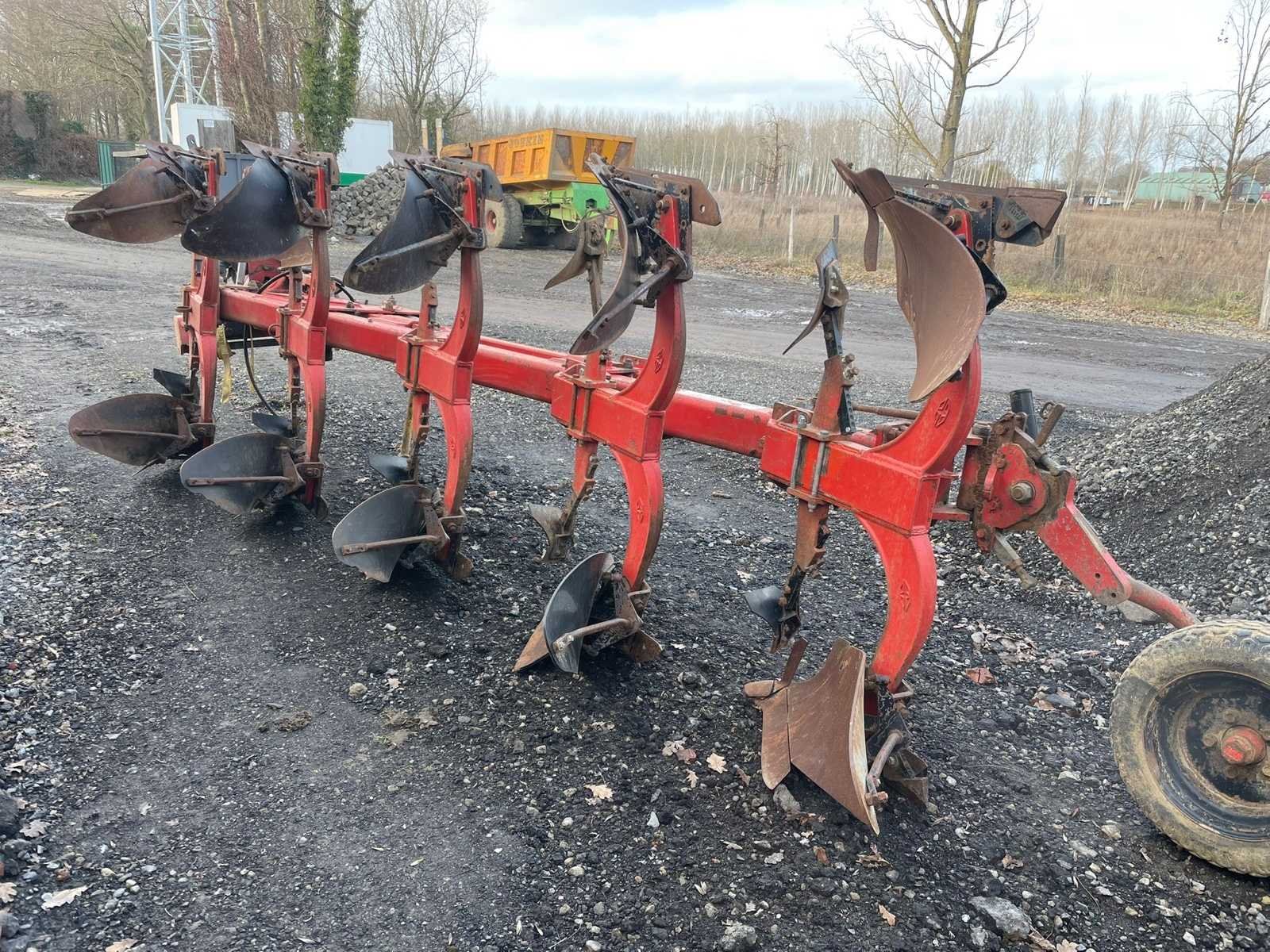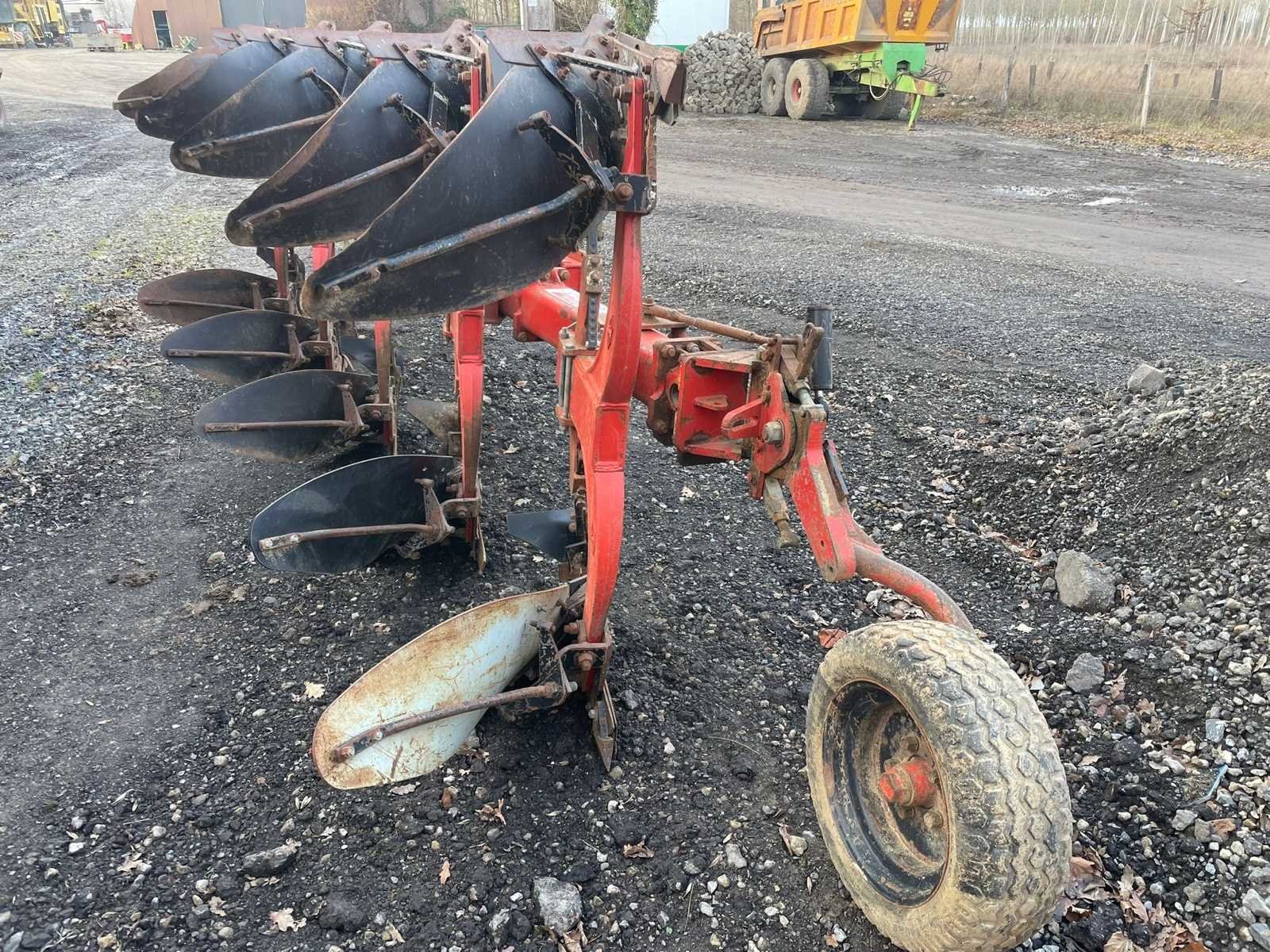 De ploeg heeft gebruikersschade maar is nog functioneel. Caractéristiques: -5 fers -réglage largeur « varilarge » -roue de jauge -sécurité à pierre à boulons No Merk: Grégoire & Besson Type: RWB7 Bouwjaar: 1997