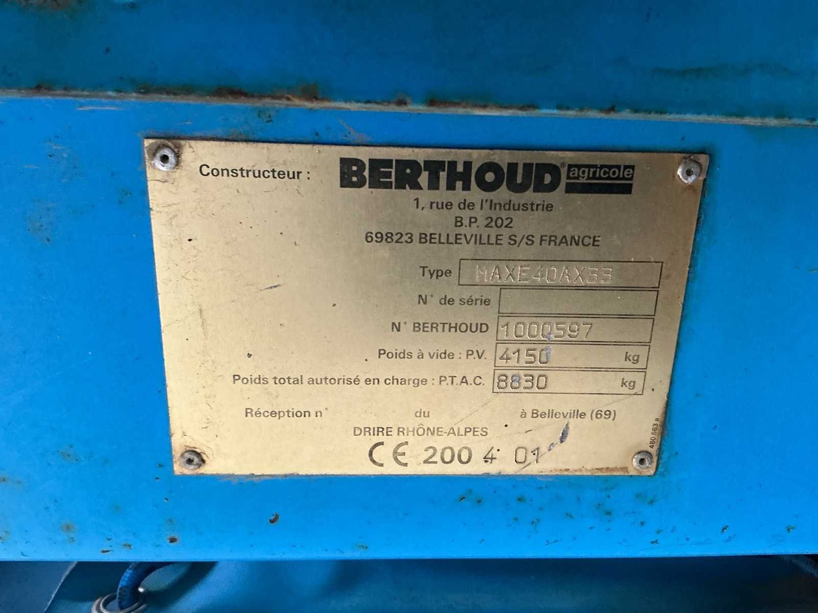 De veldspuit bevindt zich in goede staat. Kan aangesloten worden op een computer. Informatie: • 4.000 liter tankinhoud). • Type machine: getrokken veldspuit • Aandrijving: via PTO (aftakas) • Besturing: hydraulisch inklapbare boom No Merk: Berthoud Type: MAXE40AX53 Veldspuit Bouwjaar: 2004 Serienummer: 1000597 Spuitboombreedte: 33m Tankinhoud: 4200l Boordcomputer: true Schoonwatertank: true