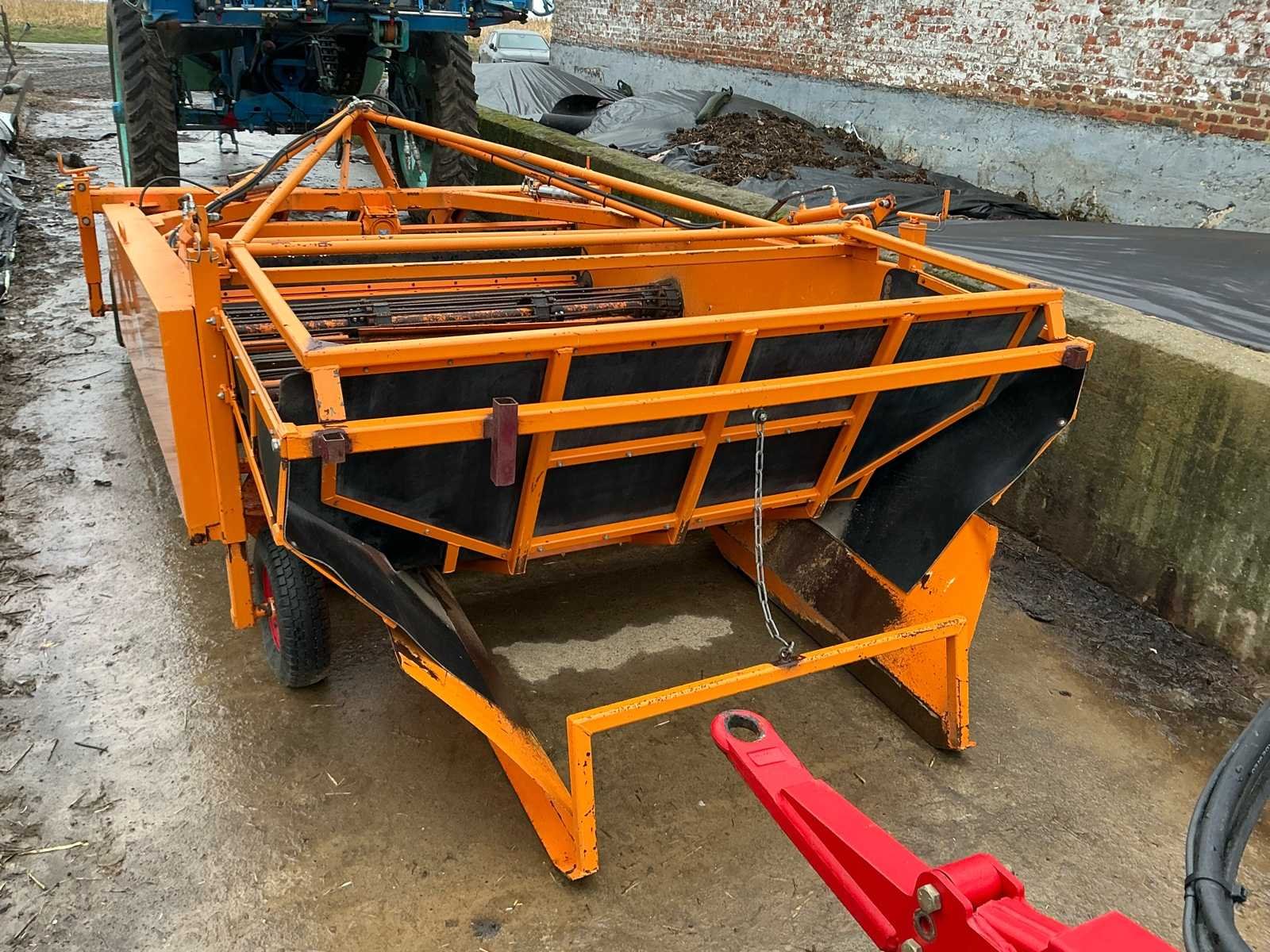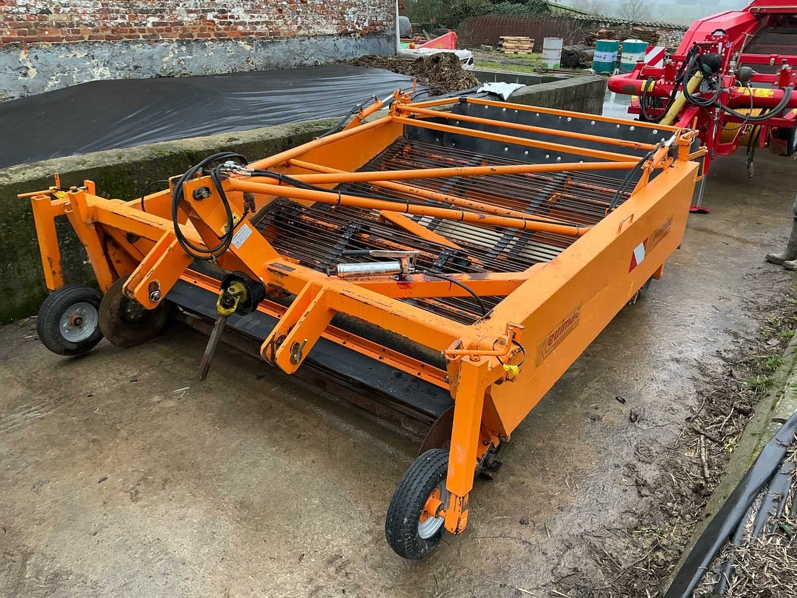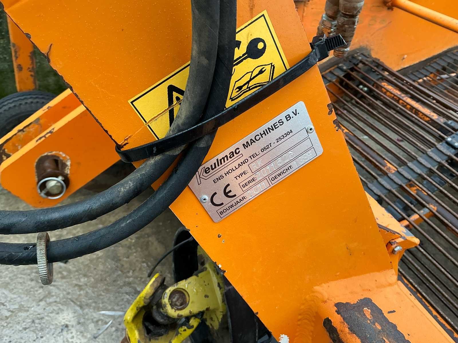 Keulmac kistenkantelaar type RK 165 bevindt zich in goede staat met gebruikerssporen. Geschikt voor het gecontroleerd kantelen en ledigen van oogstkisten richting transportband of verwerkingslijn. Gebruikte staat met normale gebruikssporen. No Merk: Keulmac Type: RK 165 Bouwjaar: 2011 Serienummer: 2011626 Eigen gewicht: 1385kg