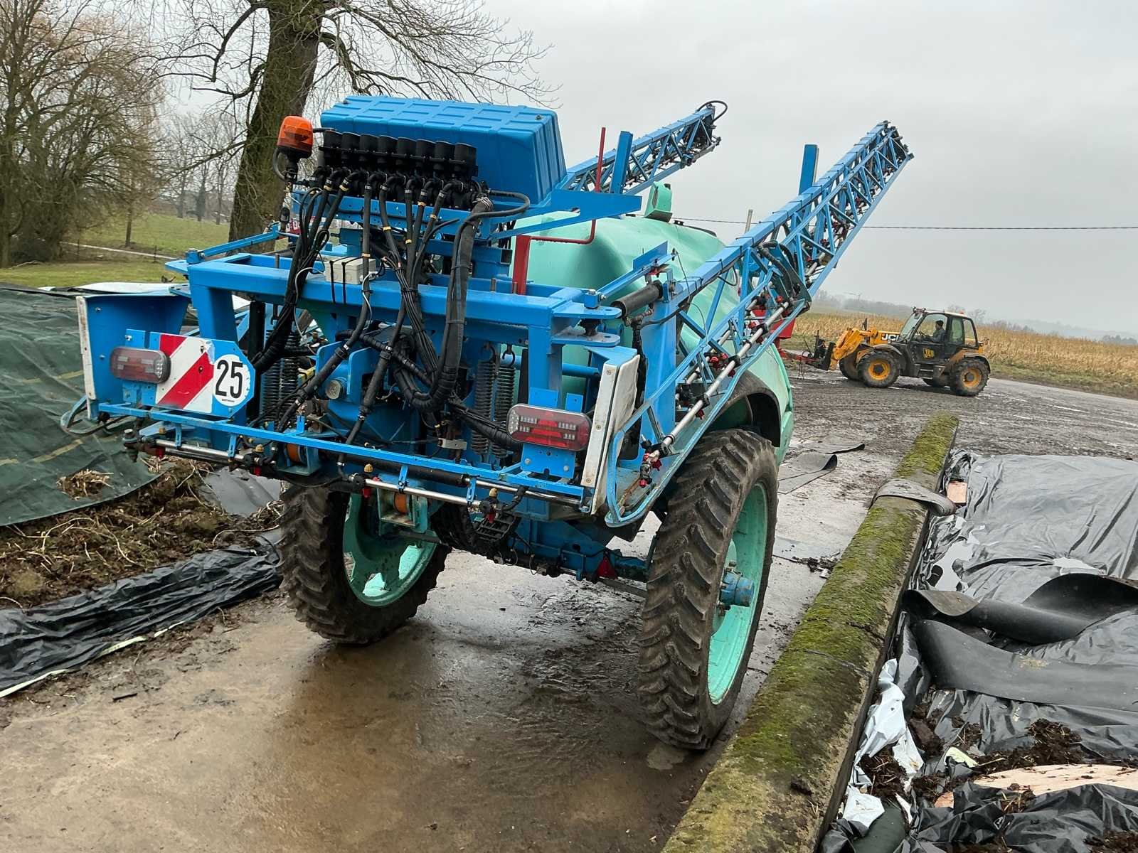 De veldspuit bevindt zich in goede staat met gebruikersstaat. Getrokken Berthoud Enor veldspuit met kunststof tank en hydraulisch inklapbare spuitbomen. Aangedreven via aftakas, geschikt voor het spuiten van gewasbeschermingsmiddelen. No Merk: Berthoud Type: Enor