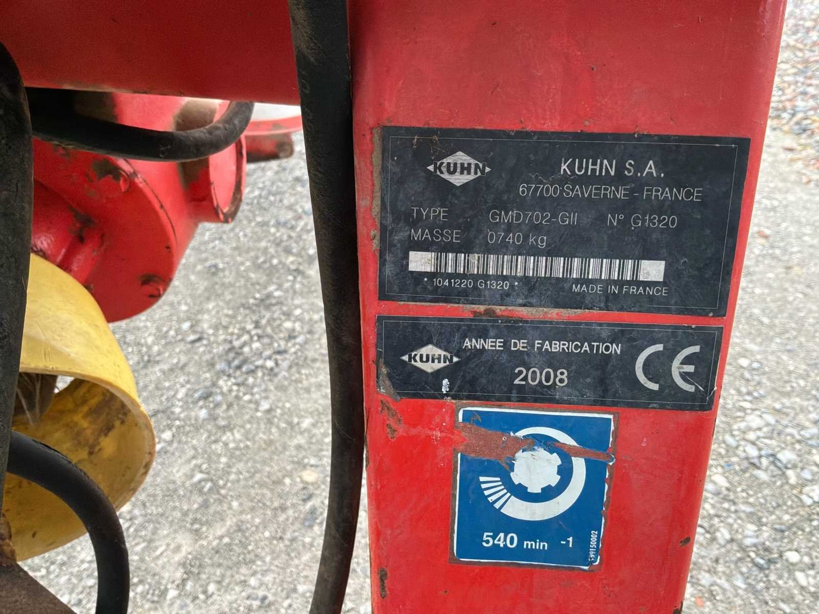 No Merk: Kuhn Faucheuse à disques portés Type: GMD702-G2 Bouwjaar: 2008 Serienummer: 1041220 G 1320 Eigen gewicht: 740kg Totale afmeting L: 2800mm
