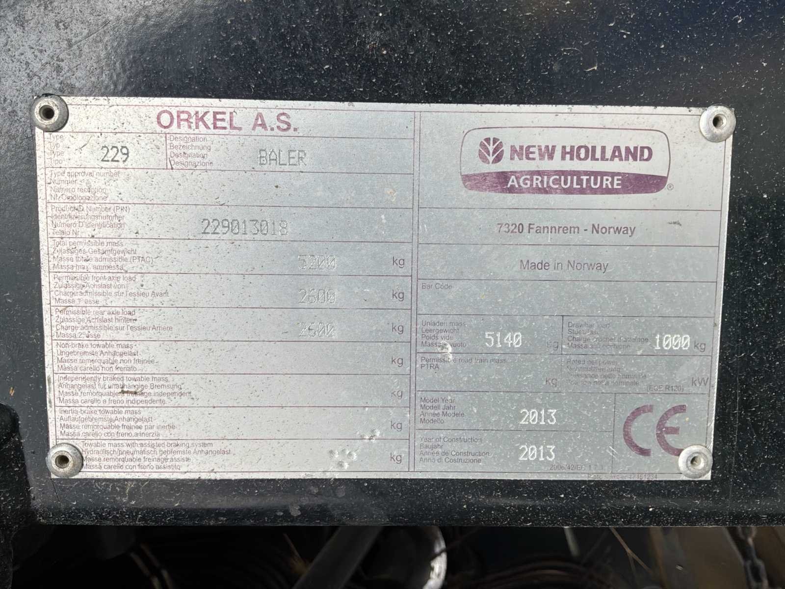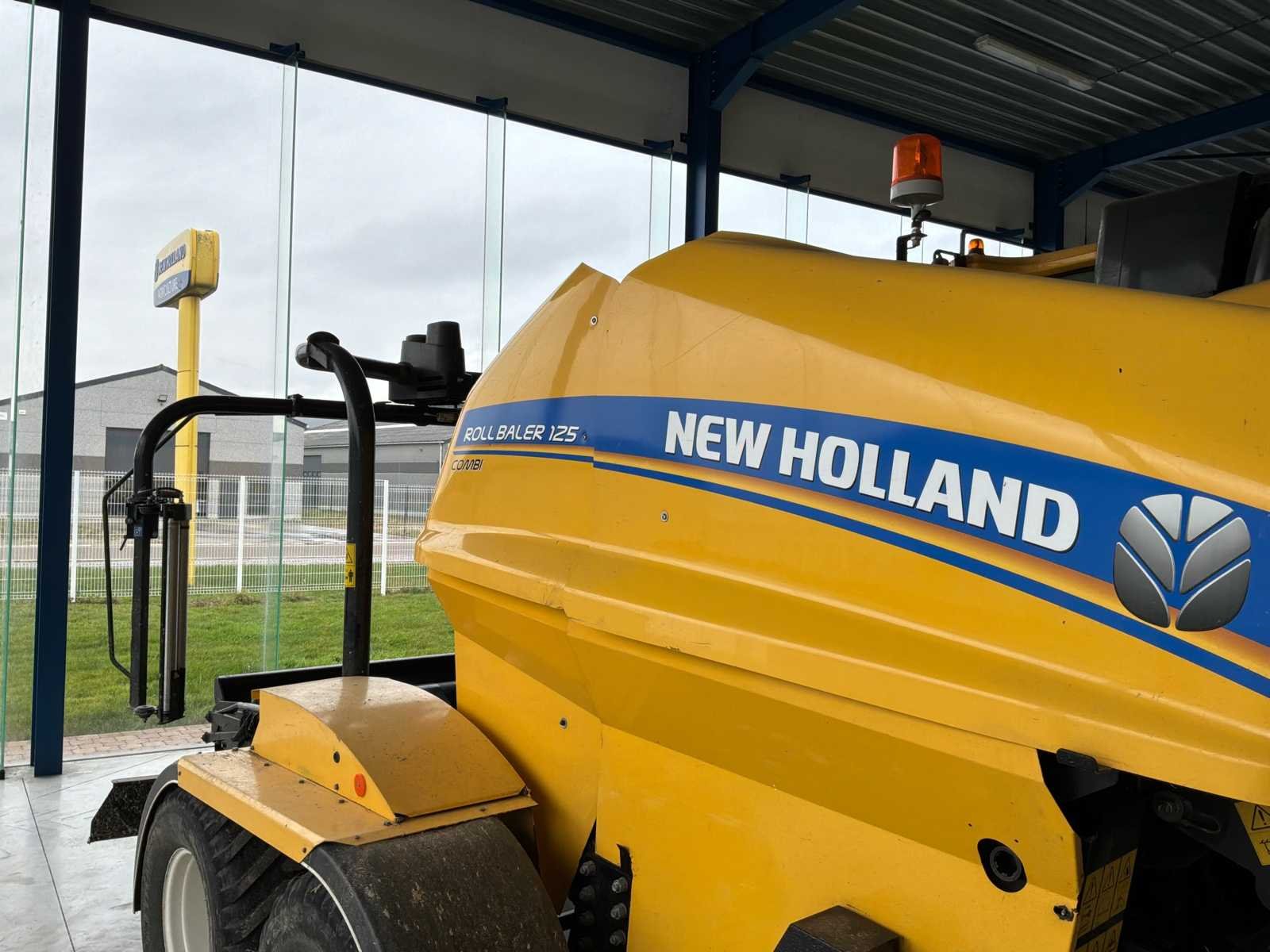 Isobus-socket. Belastingdetectie. Gecentraliseerde smering. No Merk: New Holland Roll baler 125 Type: 229 Bouwjaar: 2013 Serienummer: 229013018 Afgelezen aantal balen: 11000 Eigen gewicht: 5140kg