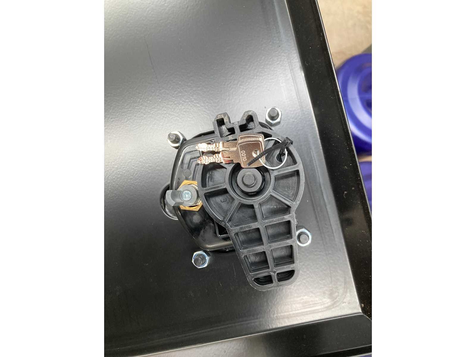 L 2400mm x B 800mm x H 510mm Zwart gepoederlakt Met sleutels Lichte krassen op de klep Nee Merk: Bawer