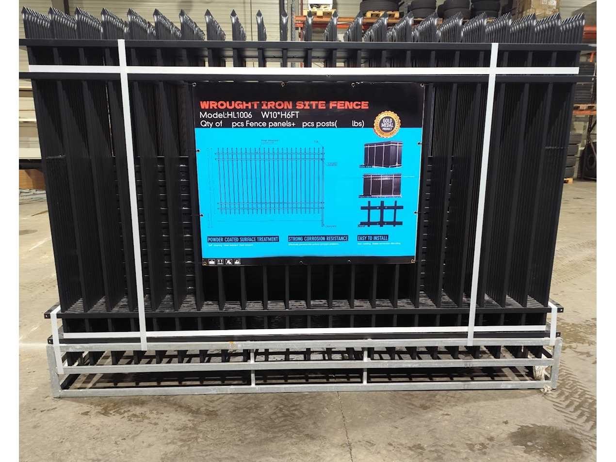 60lm nieuwe sieromheining incl palen, hoogte afsluiting 1.9m en paneel is 3m breed. Nee Kleur: zwart Gewicht: 1000kg Lengte: 300cm Breedte: 80cm Hoogte: 210cm Materiaal: aluminium Leveringsvoorwaarden: Geladen op vrachtwagen
