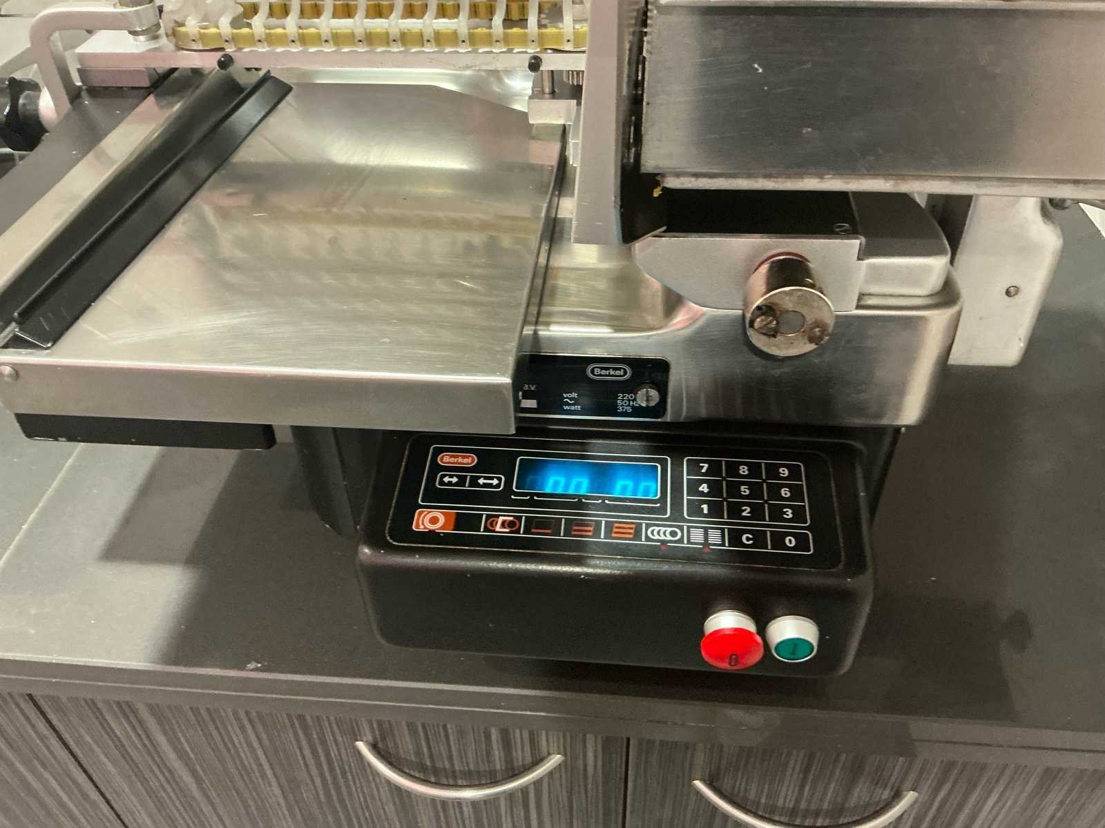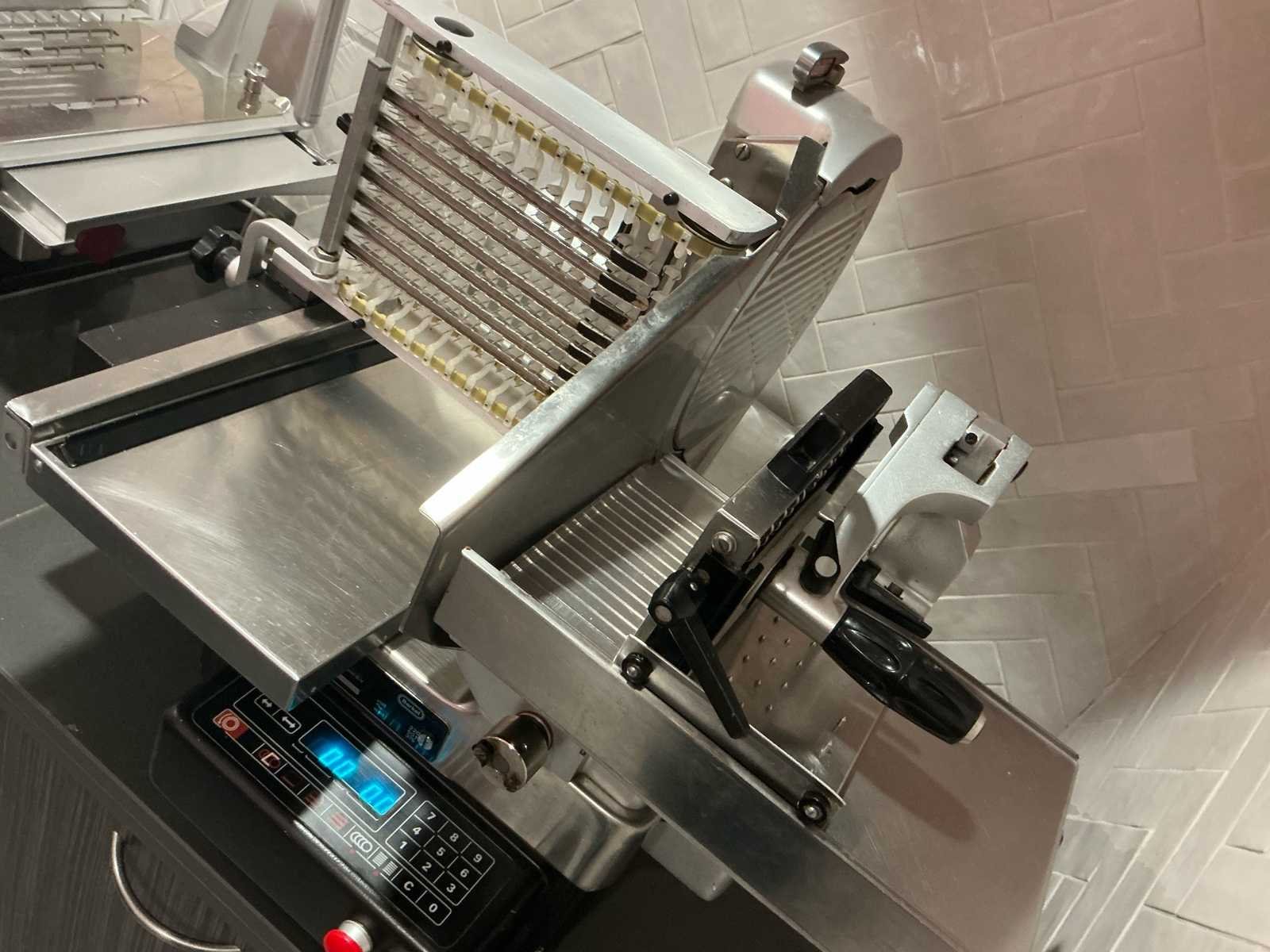 Verkoop wegens stopzetting handelszaak. Zeer goed onderhouden en in perfect werkende staat. professionele elektrische vlees/charcuterie snijmachine No Merk: Berkel Type: SE300 Bouwjaar: 2021 Serienummer: 2937 Aansluiting: 230V Eigen gewicht: 29kg Totale afmeting L: 750mm Totale afmeting Breedte: 620mm Totale afmeting Hoogte: 630mm