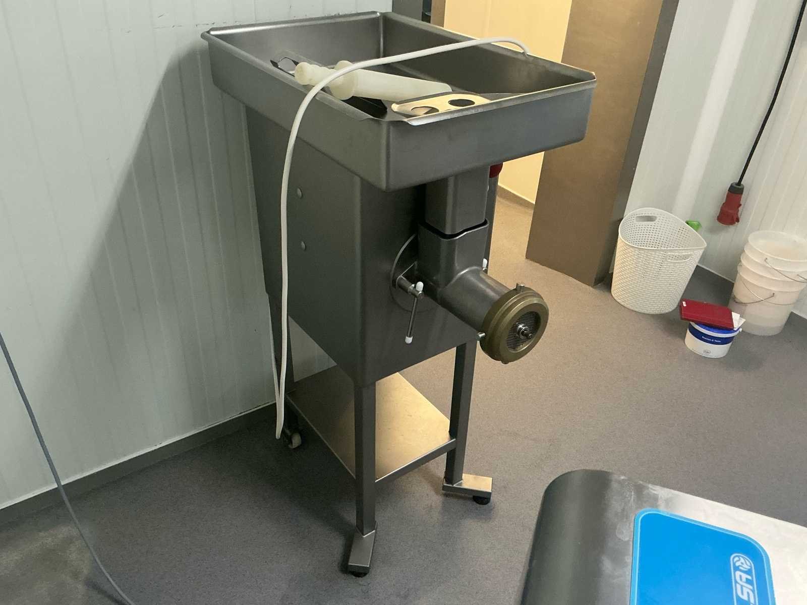 Verkoop wegens stopzetting handelszaak. Perfect onderhouden en werkende gehaktmolen. Deze Kolbe SW100 is een professionele vleesmolen voor toepassingen zoals: • slagerijen • cateraars • food‑processing bedrijven Hij is ontworpen voor grote hoeveelheden vlees efficiënt te malen met hoge capaciteit en is makkelijk schoon te maken.  No Merk: Kobe Type: SW100 Bouwjaar: 2014 Serienummer: 686386 Aansluiting: 230V Eigen gewicht: 110kg Totale afmeting L: 900mm Totale afmeting Breedte: 545mm Totale afmeting Hoogte: 115mm
