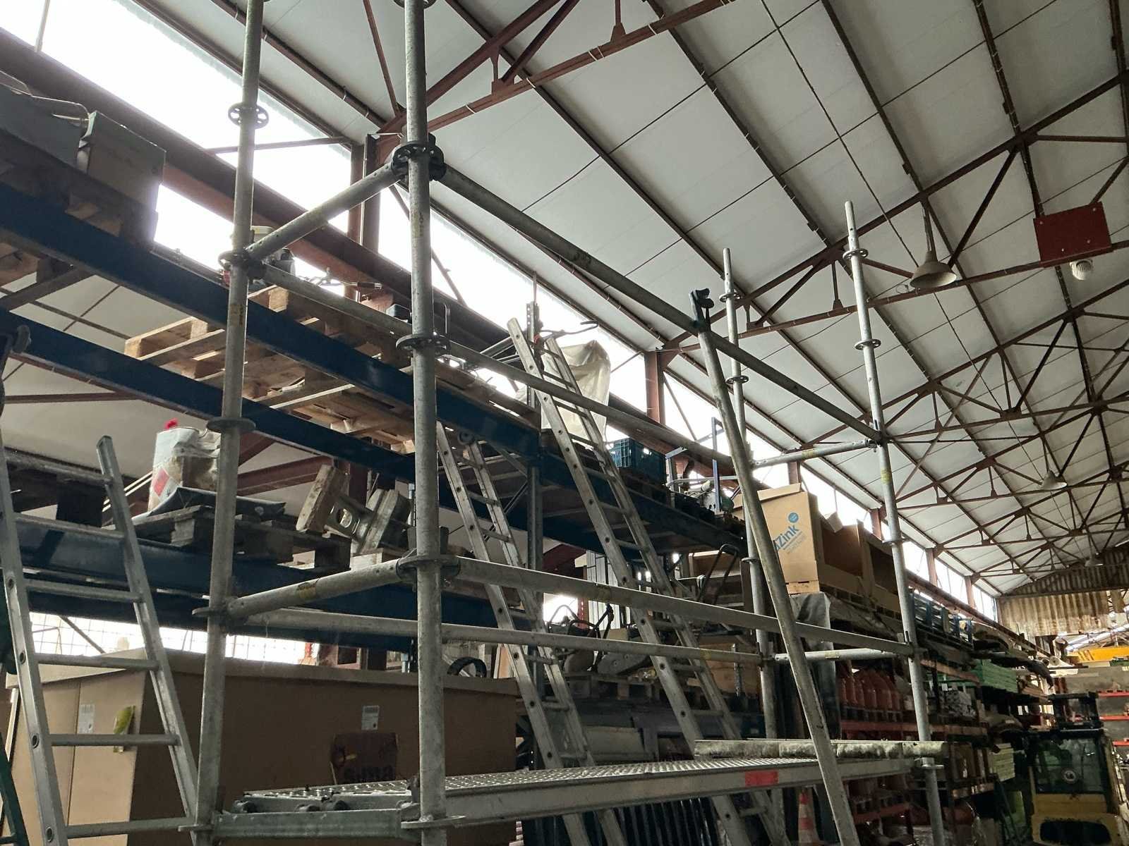 De dakwerkings stelling bevindt zich in goede staat. Komt zonder ladders No Type: Steigers voor dakwerken Gegalvaniseerd: true Opbouwdeel afmeting l: 800mm Opbouwdeel afmeting b: 3100mm
