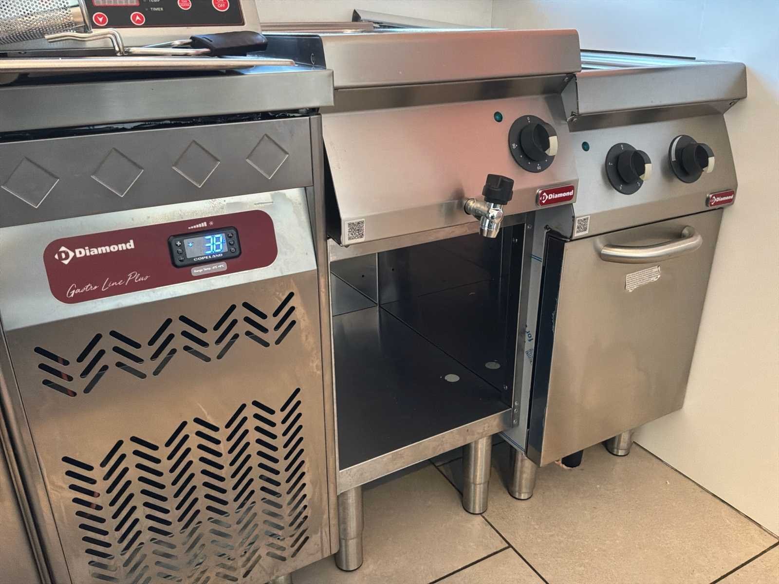 Nooit gebruikt - 3 maanden geleden gekocht Model A7BMEDB000 Geleverd met een basis (verstelbare voeten) No Merk: Diamond Type: Top 400 mm Totale afmeting L: 70cm Totale afmeting Breedte: 40cm Totale afmeting Hoogte: 100cm Materiaal: Roestvrij staal Eigen gewicht: 20kg Mobiel: true Rvs: true Regelbare thermostaat: true Serienummer: 5212139208 Aansluiting: 220V