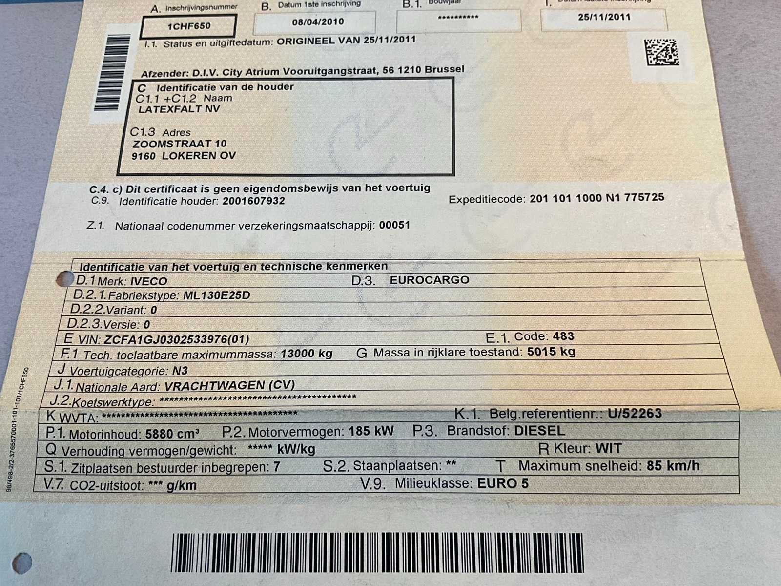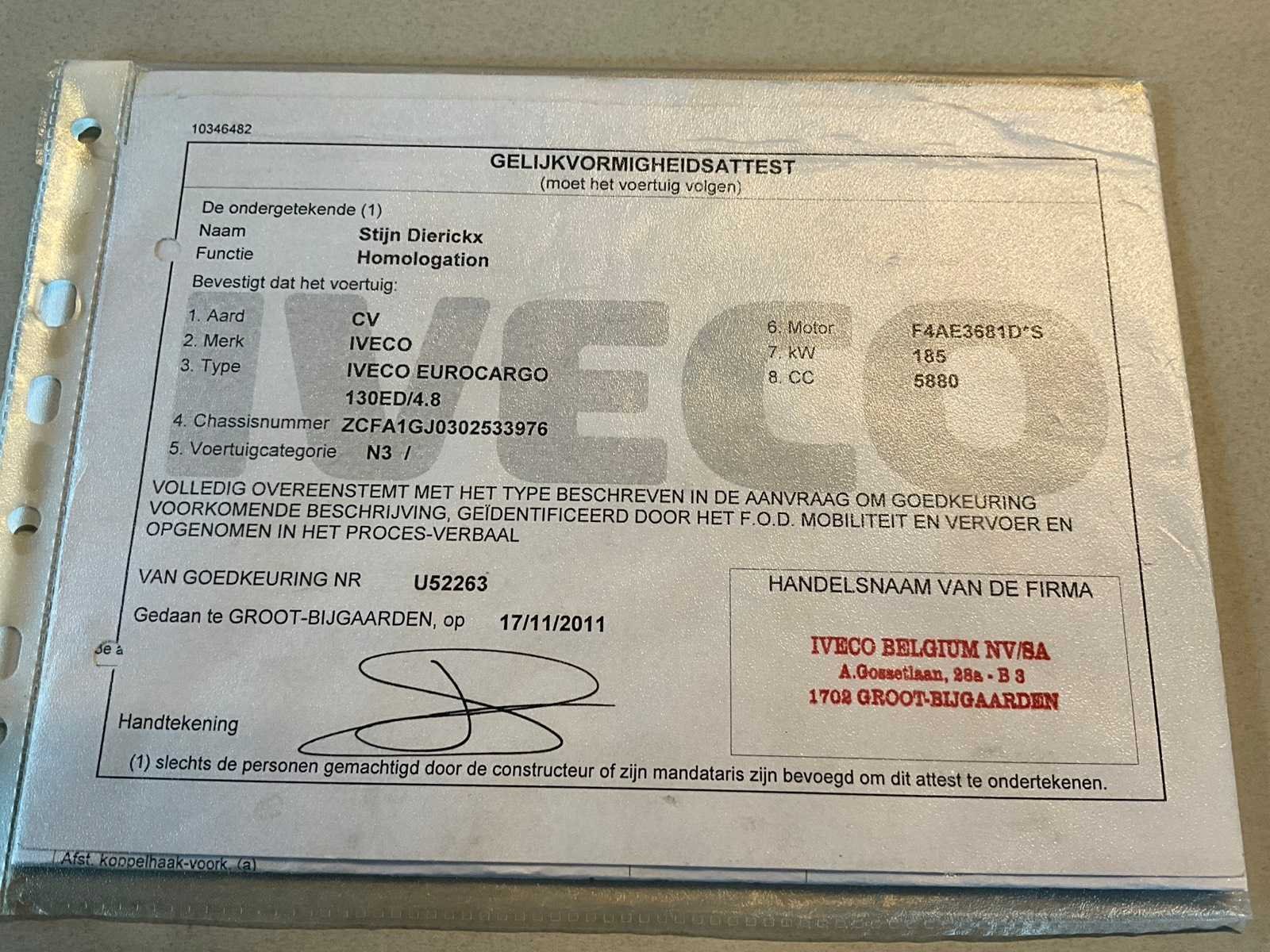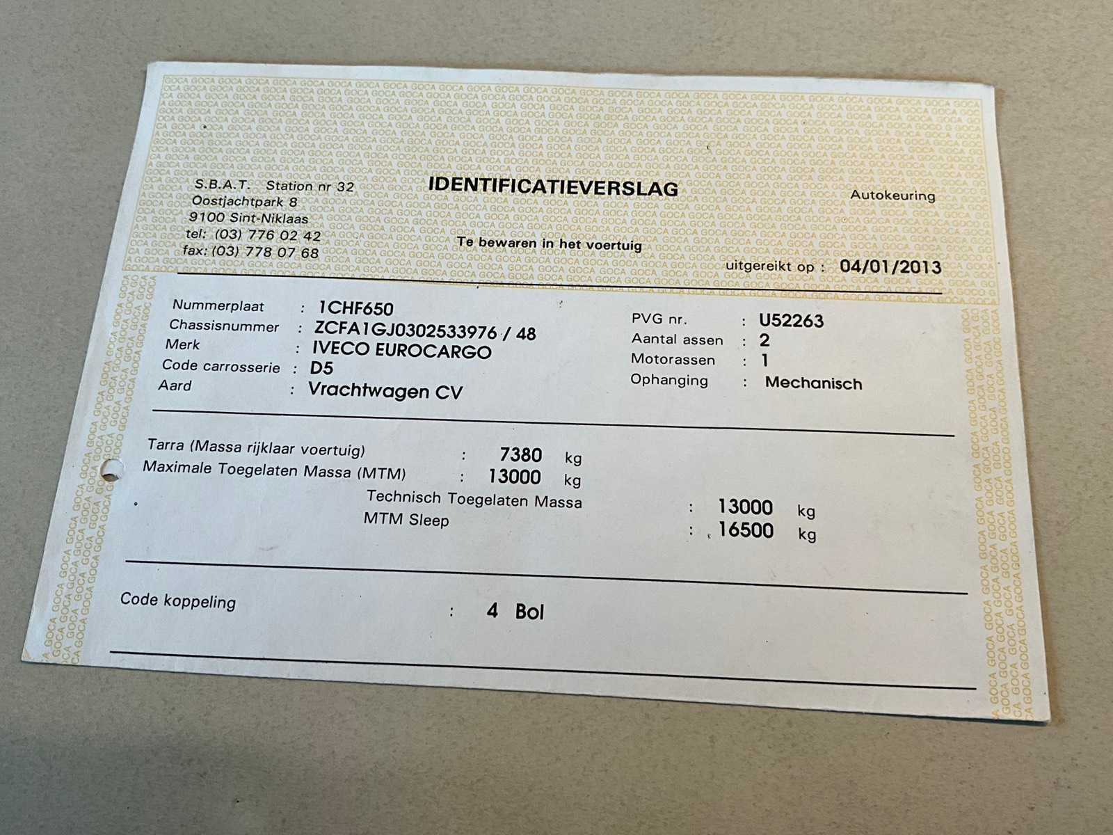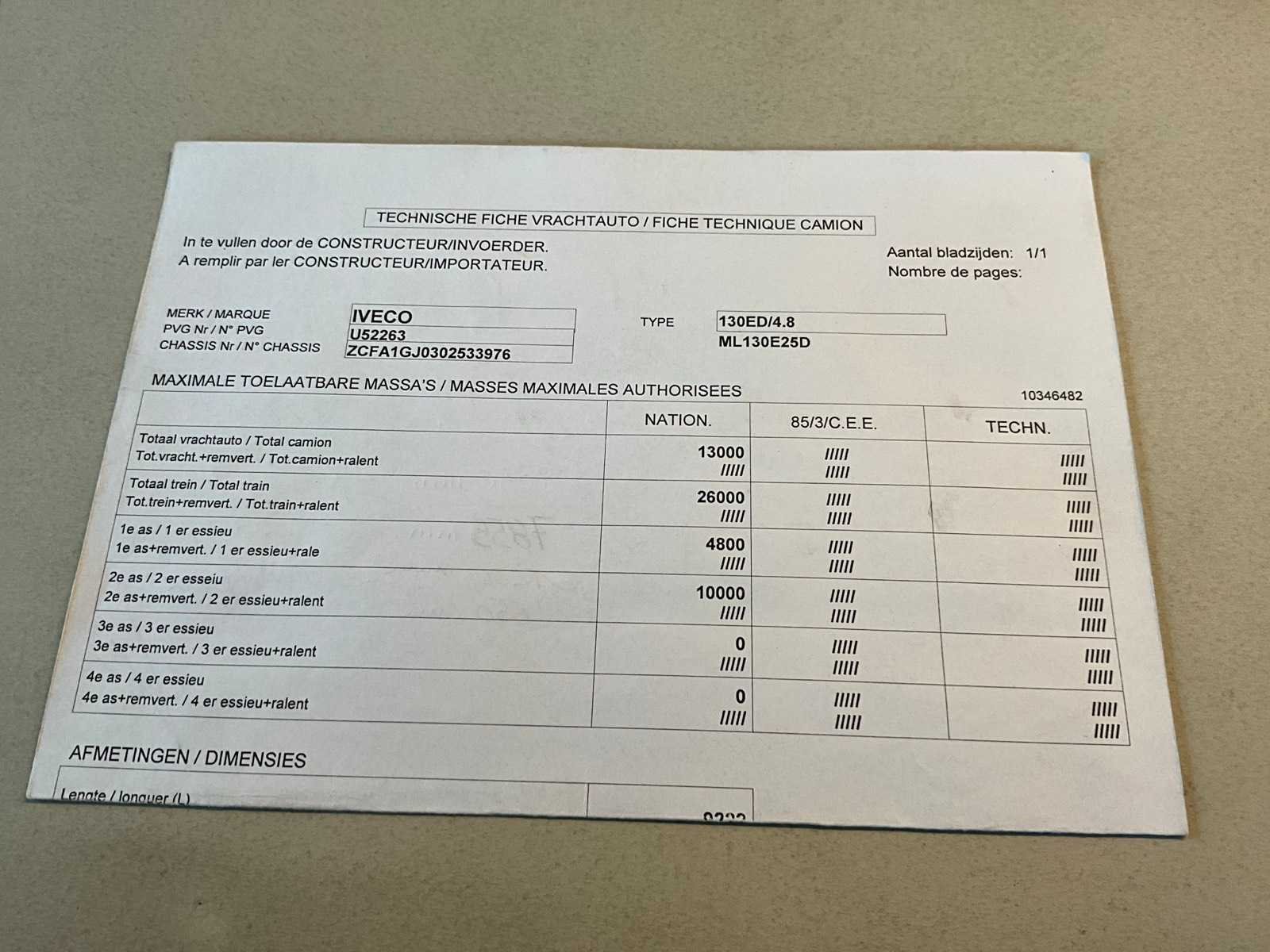 Start en rijdt mits boosten ! Voorzien van alle boorddocumenten waaronder kentekenbewijs, gelijkvormigheidsattest, identificatieverskag en laatste keuringsbewijs 04/01/2023. Opgelet : km-stand ook opgenomen januari 2023 ! Nadien stilgestaan. No Merk: Iveco Eurocargo Type: ML130E25D Bouwjaar: 2010 Chassisnummer VIN: ZCFA1GJ0302533976 Cilinderinhoud: 5880cc Datum eerste toelating: 08/04/2010 Type transmissie: Handmatig Aantal assen: 2 Fuel Type: Diesel Aantal sleutels: 2 Emissieklasse: Euro 5 Startinformatie: Batterij plat Afgelezen kilometerstand: 133290km Nationaliteit documenten: Belgisch Kentekenpapieren compleet?: true Aantal zitplaatsen: 7 Diesel: true